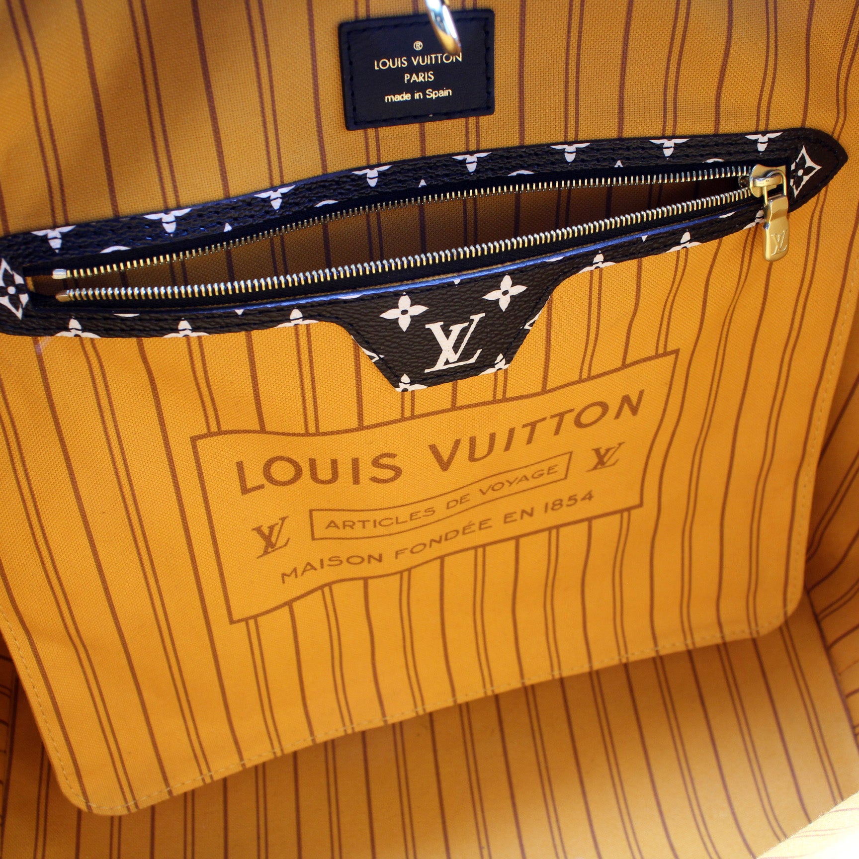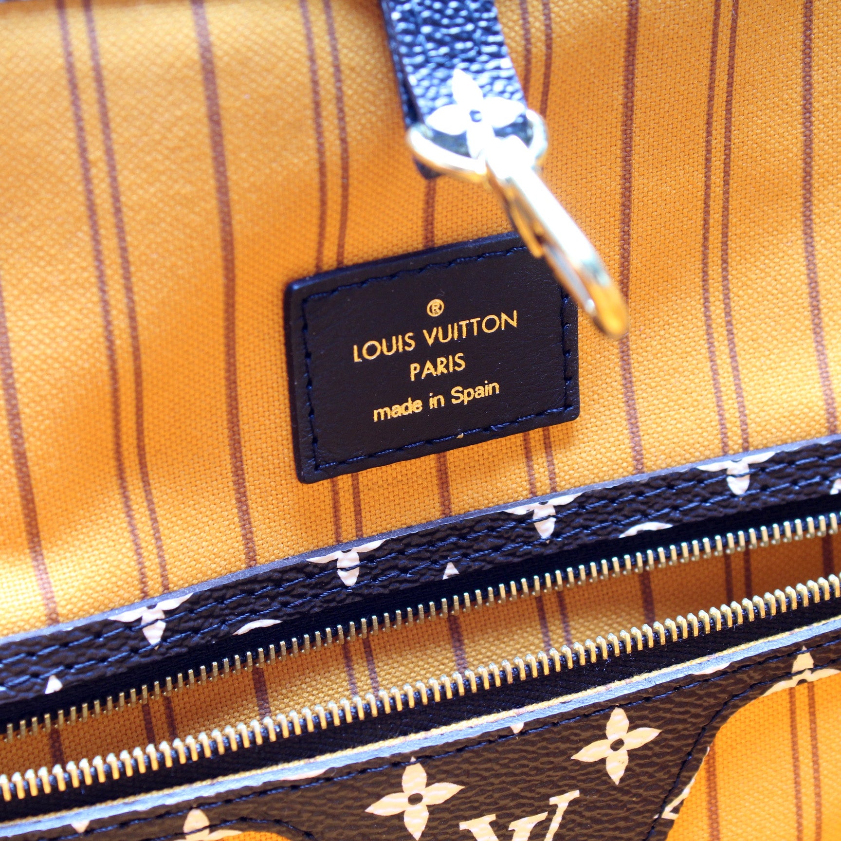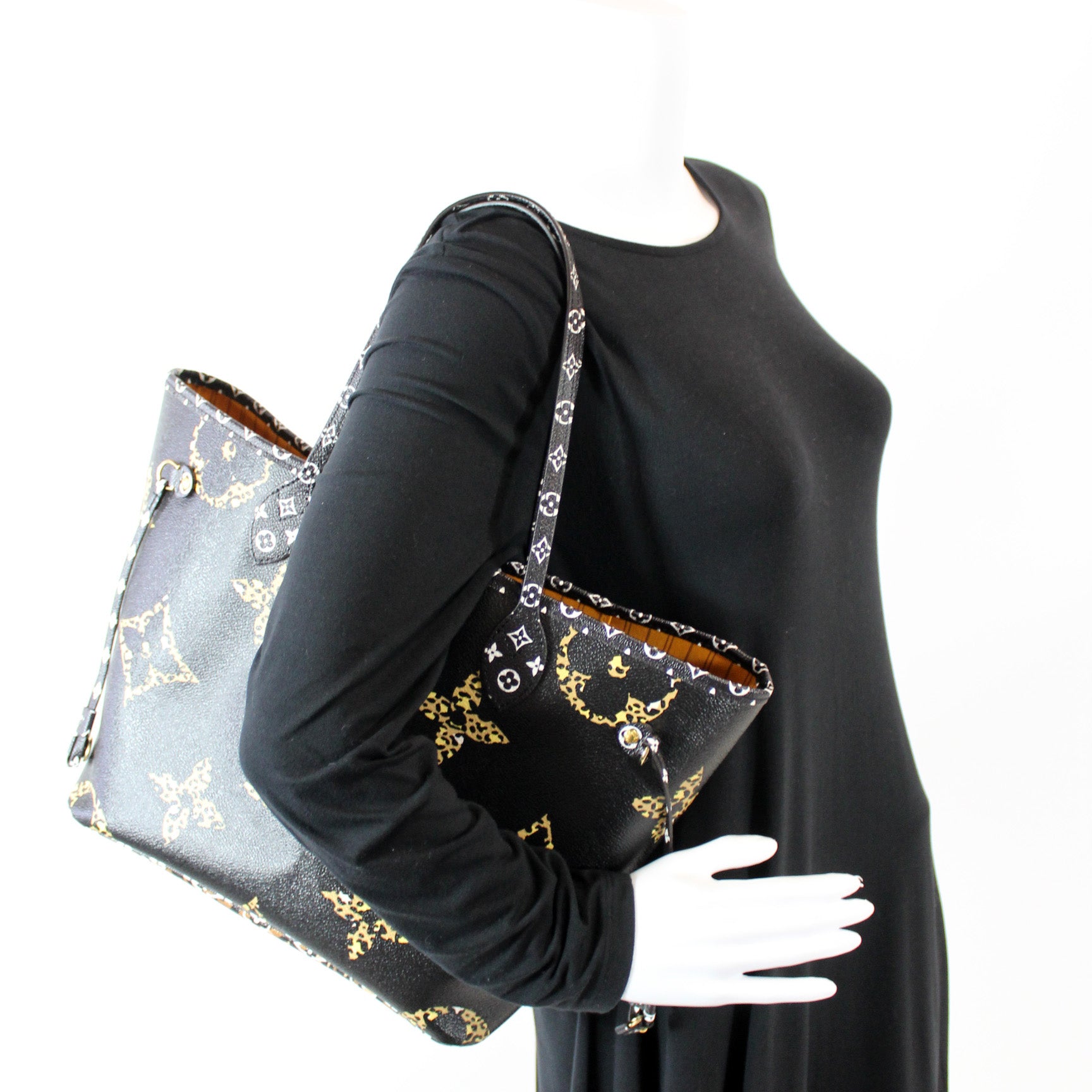 This pre-owned Louis Vuitton Neverfull MM W/ Wallet is guaranteed 100% authentic. The exterior is in the classic Louis Vuitton Jungle coated canvas.