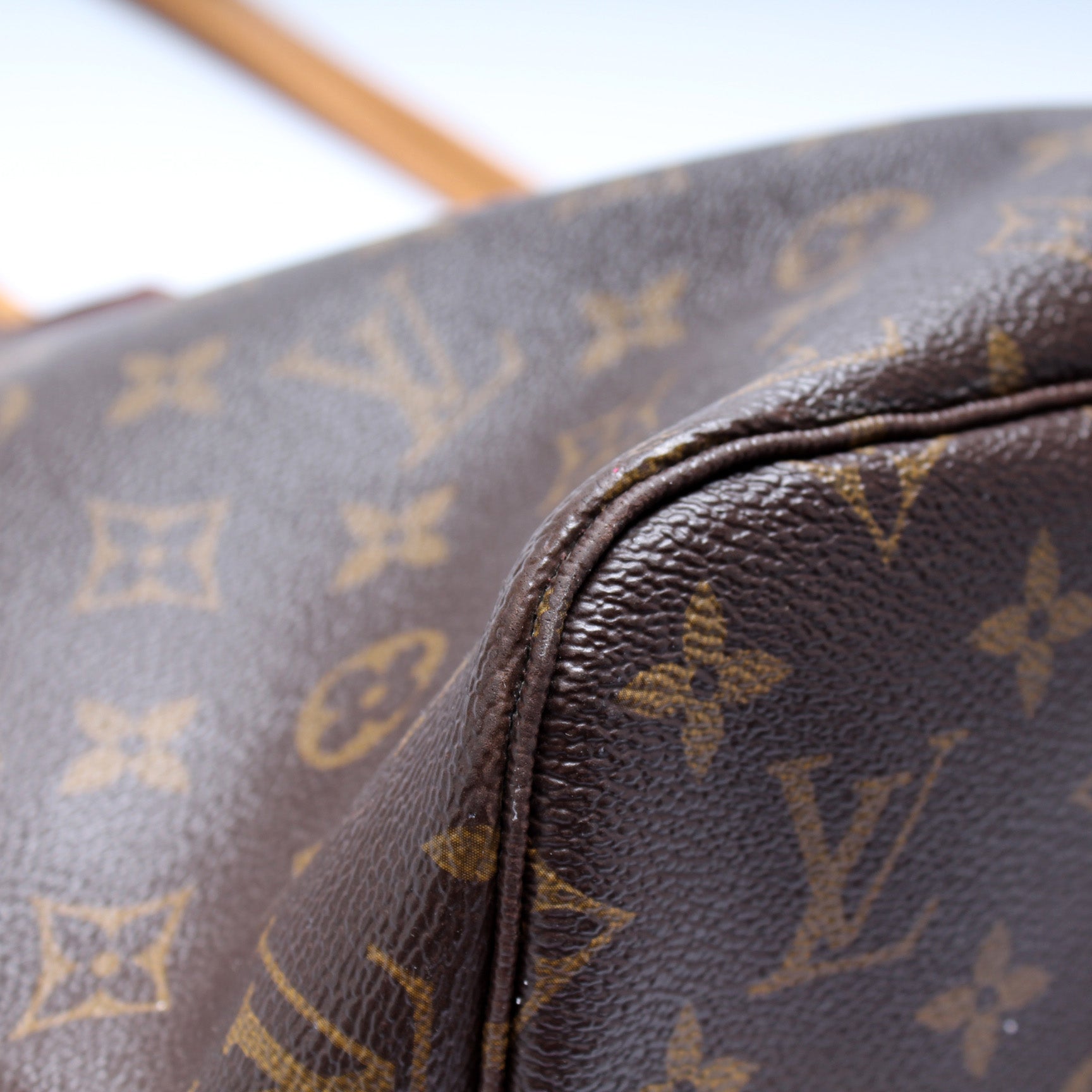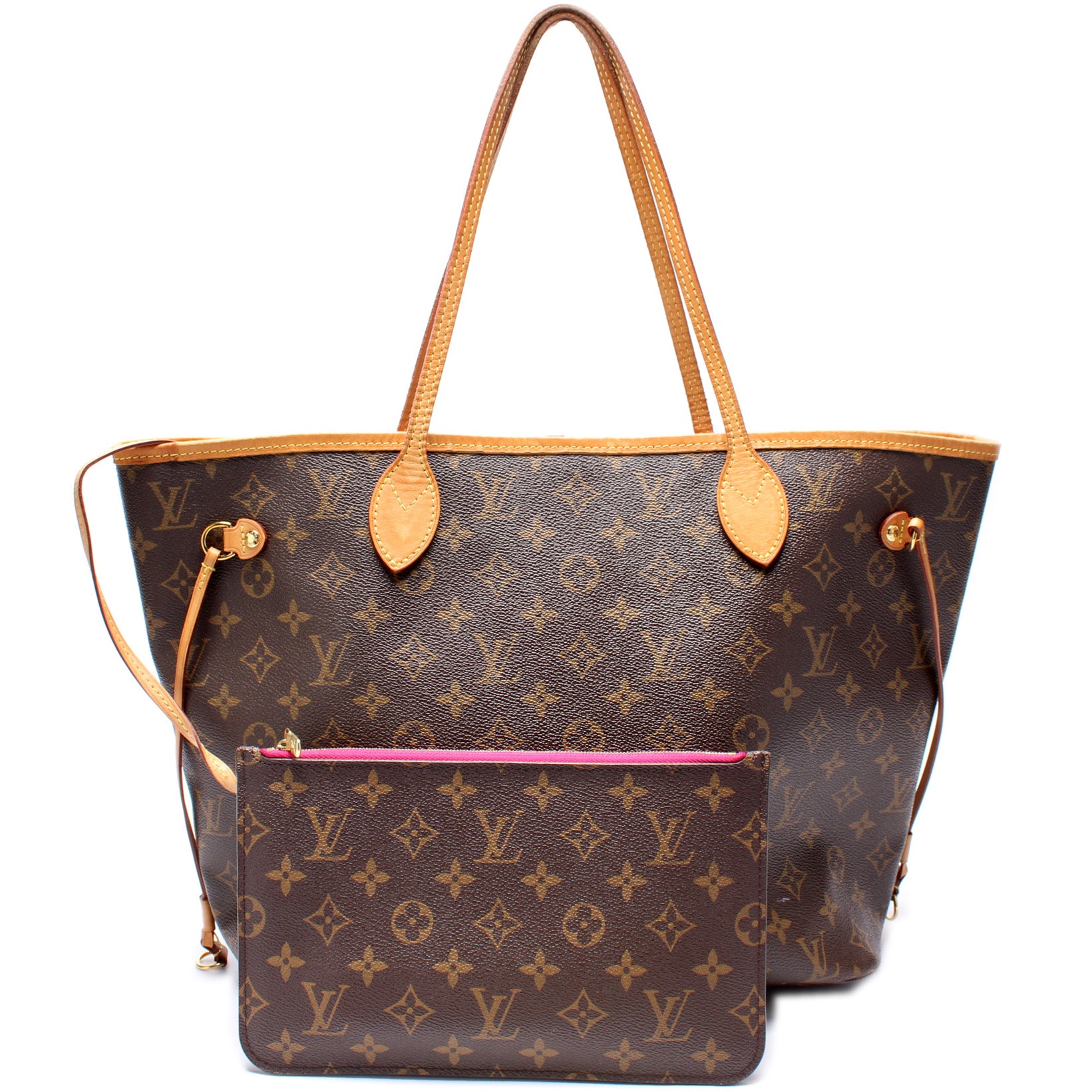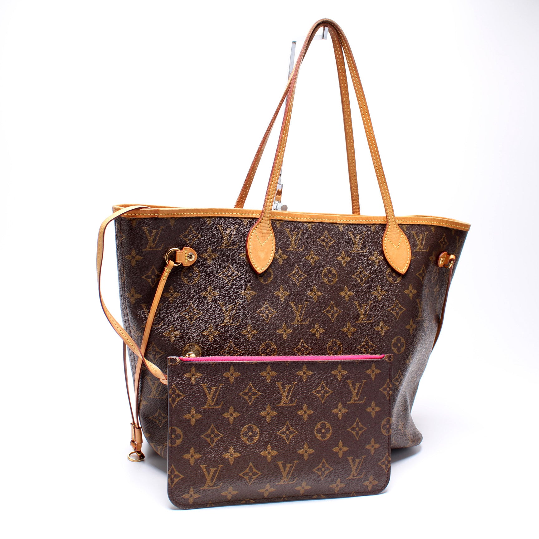 This pre-owned Louis Vuitton Neverfull MM W/ Wallet is guaranteed 100% authentic. The exterior is in the classic Louis Vuitton Monogram coated canvas.