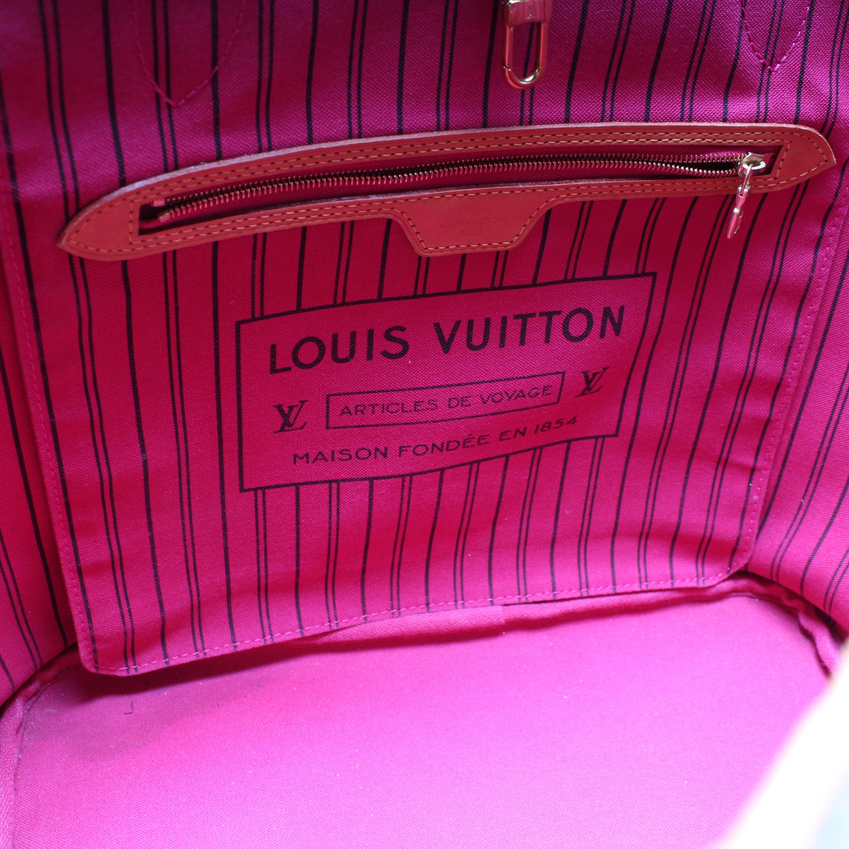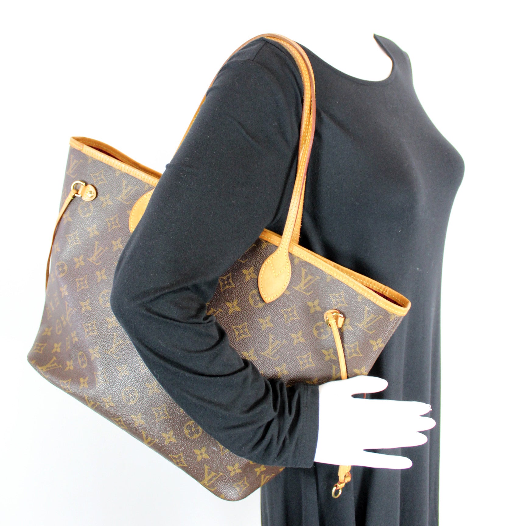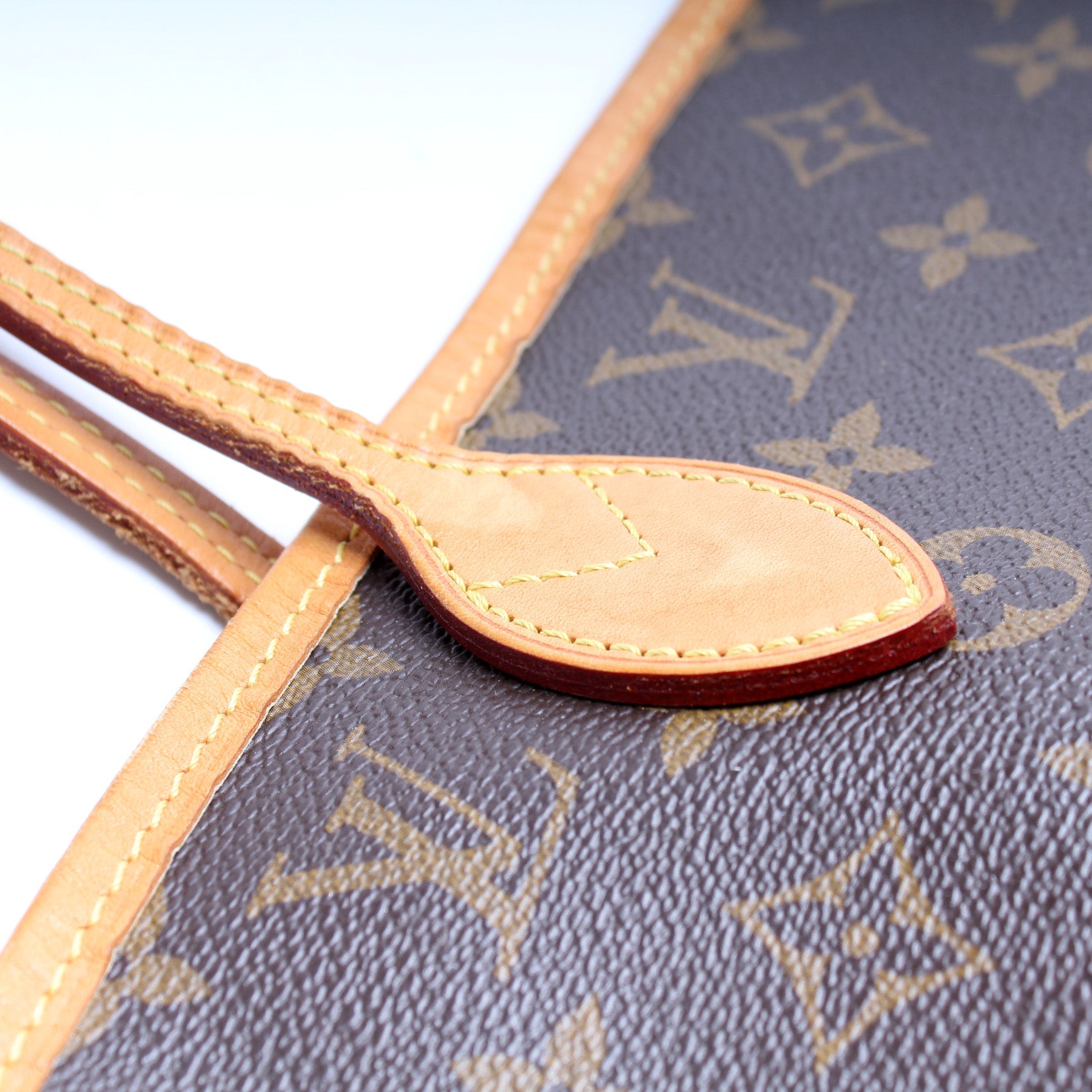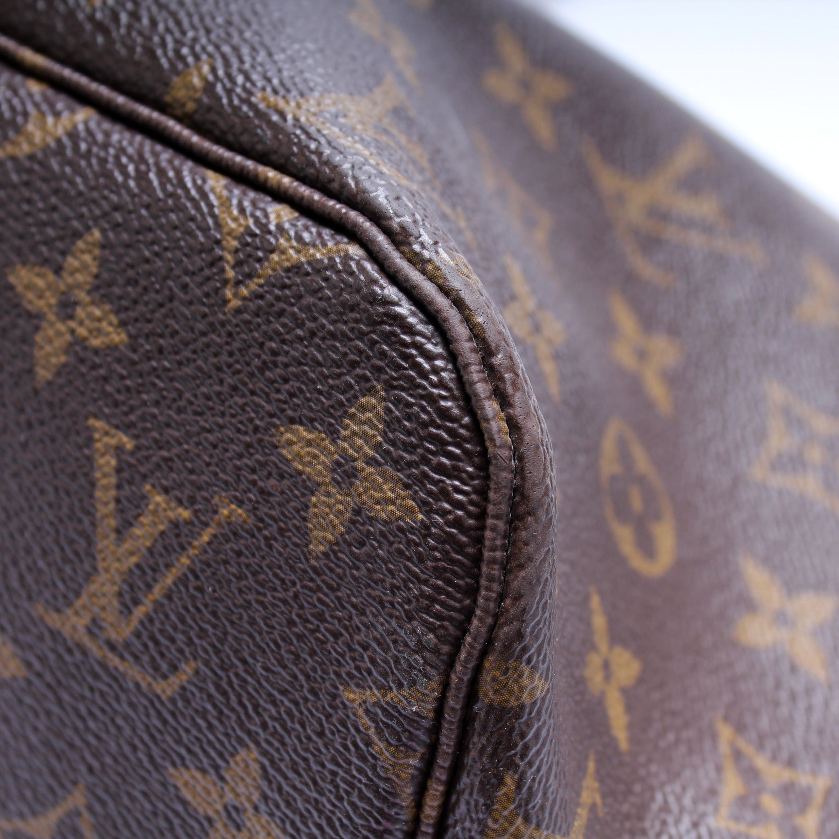 This pre-owned Louis Vuitton Neverfull MM W/ Wallet is guaranteed 100% authentic. The exterior is in the classic Louis Vuitton Monogram coated canvas.