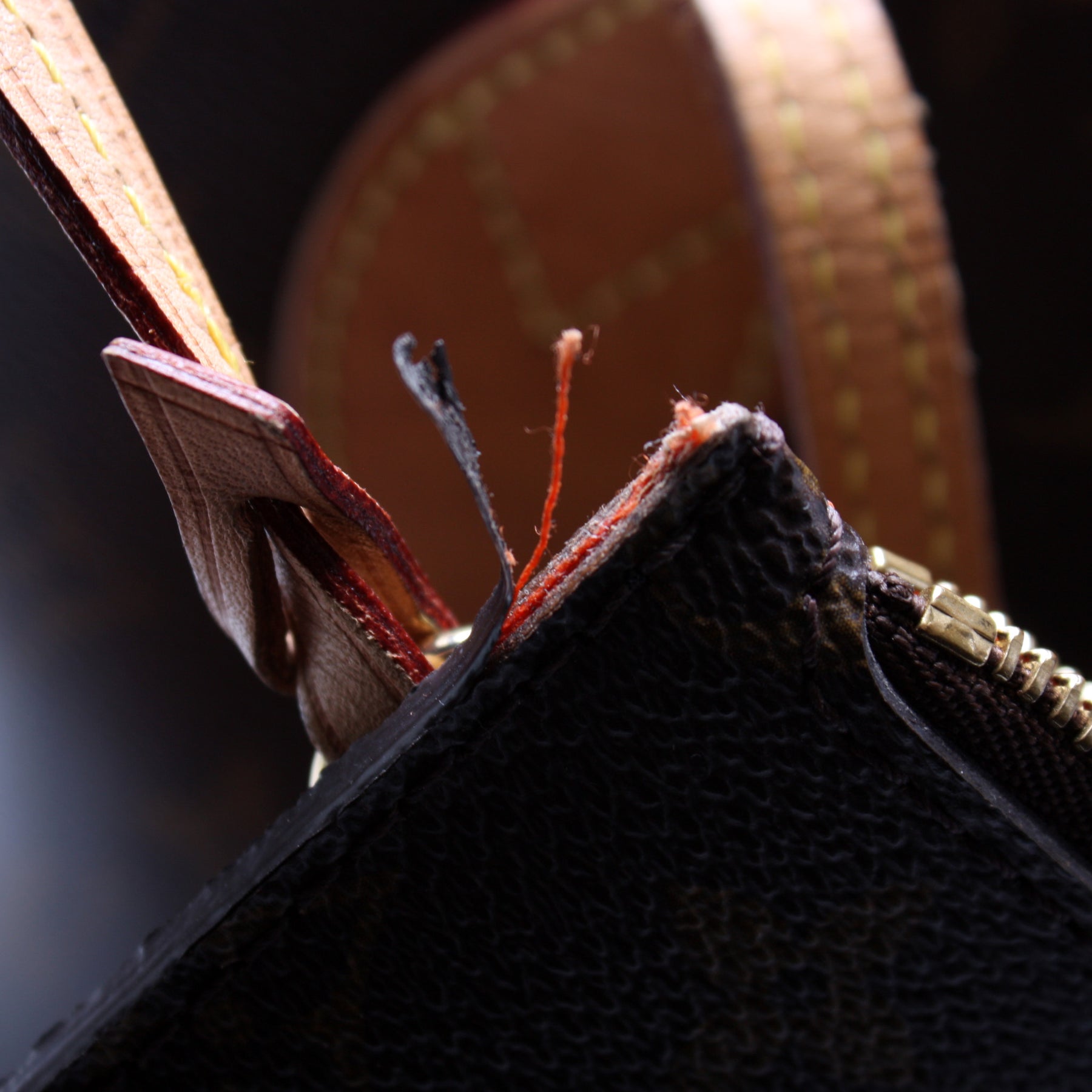 Handle: The leather handles have heavy discoloration and wear.