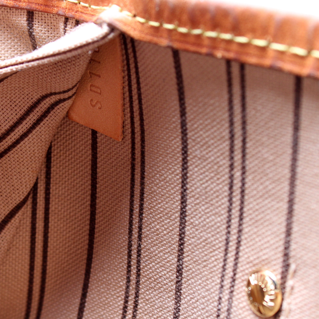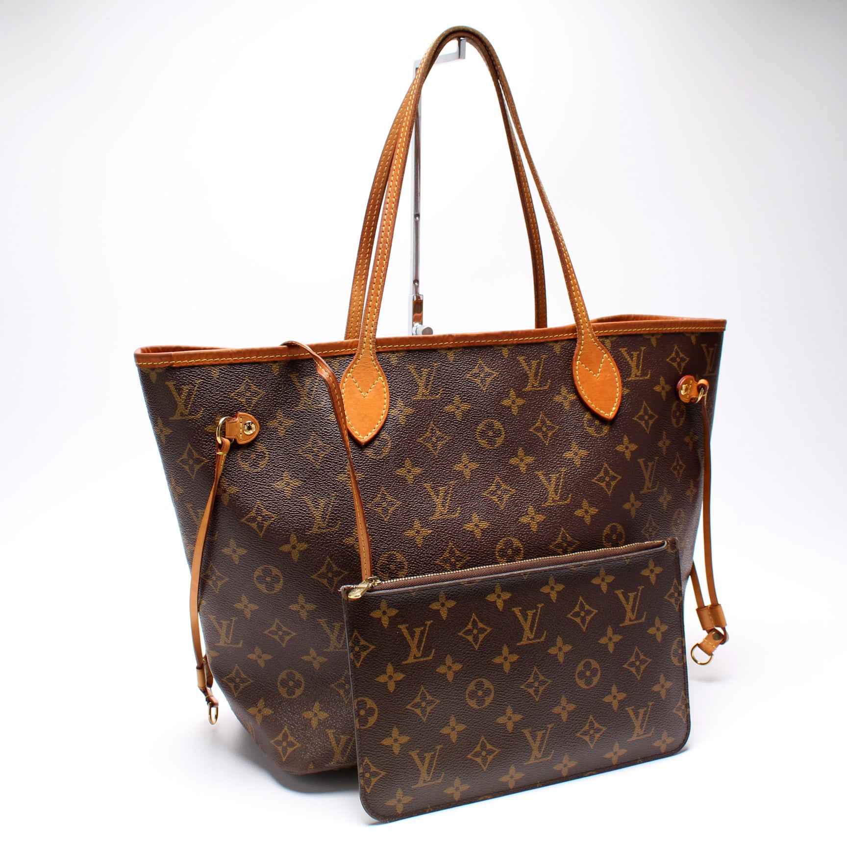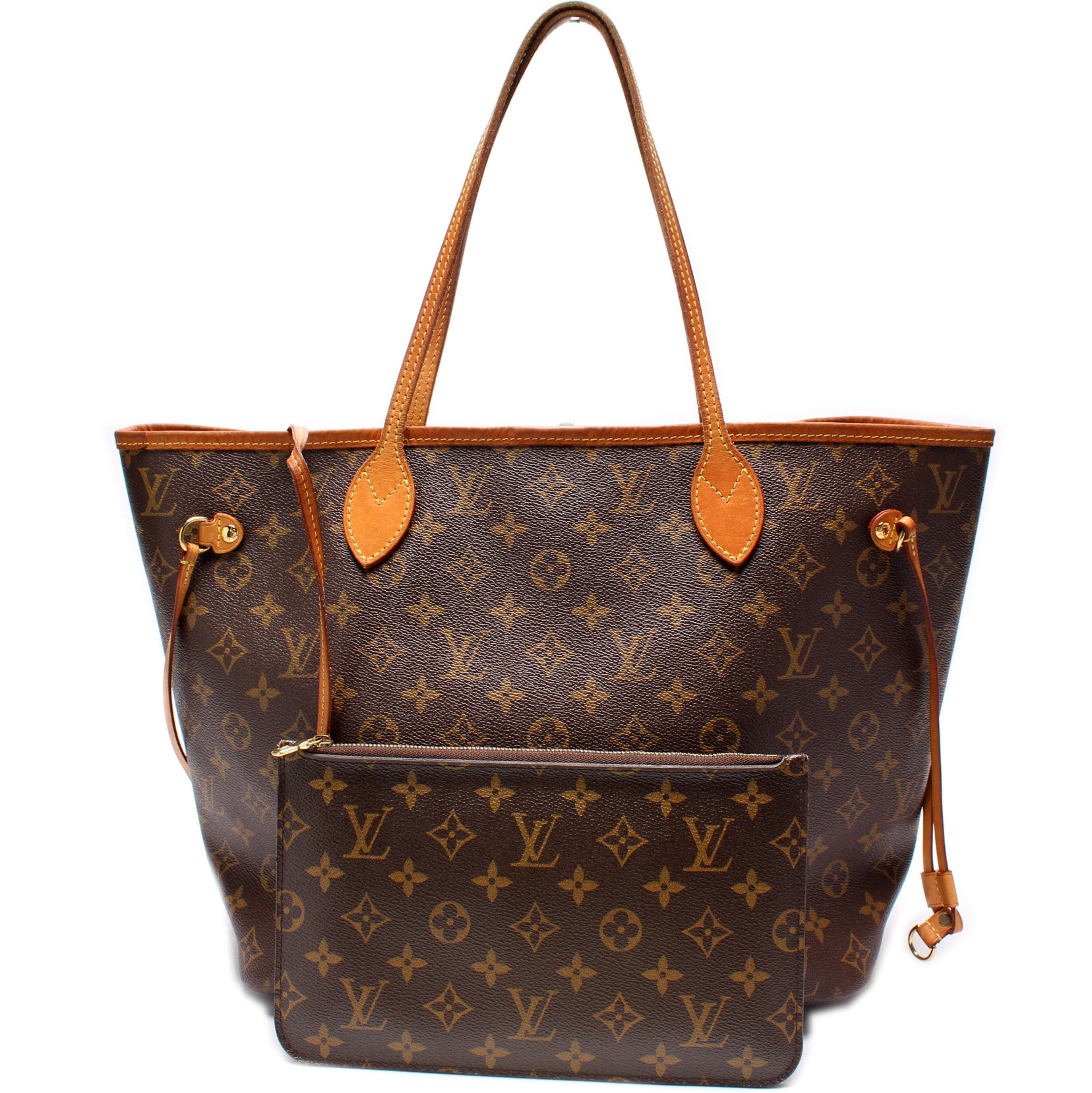 This pre-owned Louis Vuitton Neverfull MM W/Wallet is guaranteed 100% authentic. The exterior is in the classic Louis Vuitton Monogram coated canvas.