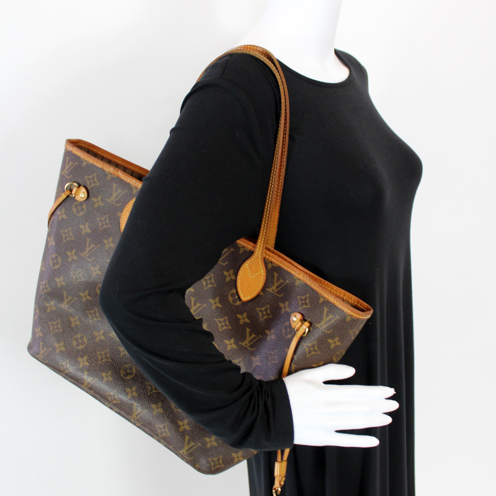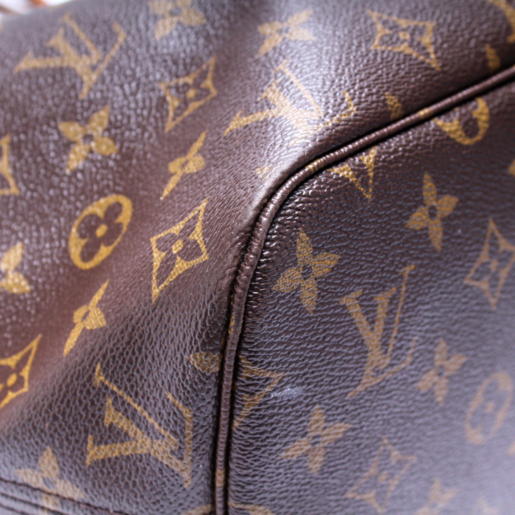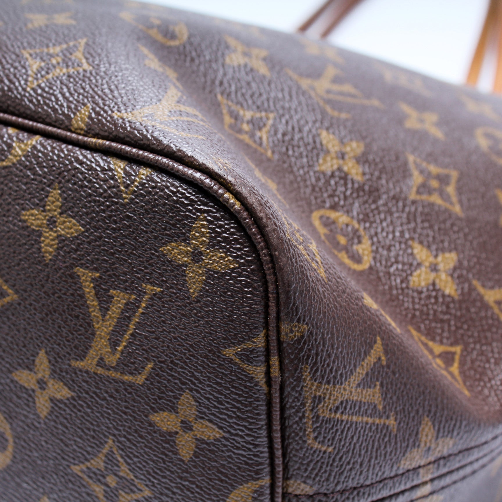 This pre-owned Louis Vuitton Neverfull MM W/Wallet is guaranteed 100% authentic. The exterior is in the classic Louis Vuitton Monogram coated canvas.