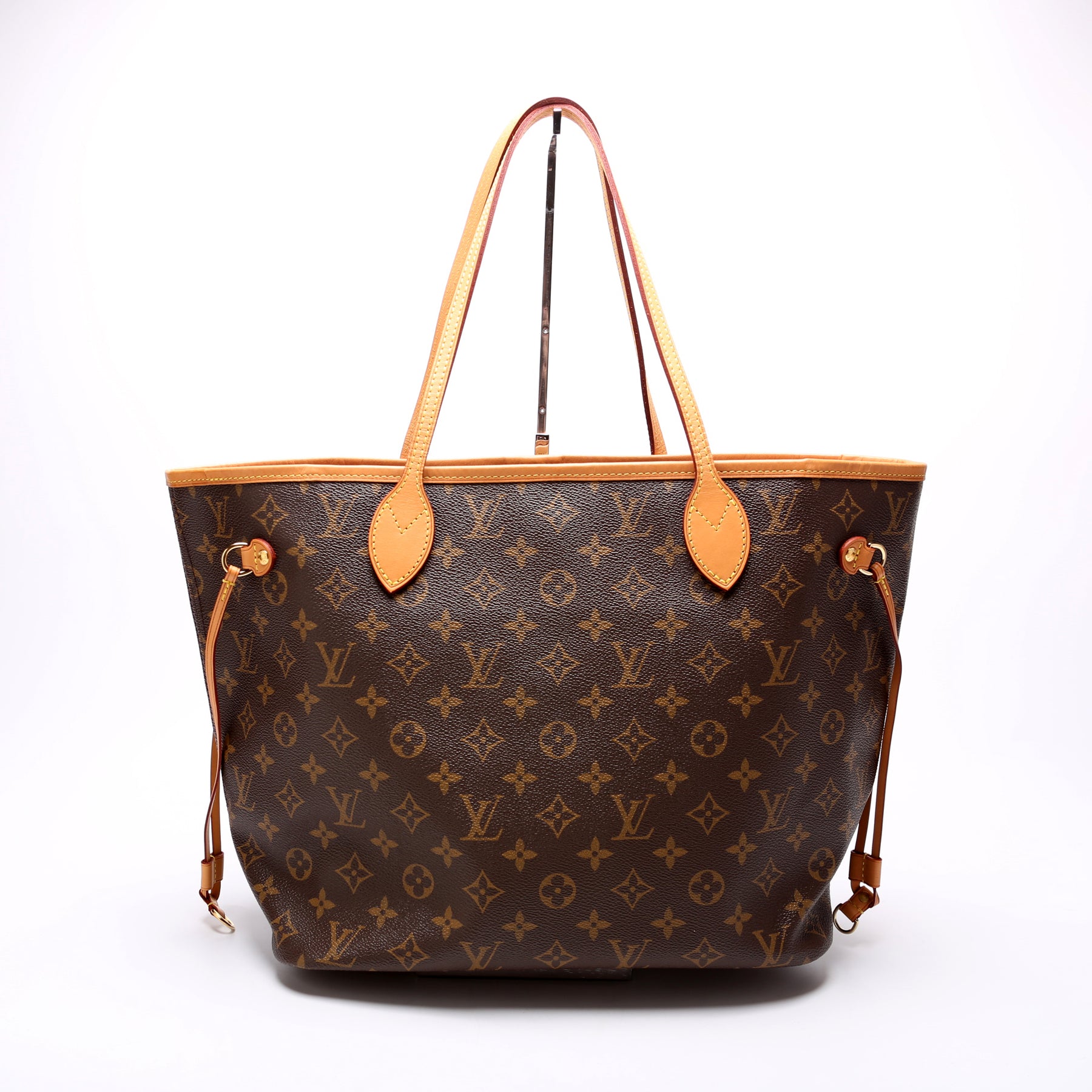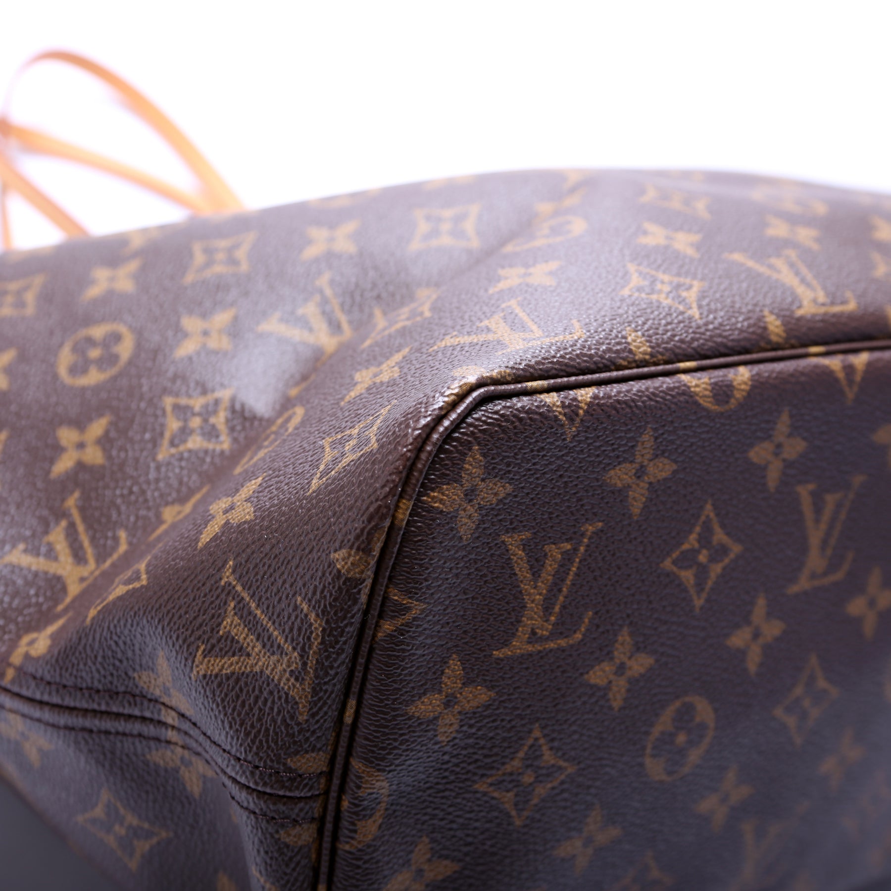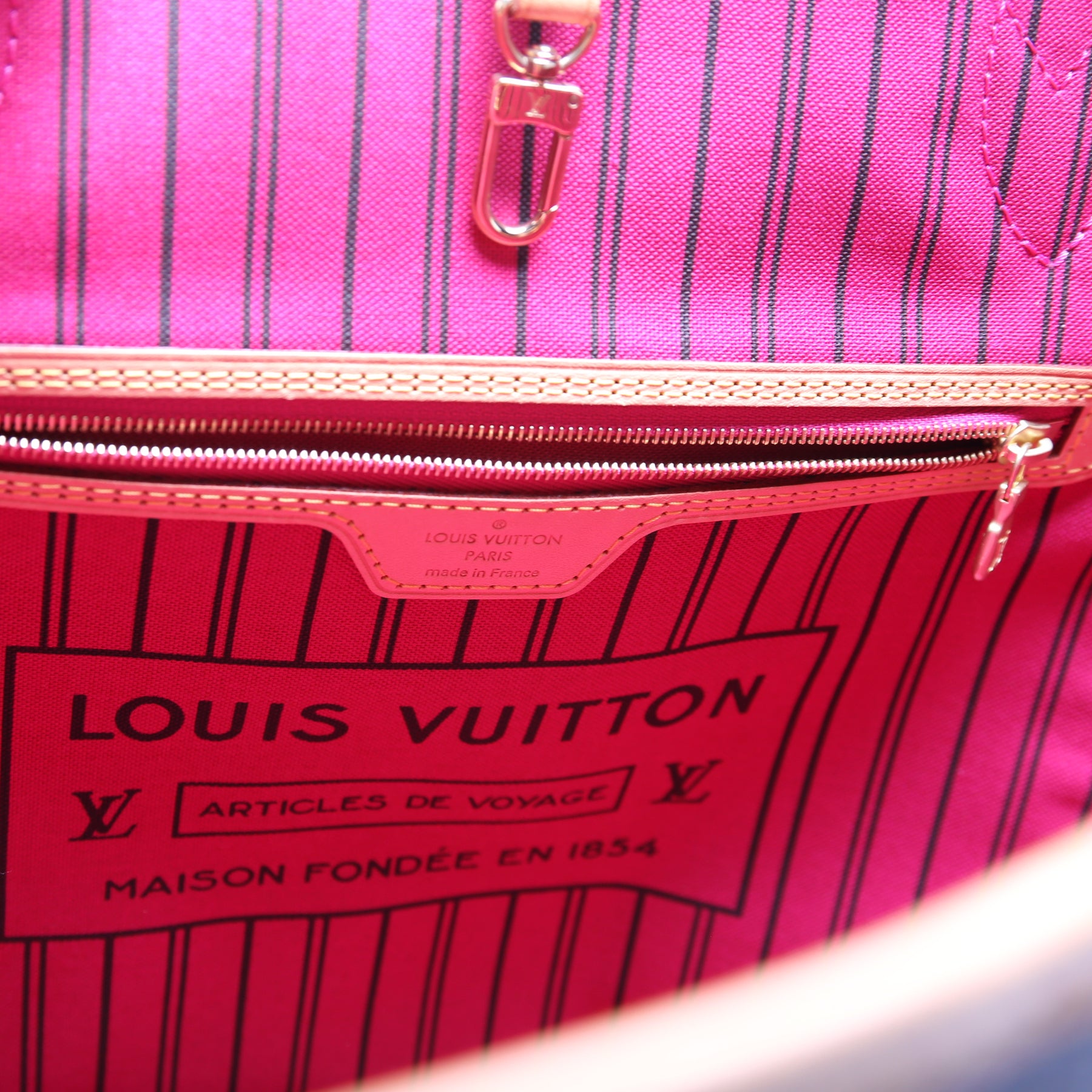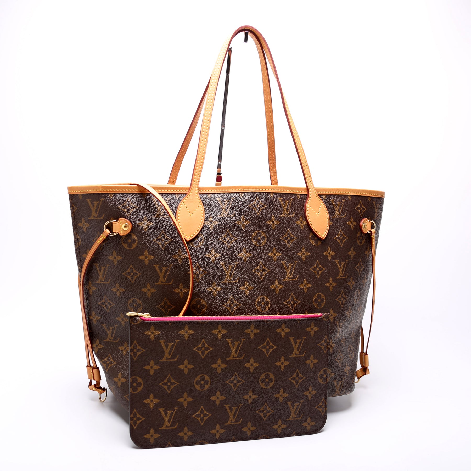 This pre-owned Louis Vuitton Neverfull MM W/Wallet is guaranteed 100% authentic. The exterior is in the classic Louis Vuitton Monogram coated canvas.