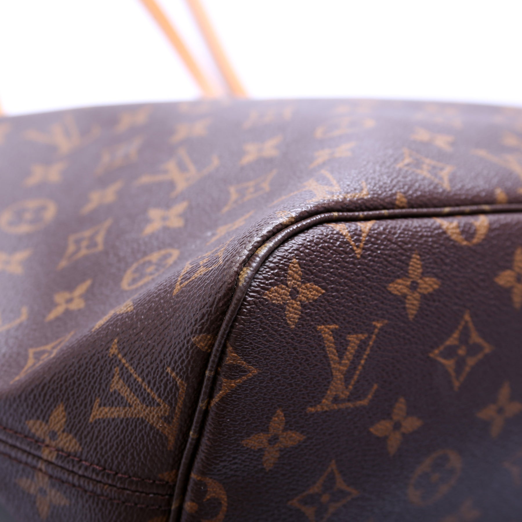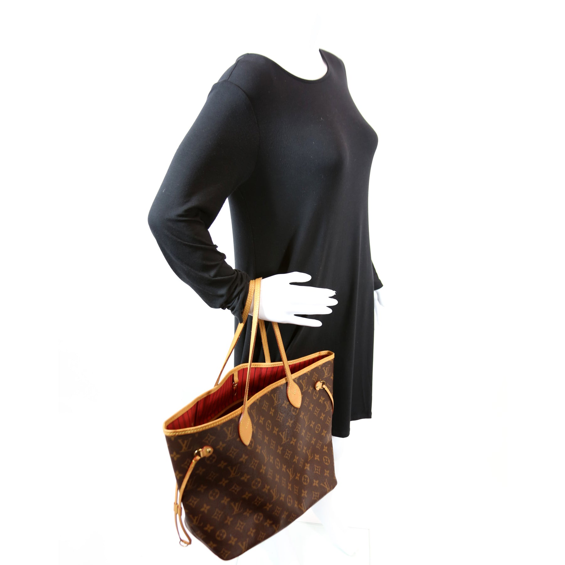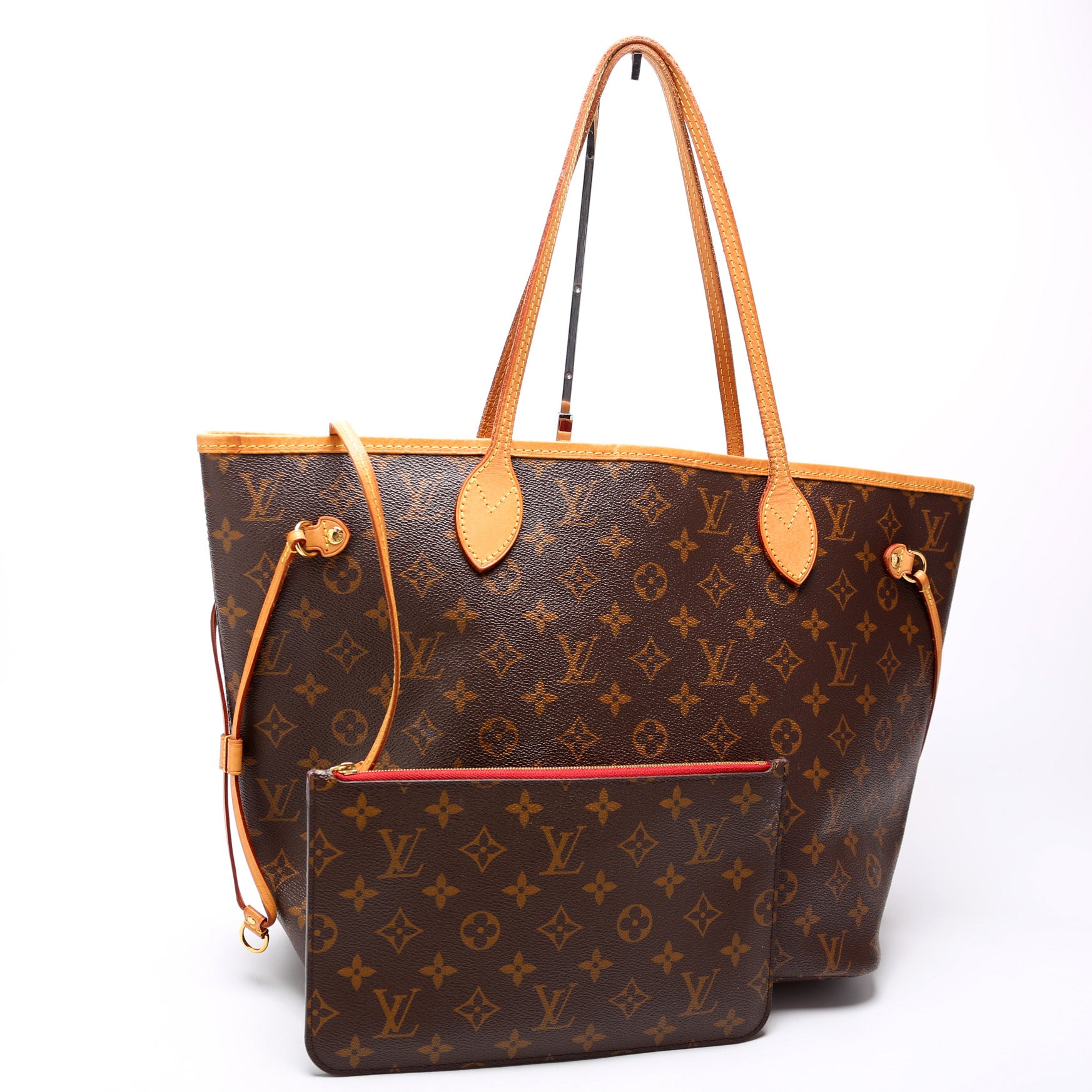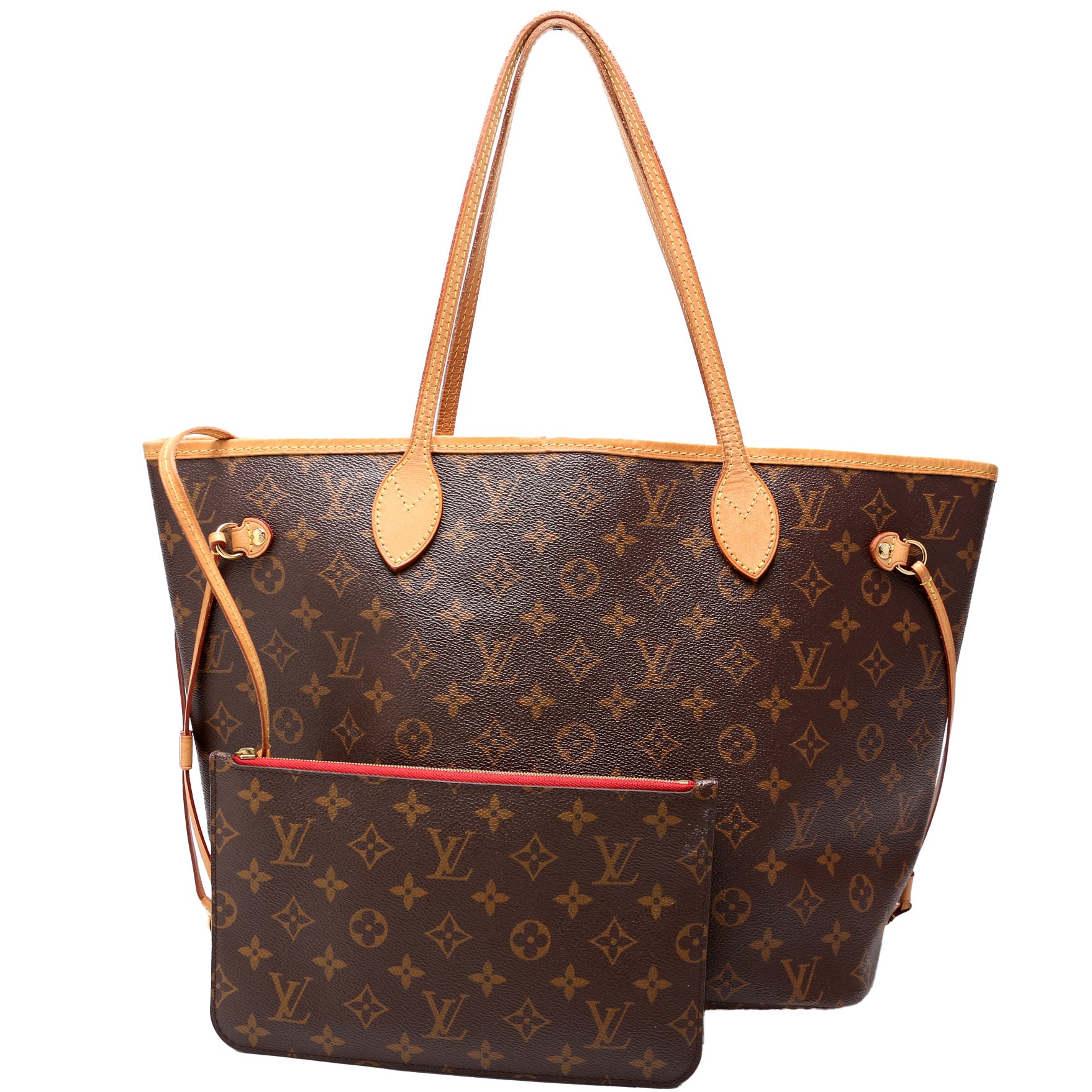 This pre-owned Louis Vuitton Neverfull MM W/Wallet is guaranteed 100% authentic. The exterior is in the classic Louis Vuitton Monogram coated canvas.