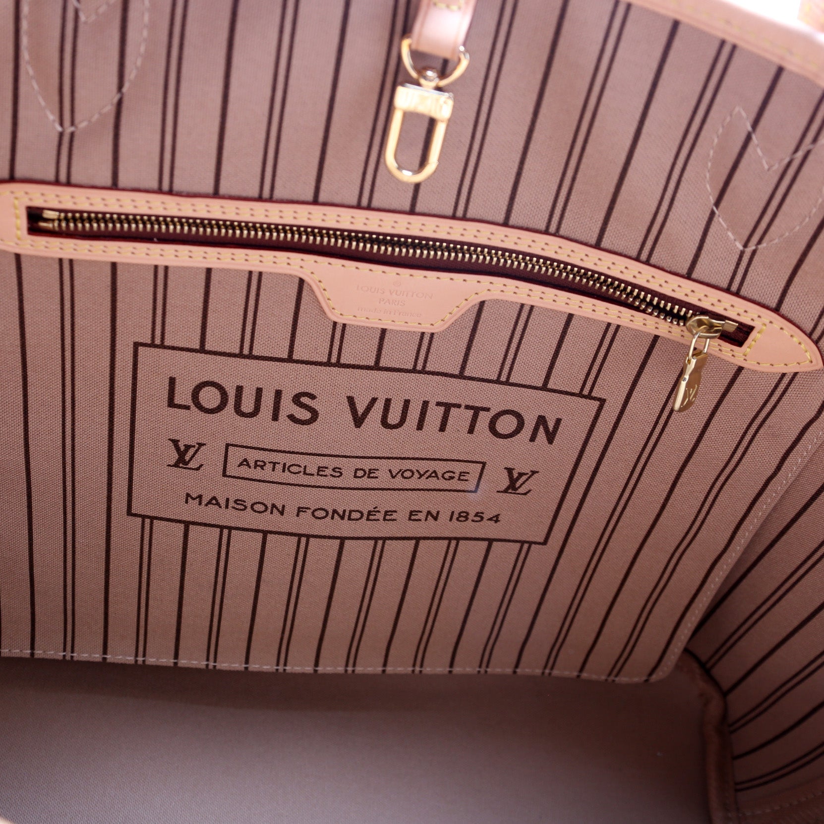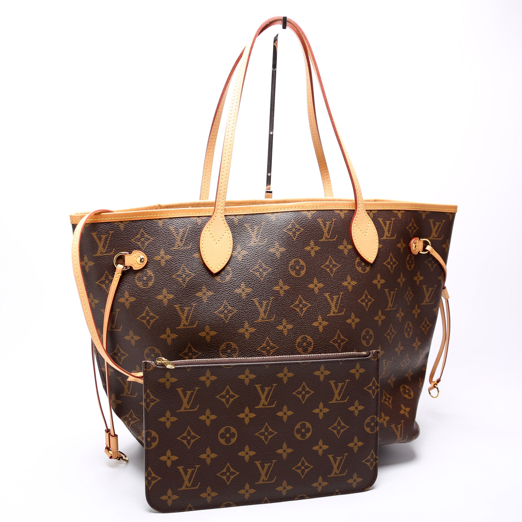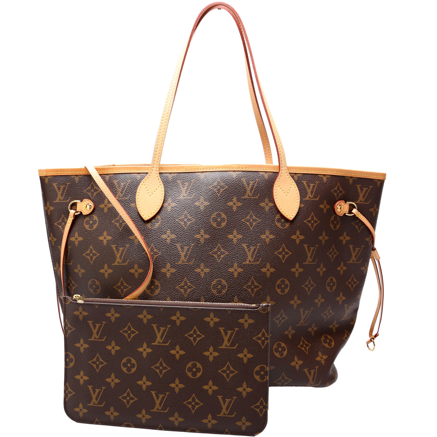 This pre-owned Louis Vuitton Neverfull MM W/Wallet is guaranteed 100% authentic. The exterior is in the classic Louis Vuitton Monogram coated canvas.