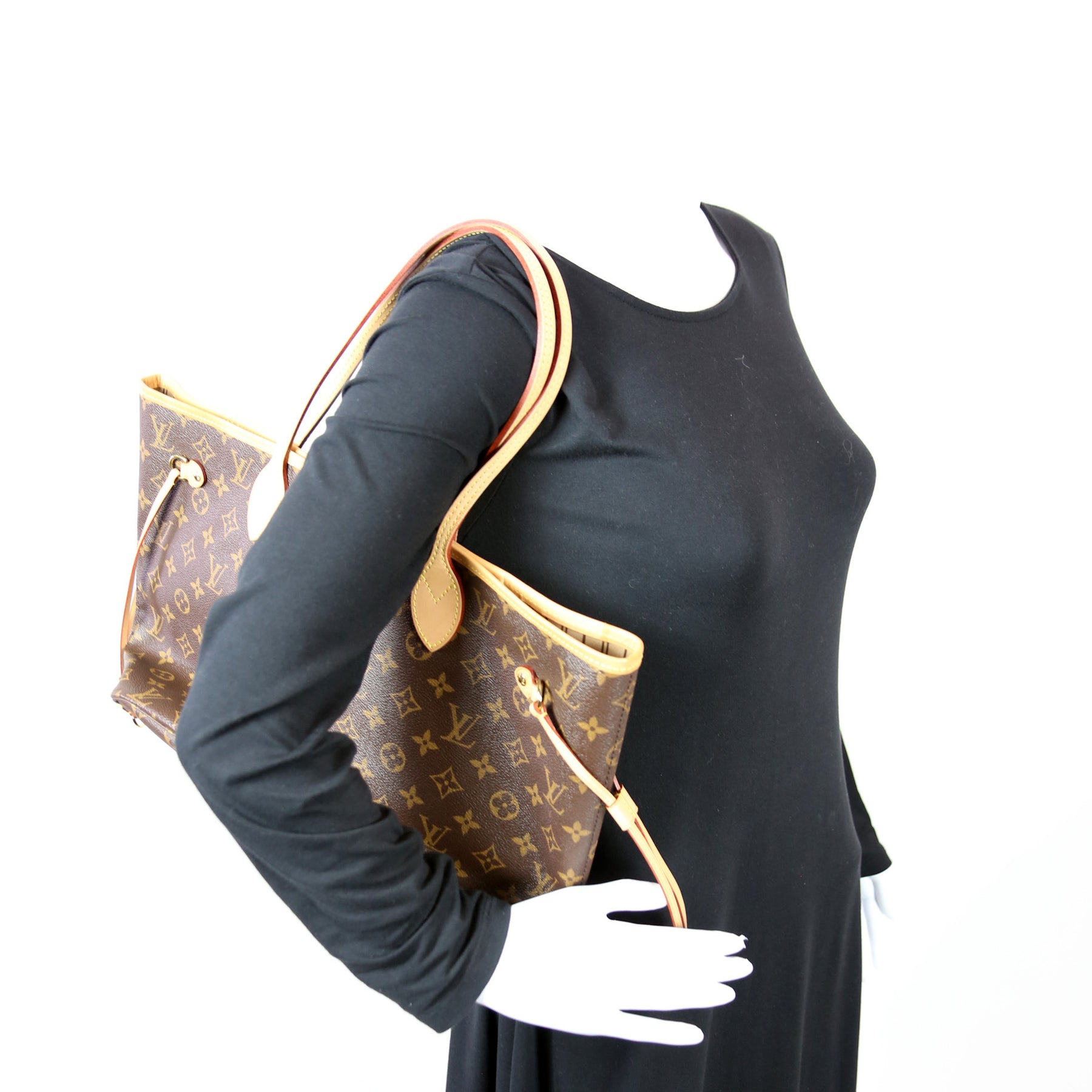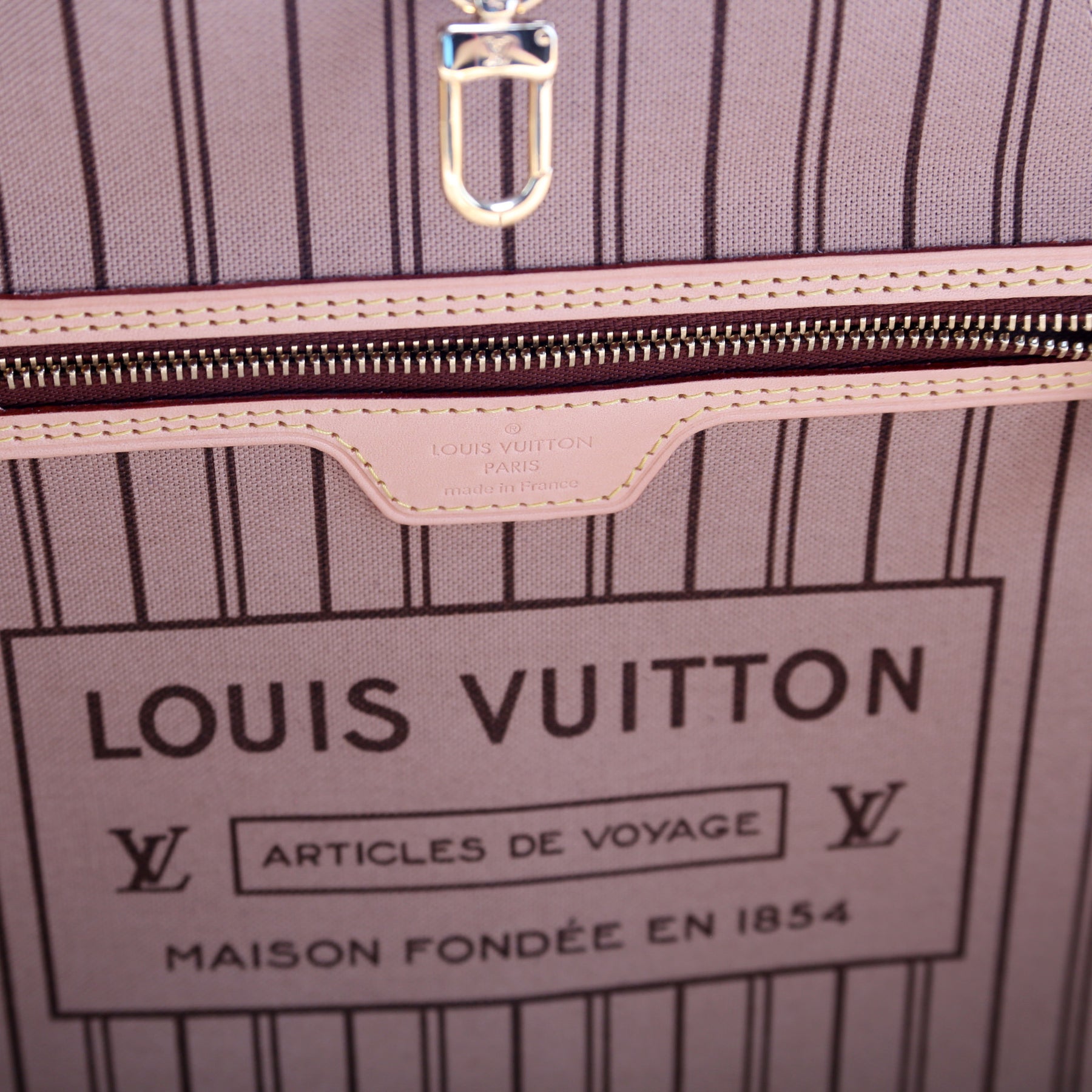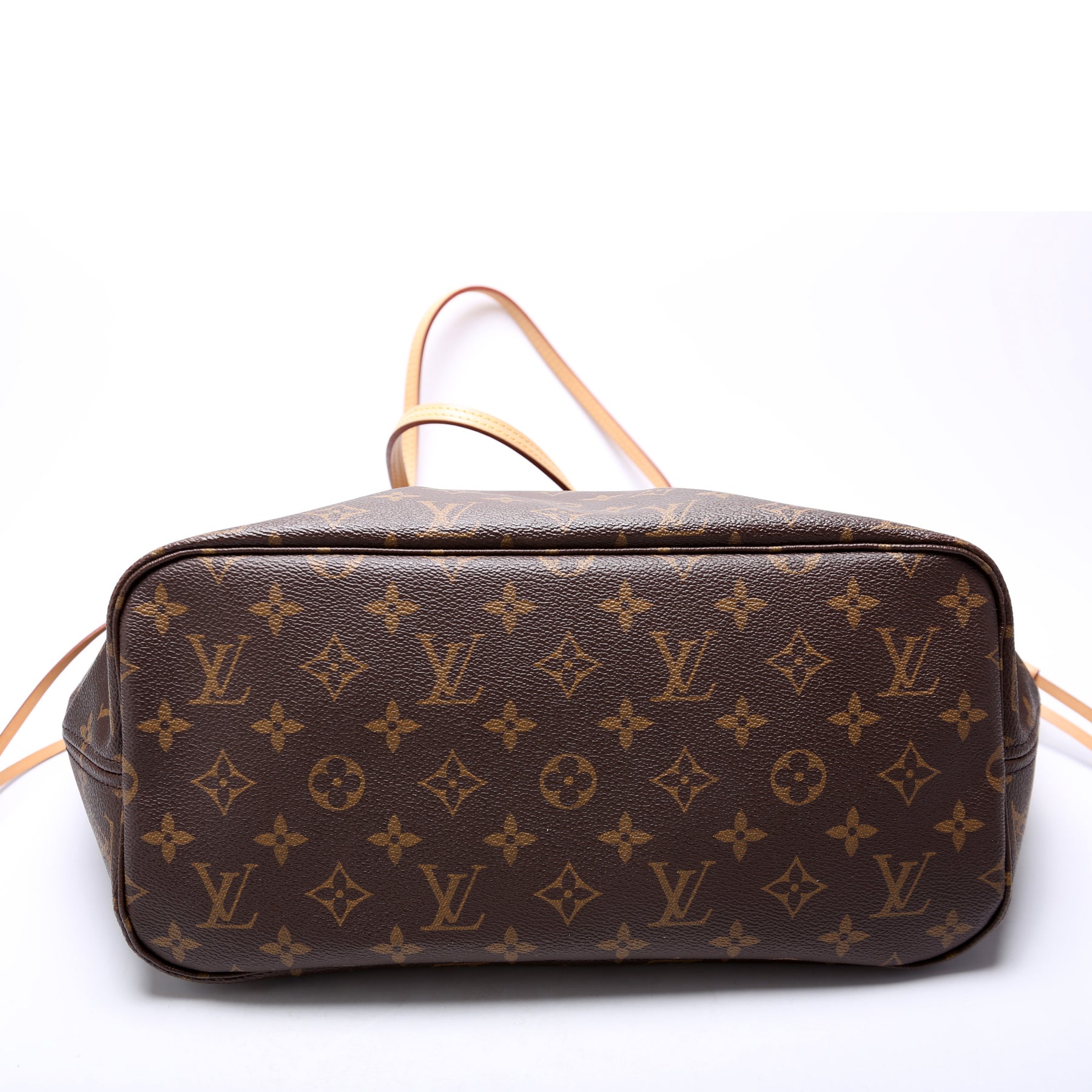 This pre-owned Louis Vuitton Neverfull MM W/Wallet is guaranteed 100% authentic. The exterior is in the classic Louis Vuitton Monogram coated canvas.