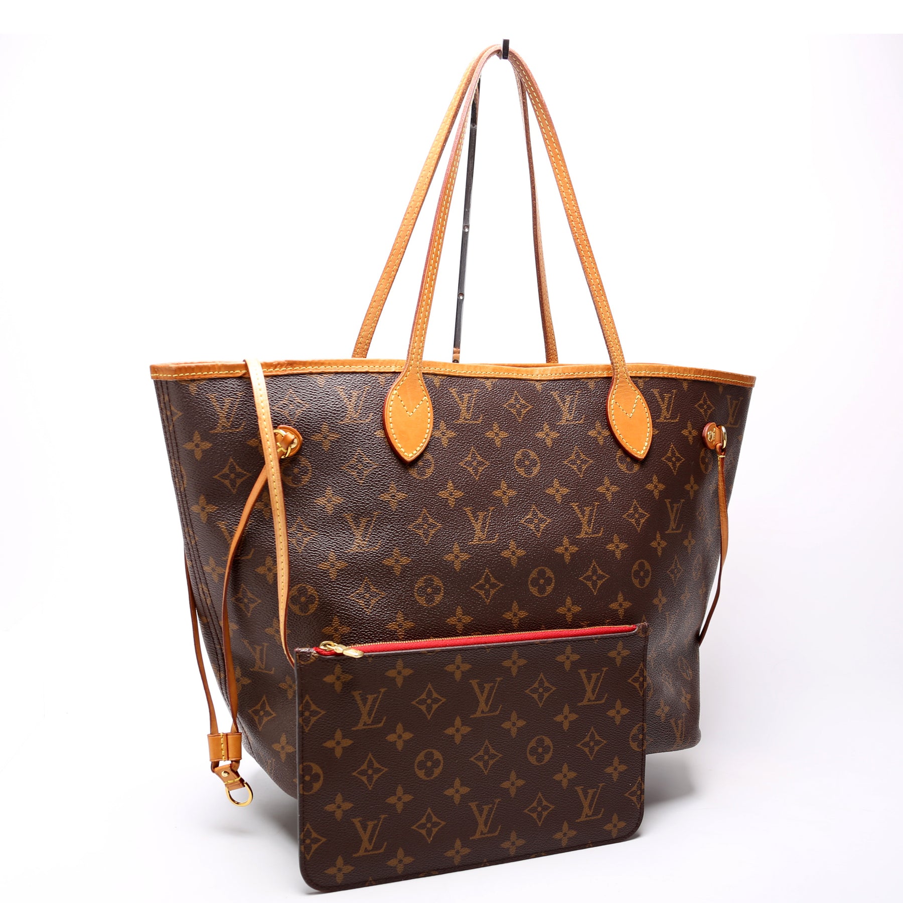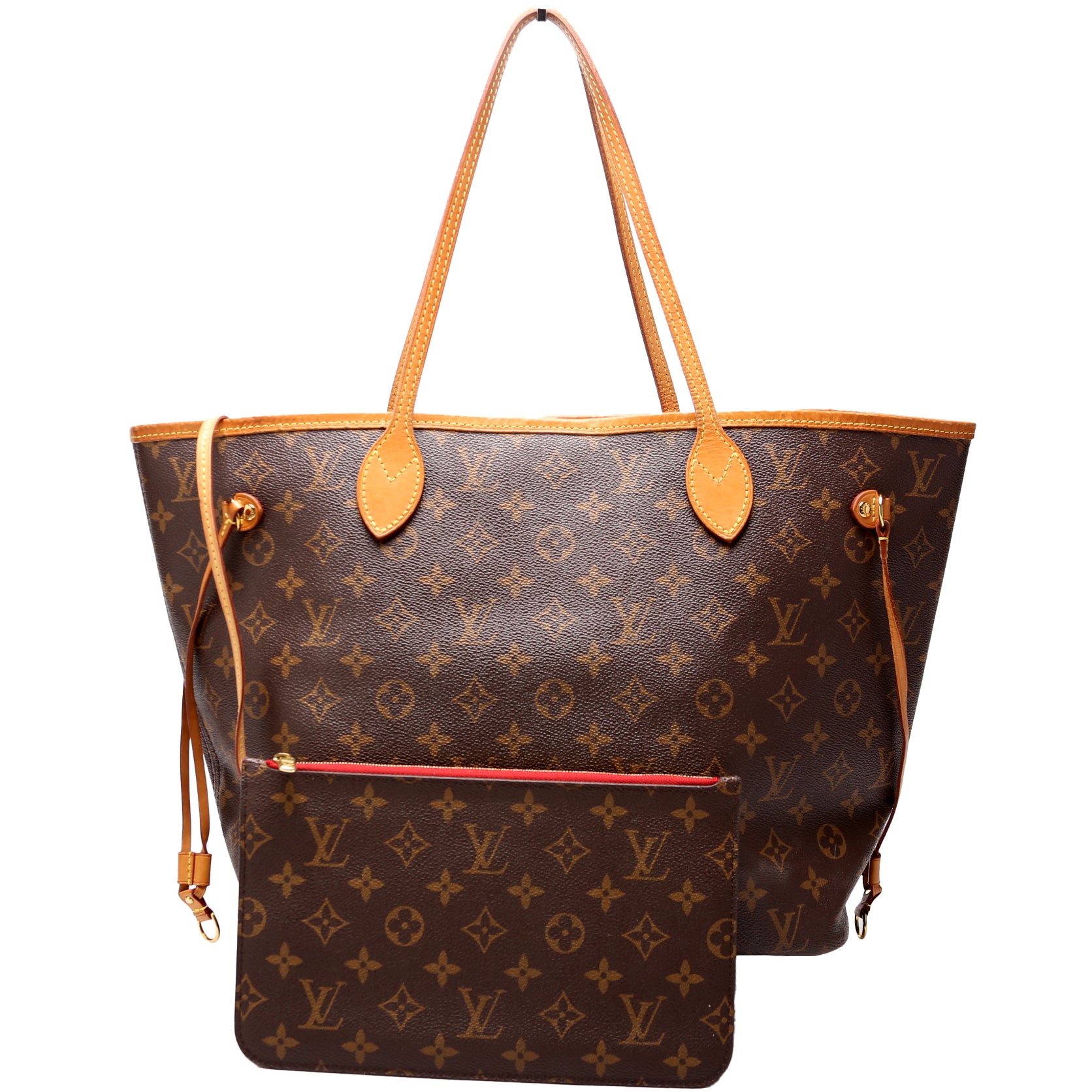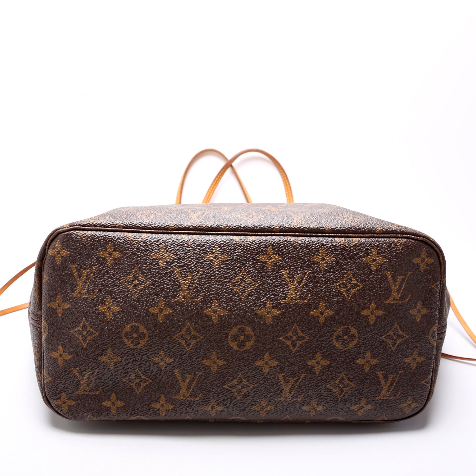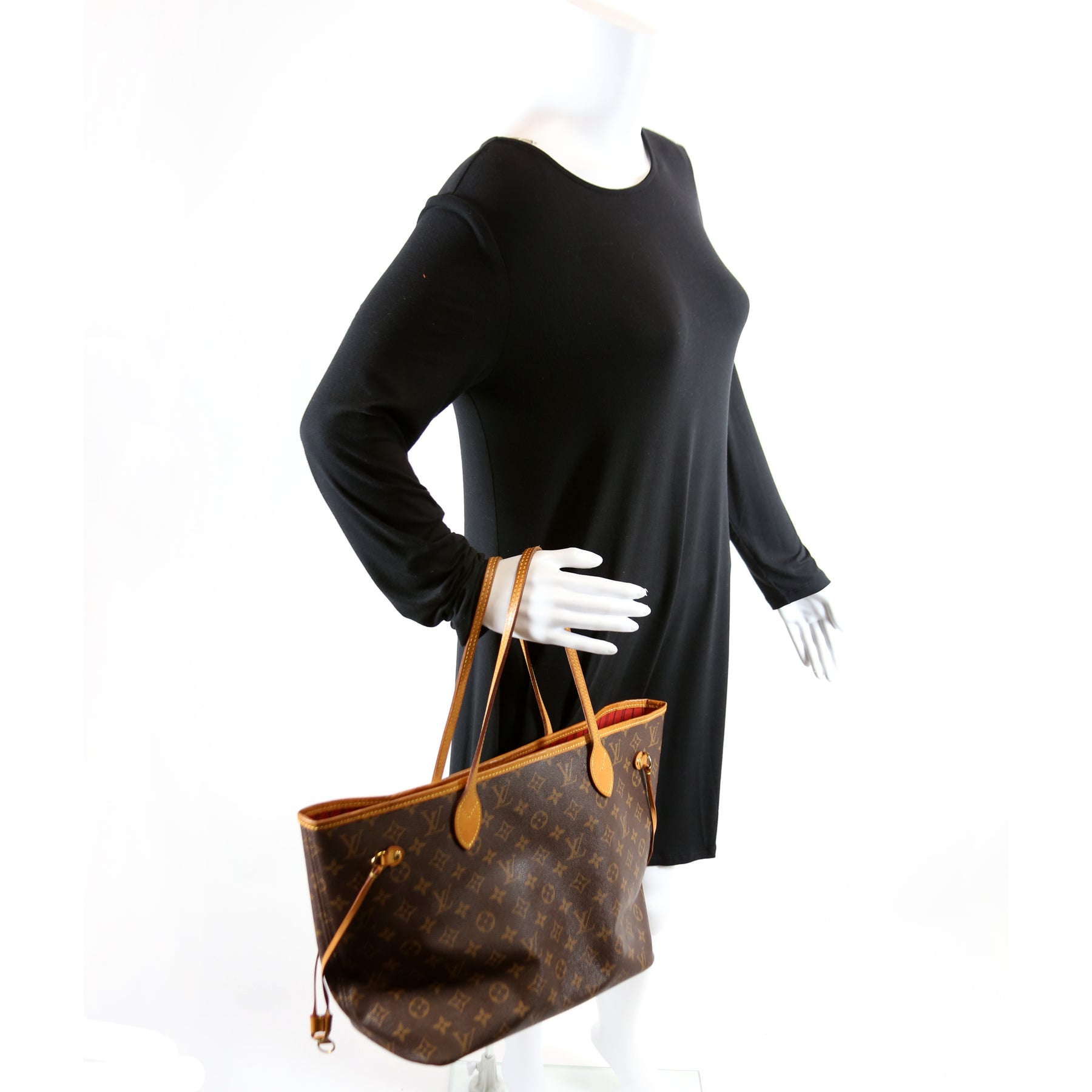 This pre-owned Louis Vuitton Neverfull MM W/Wallet is guaranteed 100% authentic. The exterior is in the classic Louis Vuitton Monogram coated canvas.