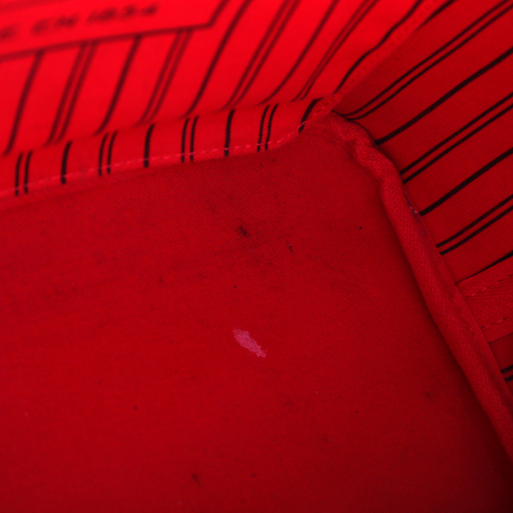 Interior: The interior has minor stains. The interior features one zip closure pocket and one removable pochette.