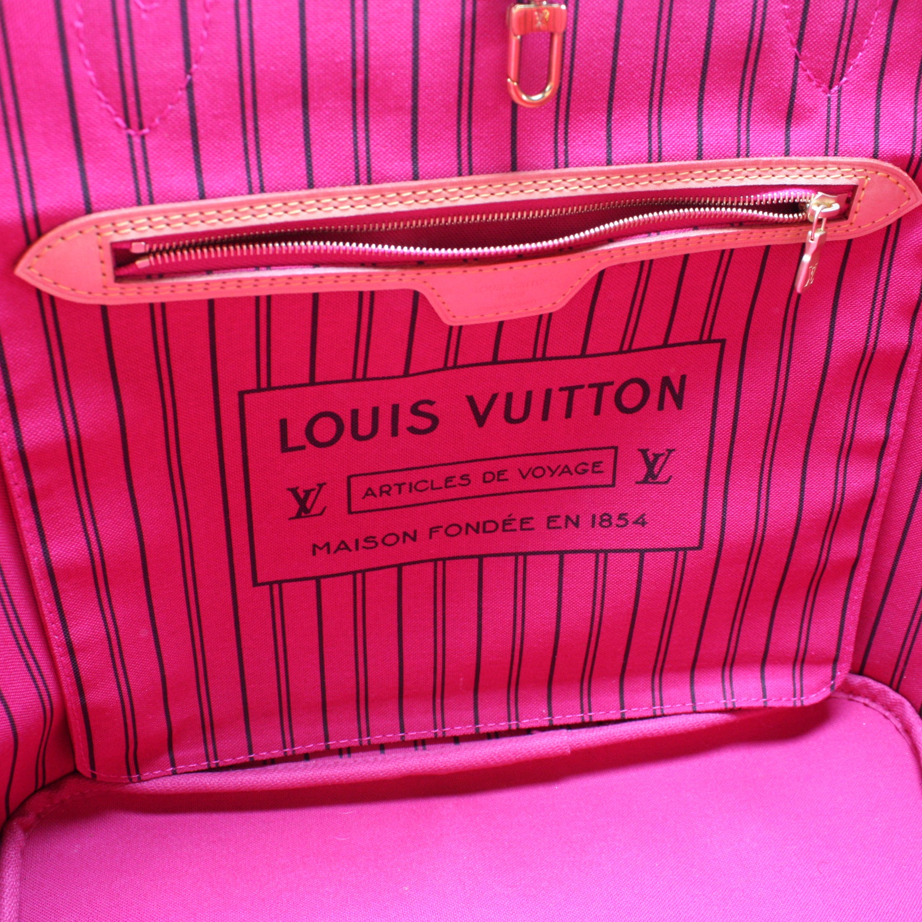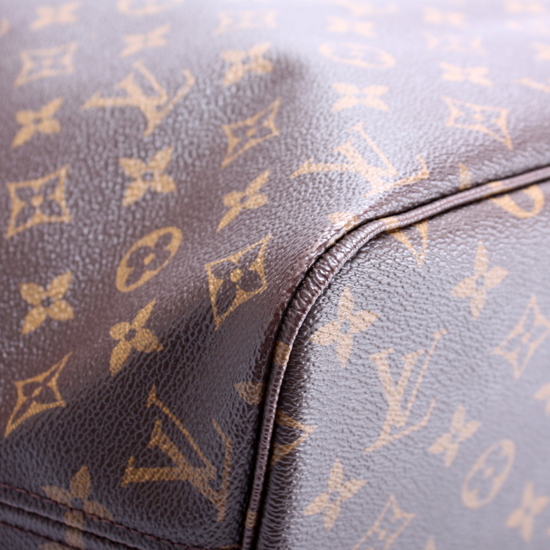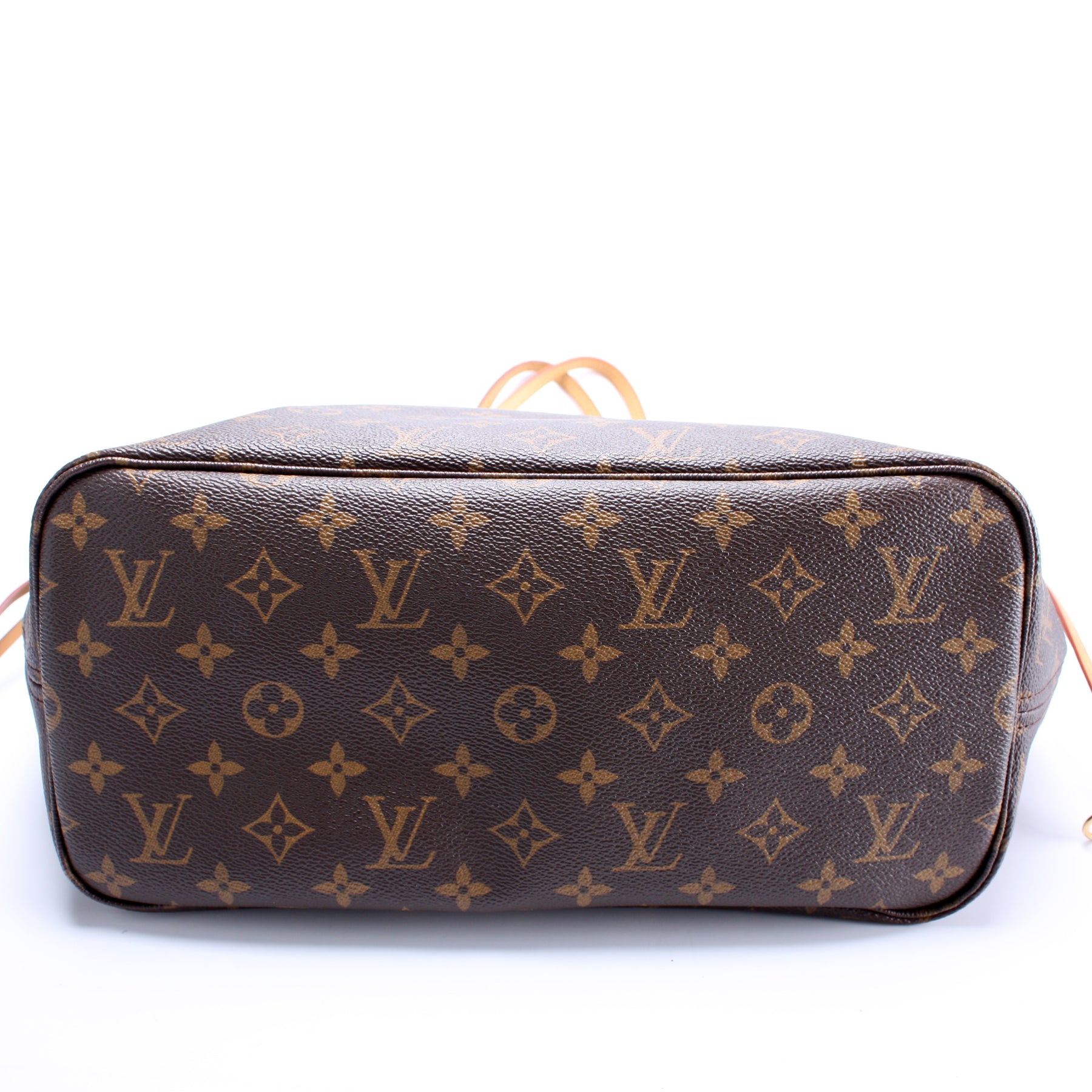 This pre-owned Louis Vuitton Neverfull MM W/ Wallet is guaranteed 100% authentic. The exterior is in the classic Louis Vuitton Monogram coated canvas.