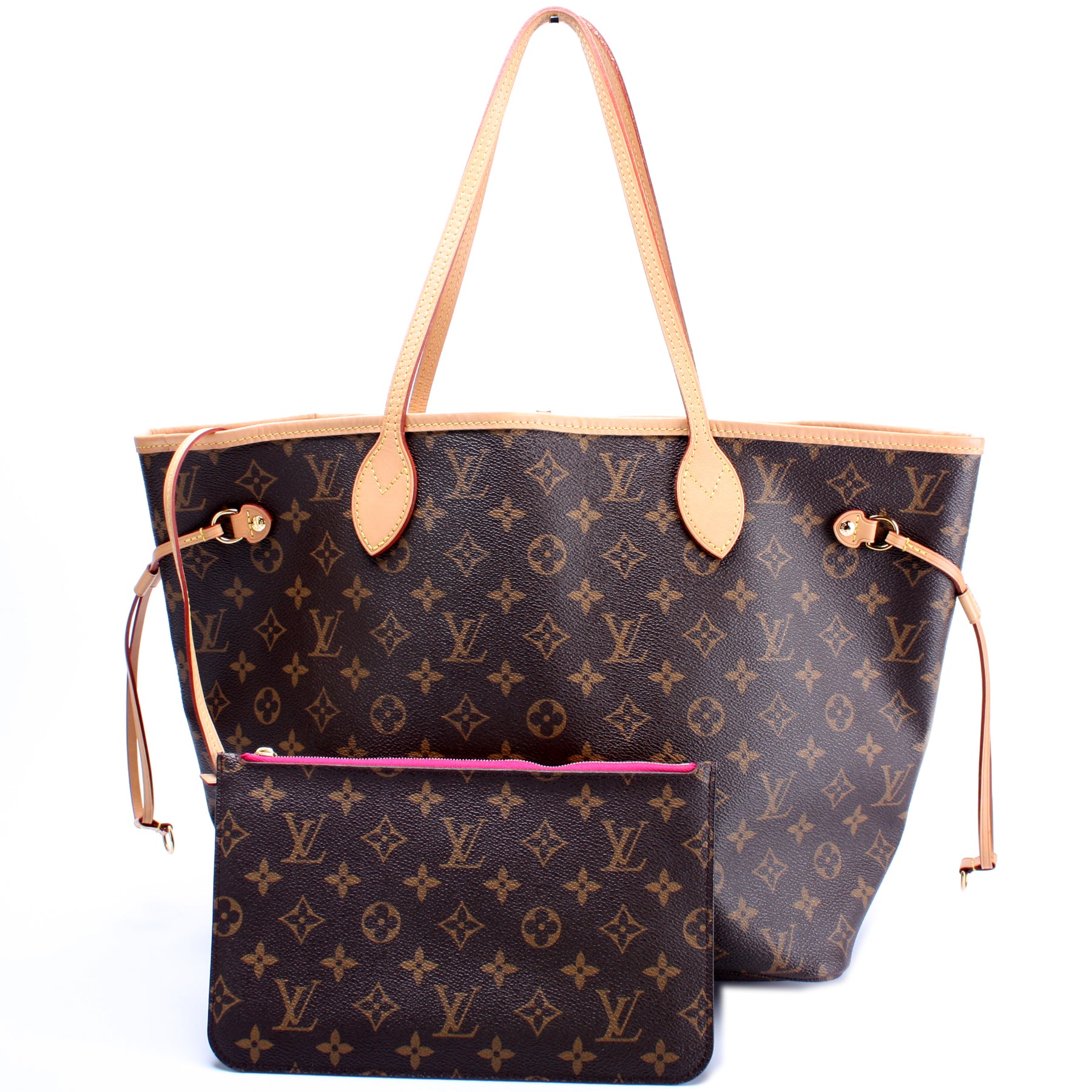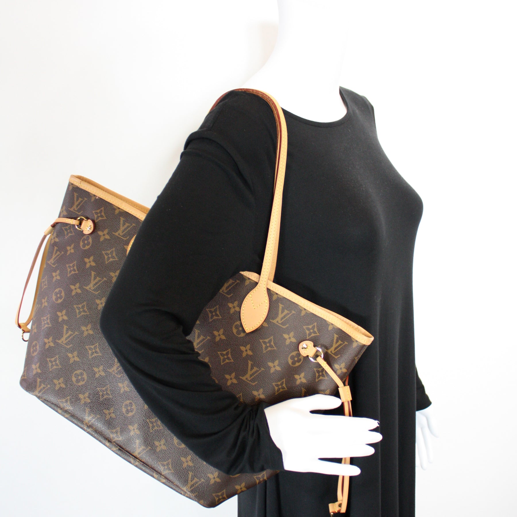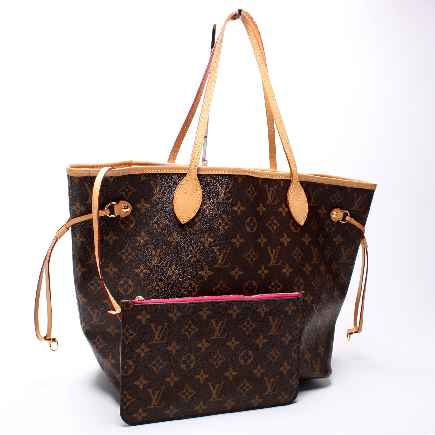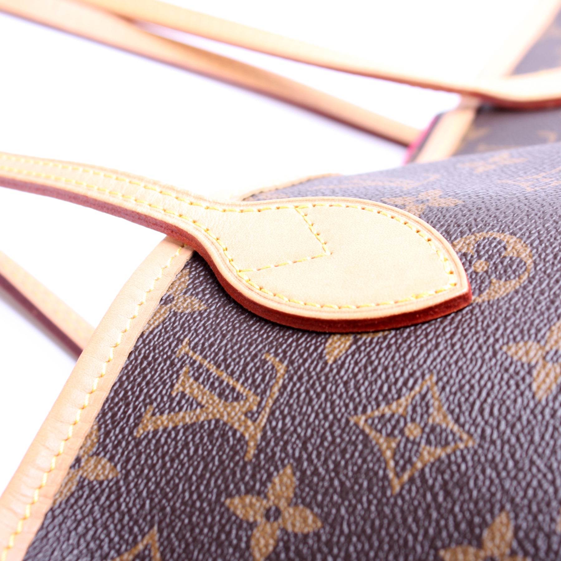 This pre-owned Louis Vuitton Neverfull MM W/ Wallet is guaranteed 100% authentic. The exterior is in the classic Louis Vuitton Monogram coated canvas.