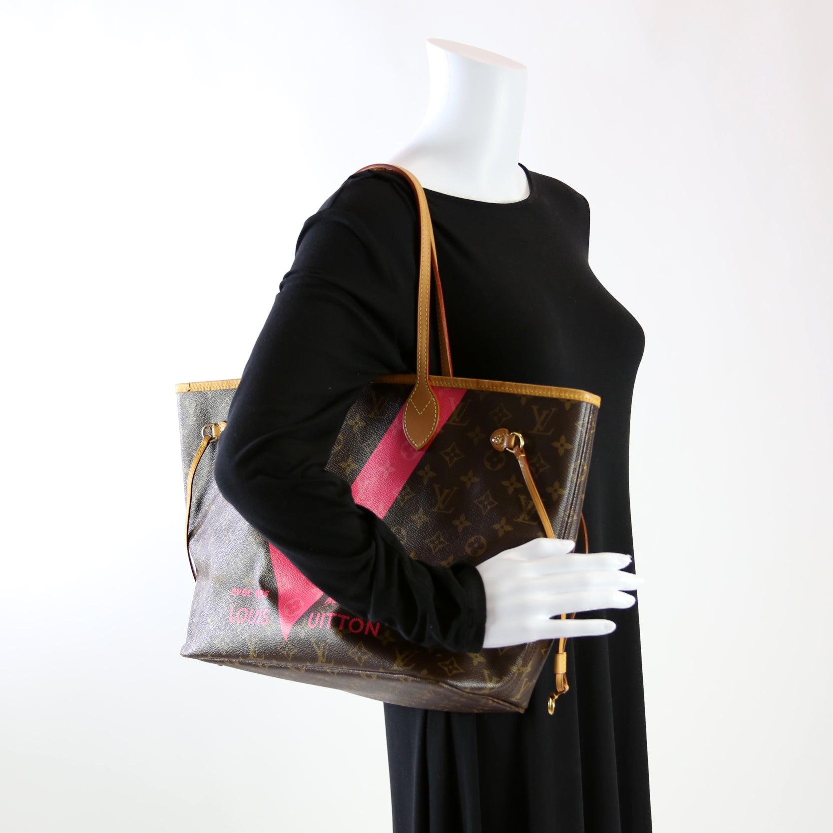 This pre-owned Louis Vuitton Neverfull MM Steven Sprouse Roses is guaranteed 100% authentic. The exterior is in the classic Louis Vuitton Monogram V coated canvas.