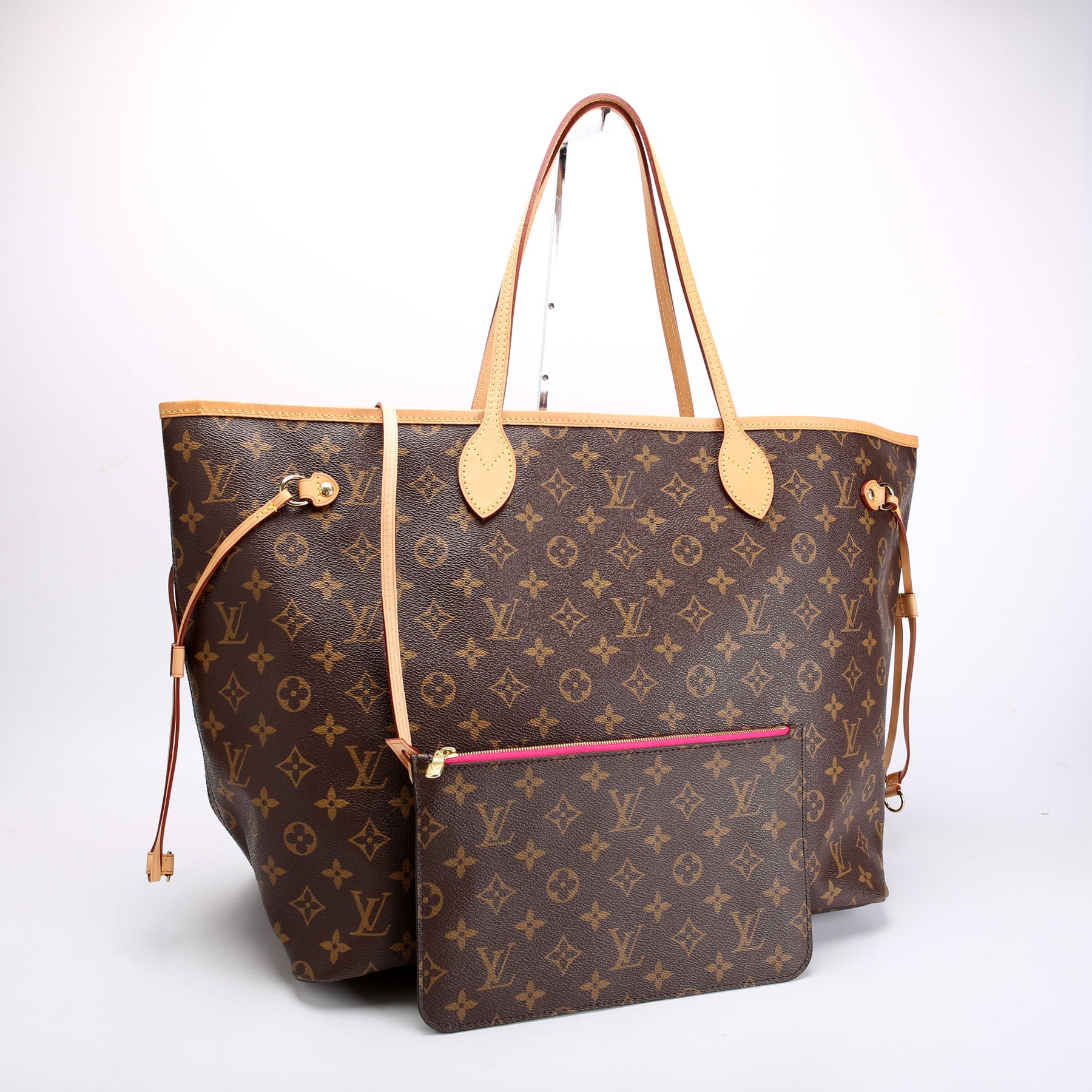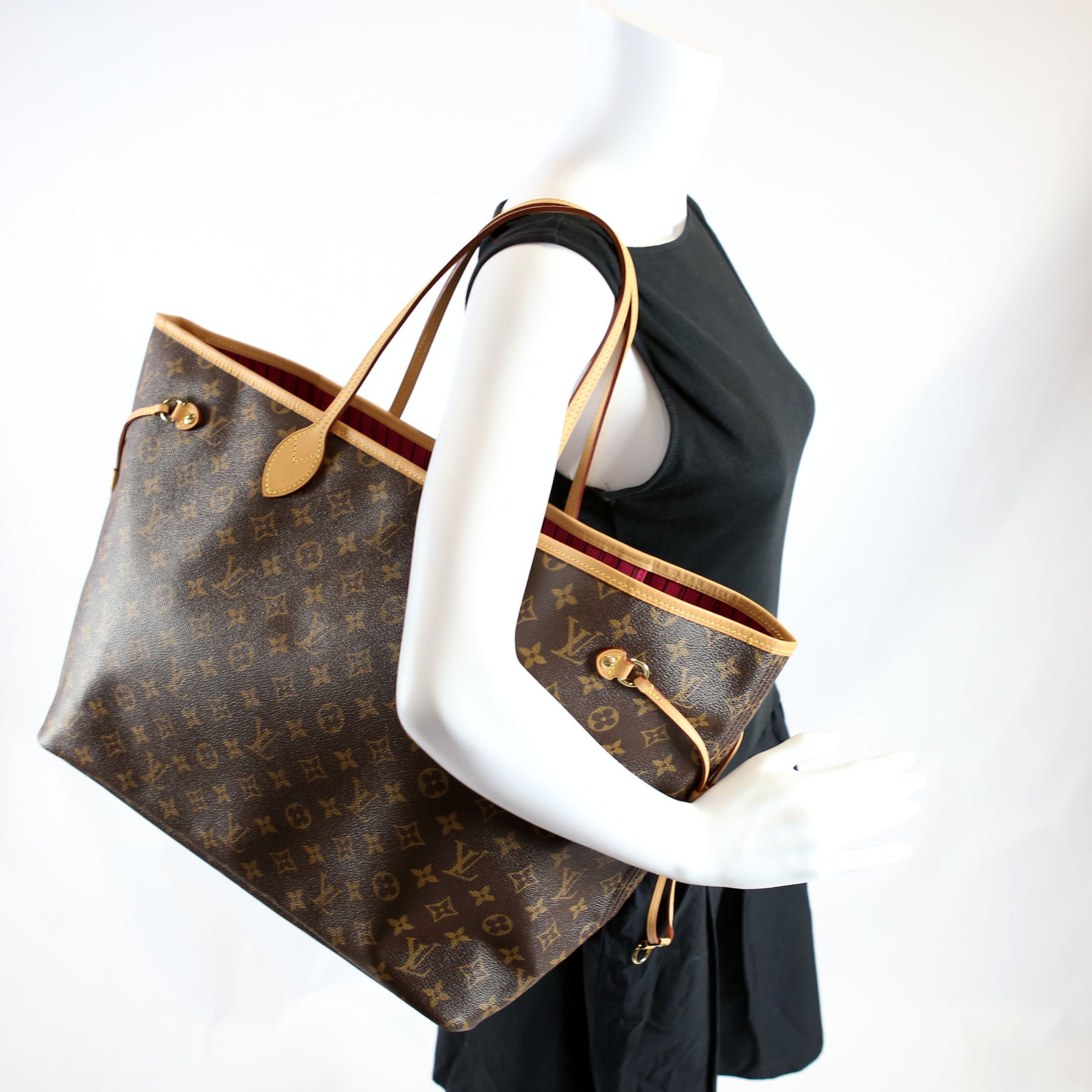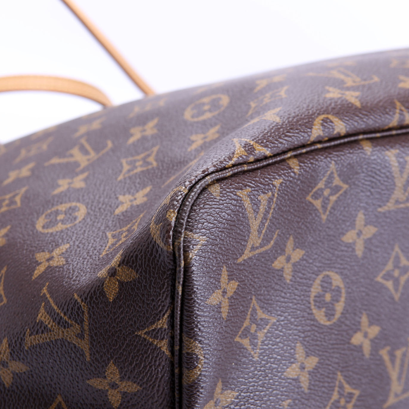 This pre-owned Louis Vuitton Neverfull With Wallet GM is guaranteed 100% authentic. The exterior is in the classic Louis Vuitton Monogram coated canvas.