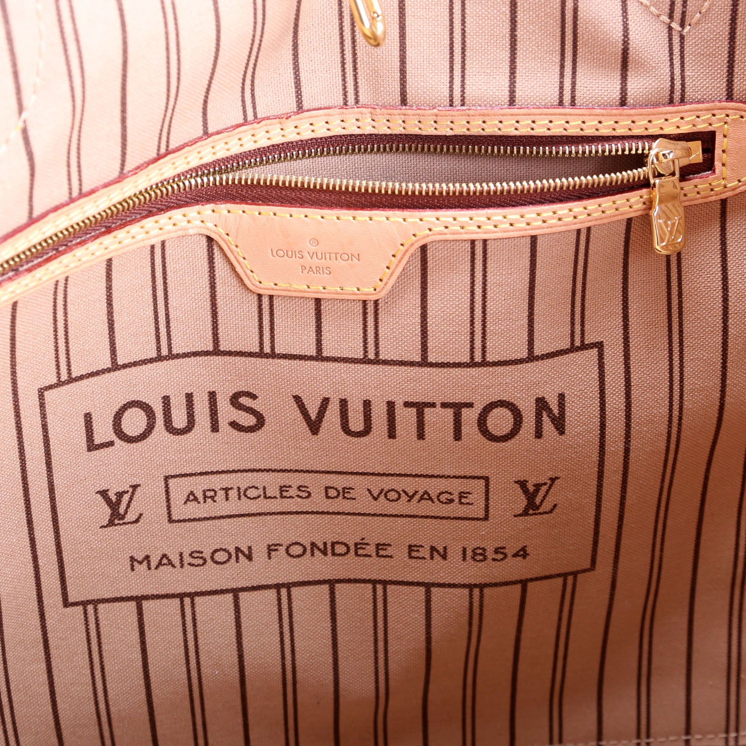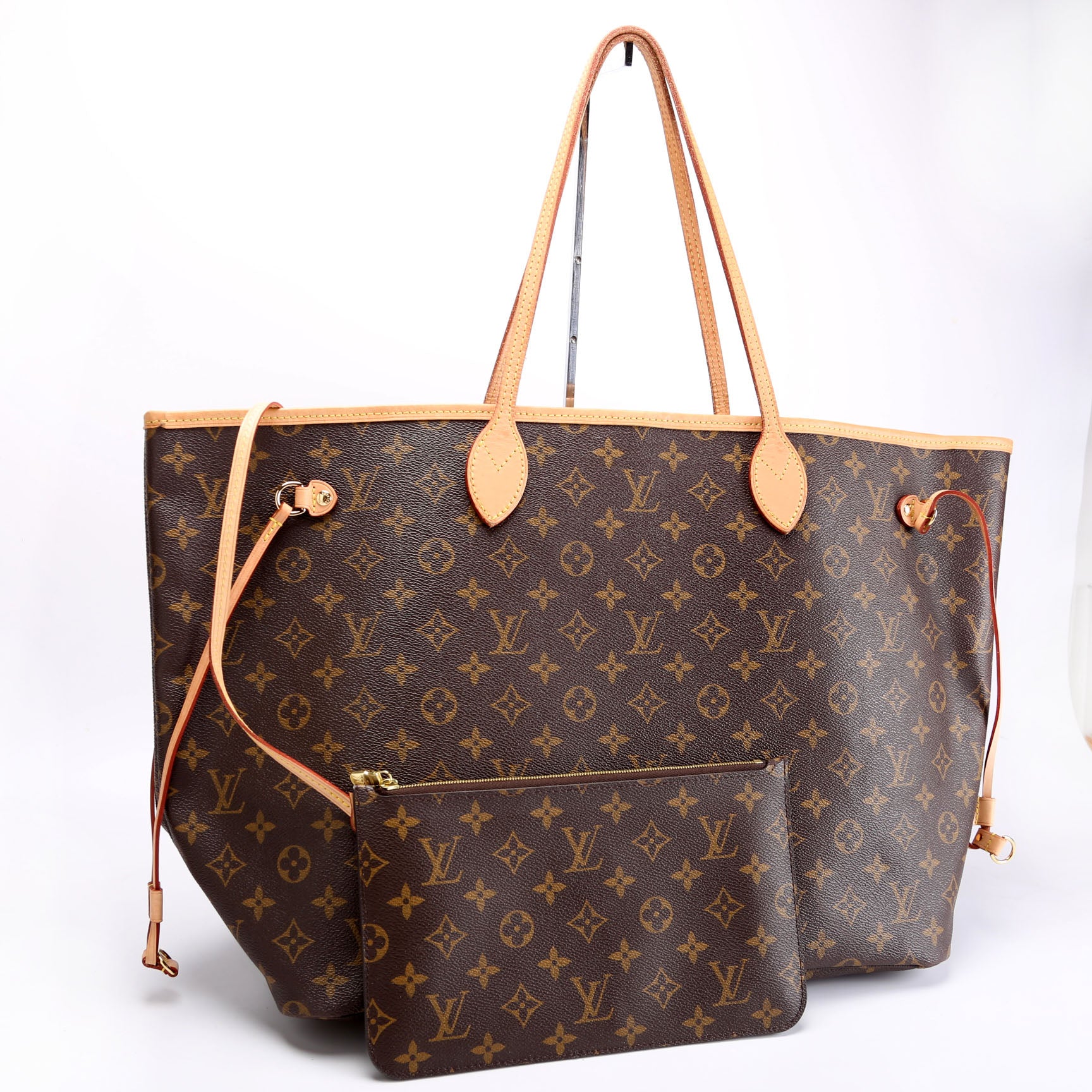 This pre-owned Louis Vuitton Neverfull With Wallet GM is guaranteed 100% authentic. The exterior is in the classic Louis Vuitton Monogram coated canvas.