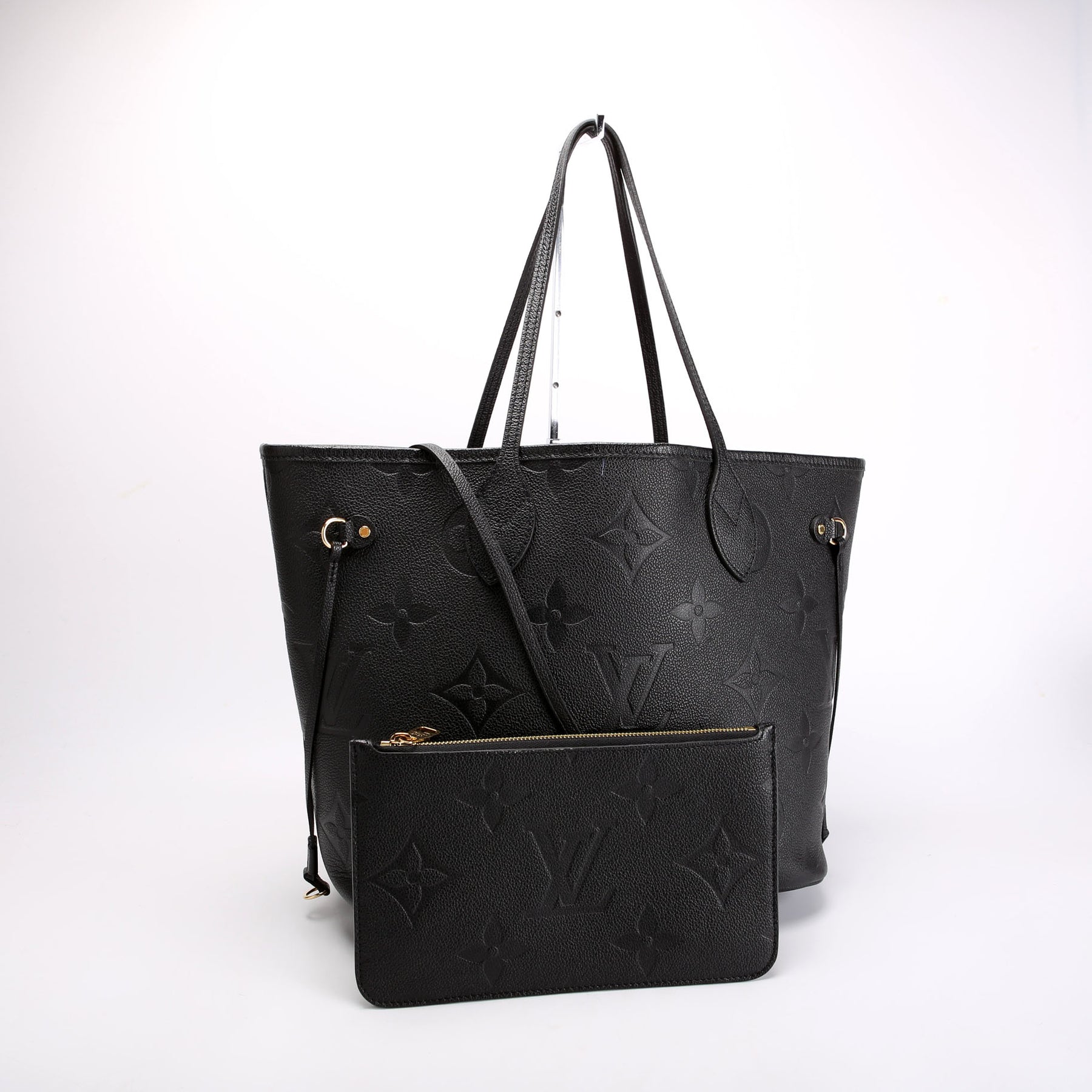 This pre-owned Louis Vuitton Neverfull MM With Wallet is guaranteed 100% authentic. The exterior is in the classic Louis Vuitton Empreinte leather.