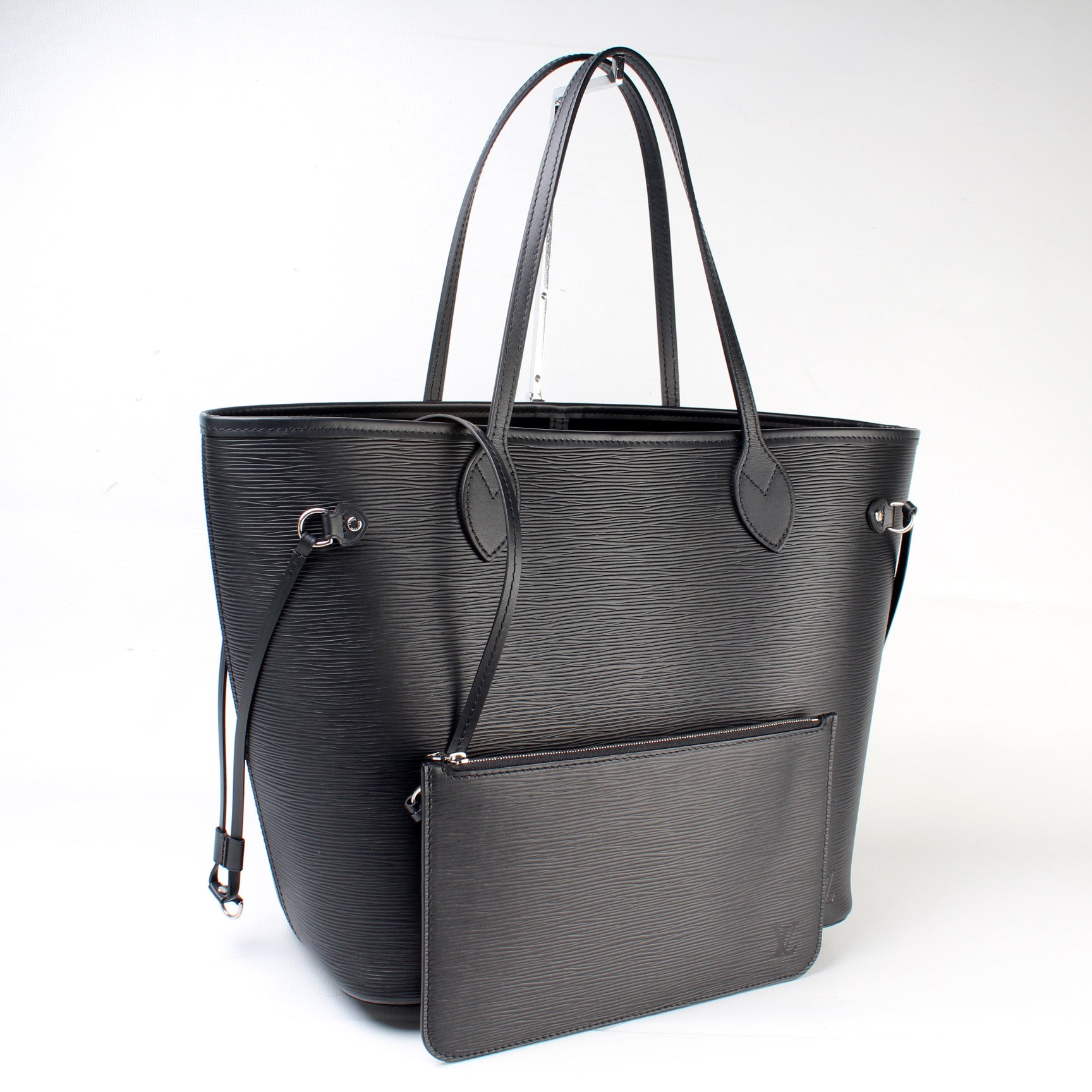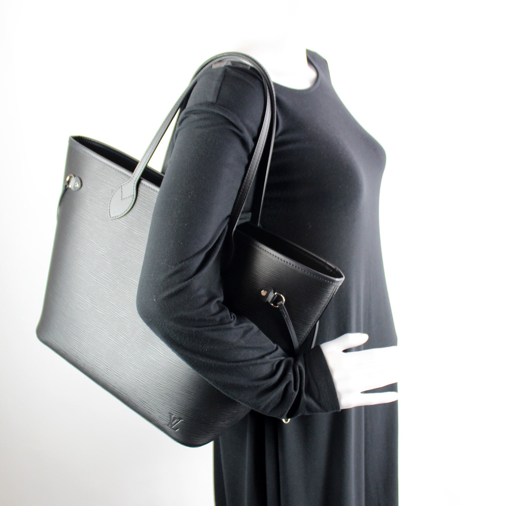 This pre-owned Louis Vuitton Neverfull MM W/Wallet is guaranteed 100% authentic. The exterior is in the classic Louis Vuitton Epi leather.