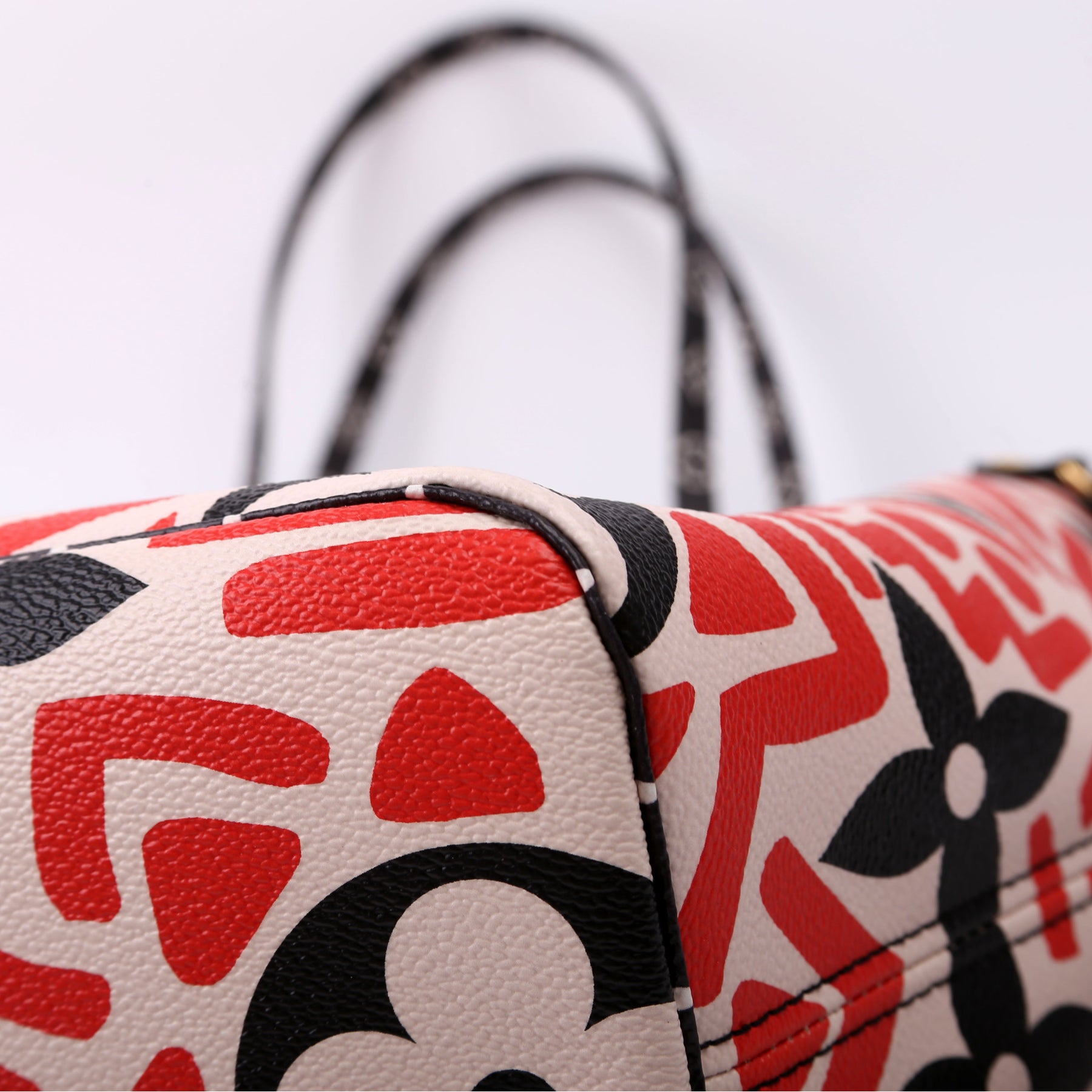 This pre-owned Louis Vuitton Neverfull W/Wallet MM Giant Crafty is guaranteed 100% authentic.