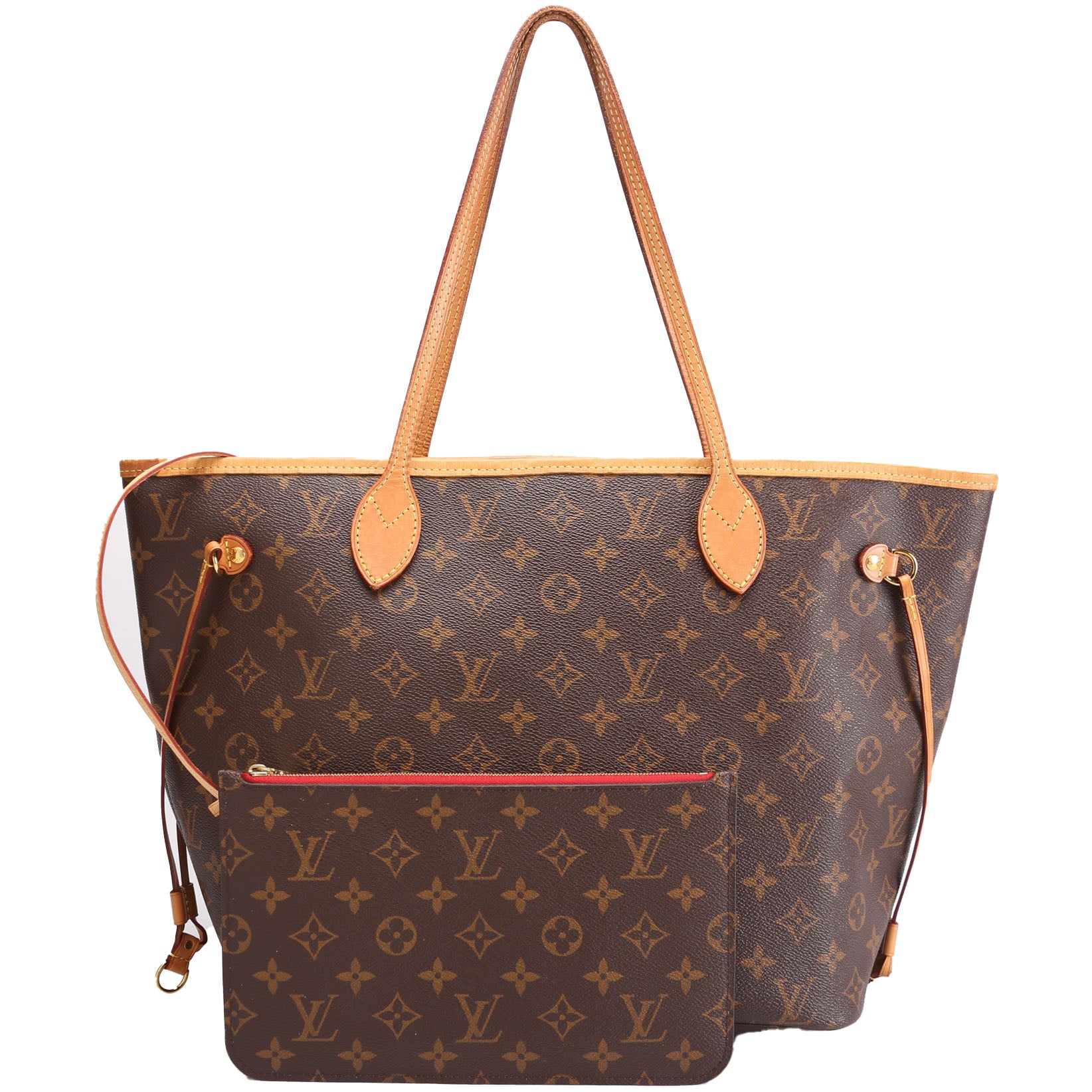 This pre-owned Louis Vuitton Neverfull With Wallet MM is guaranteed 100% authentic. The exterior is in the classic Louis Vuitton Monogram coated canvas.