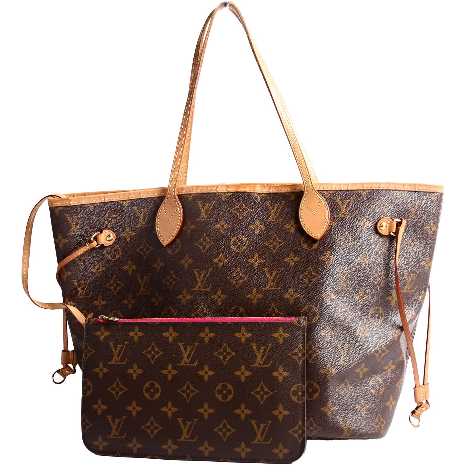 This pre-owned Louis Vuitton Neverfull With Wallet MM is guaranteed 100% authentic. The exterior is in the classic Louis Vuitton Monogram coated canvas.