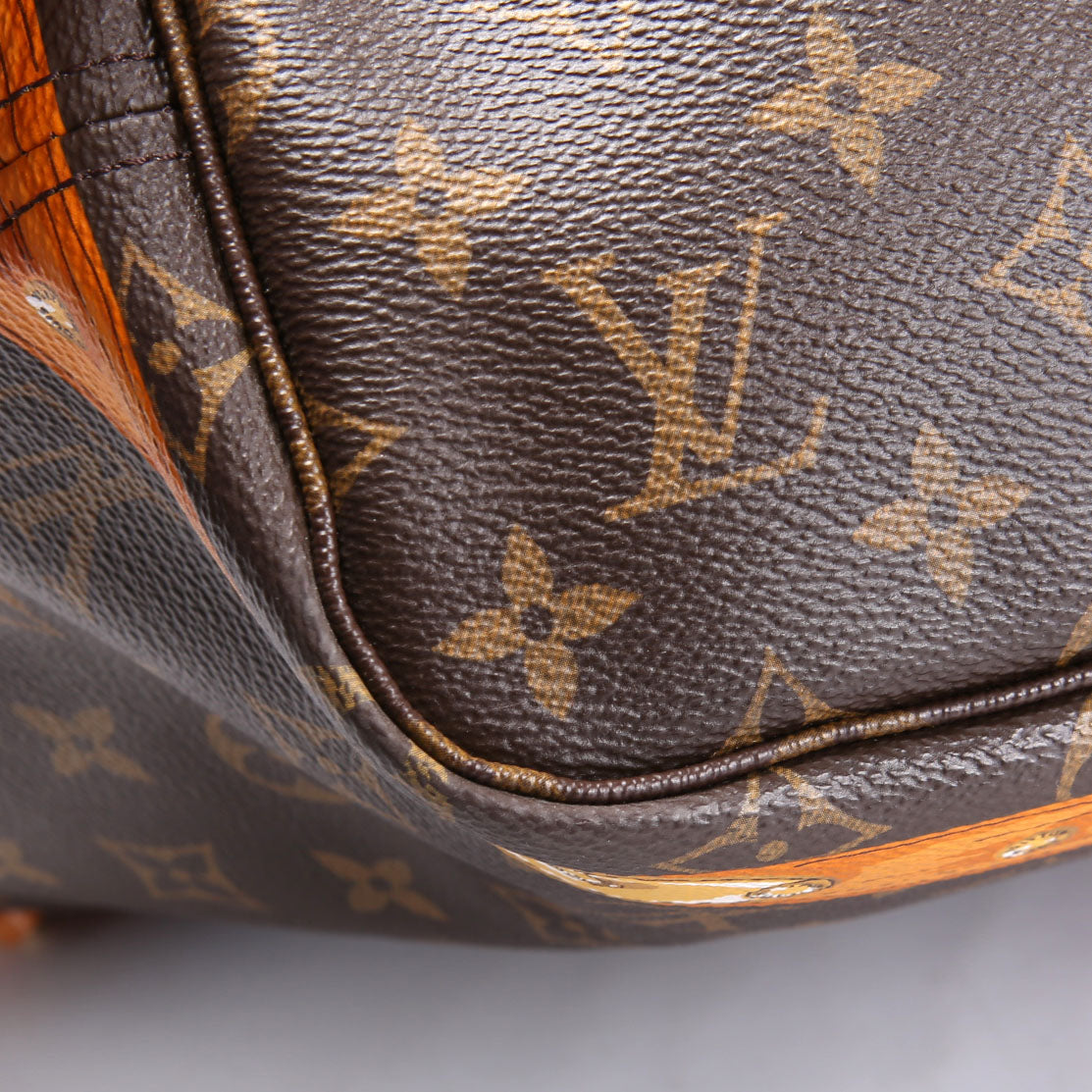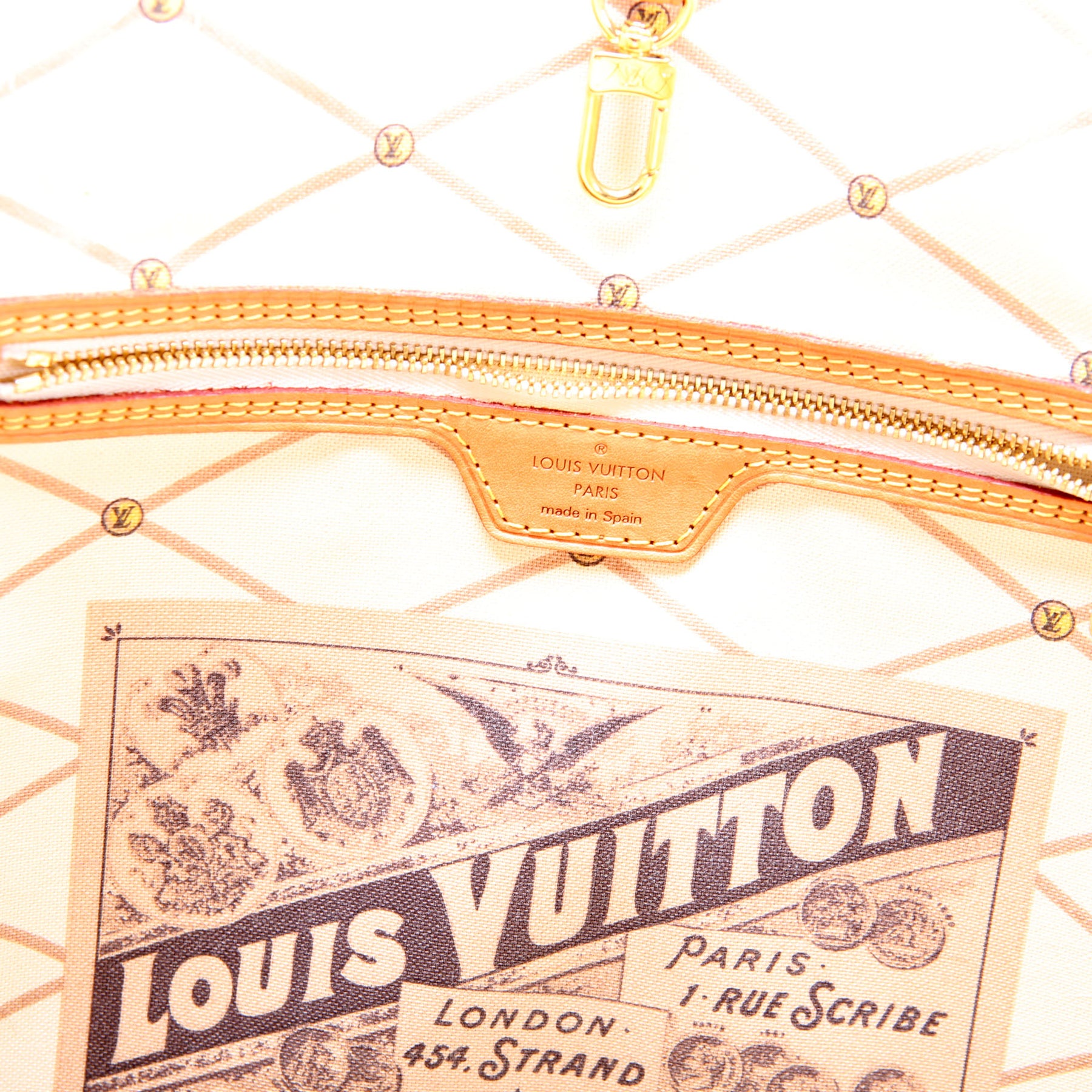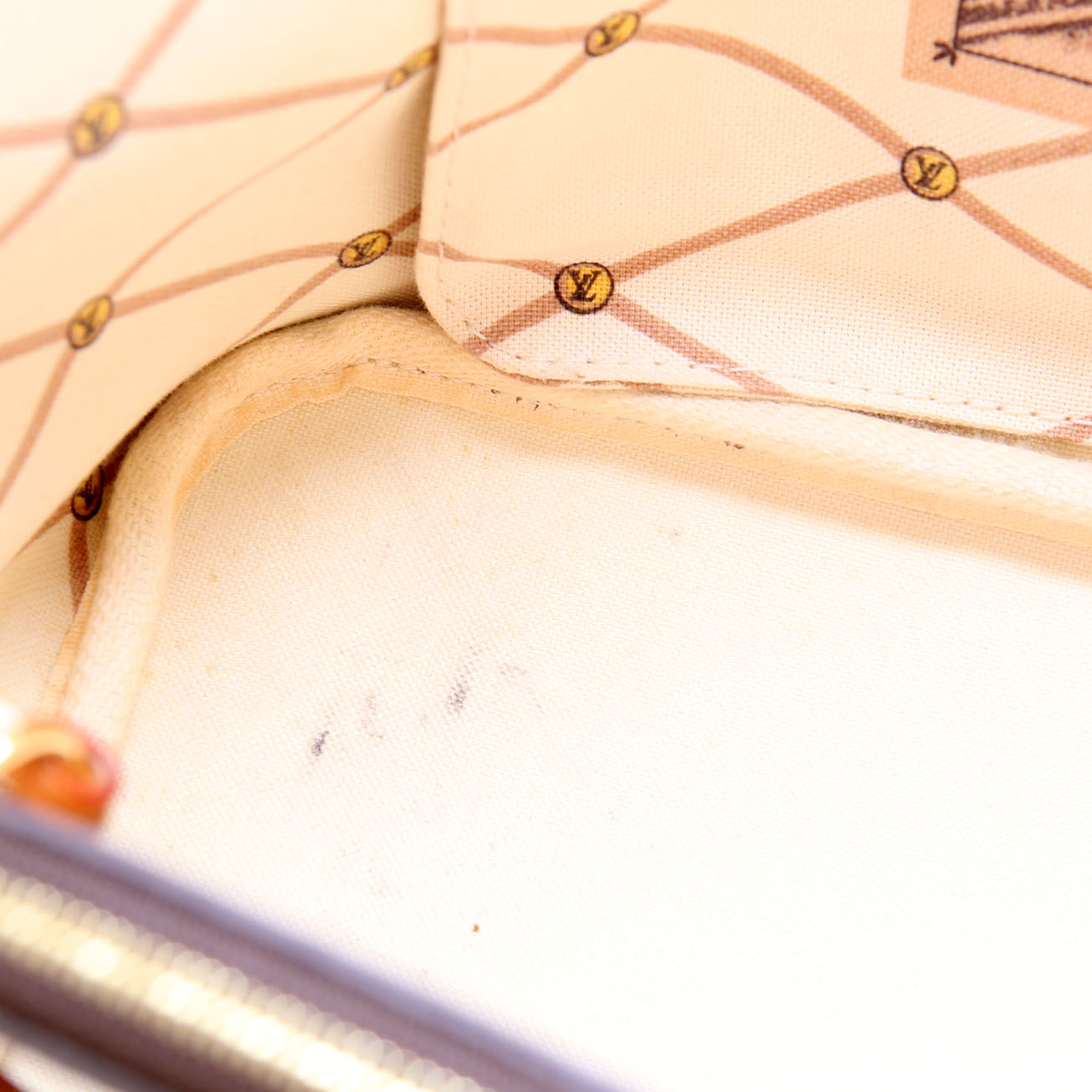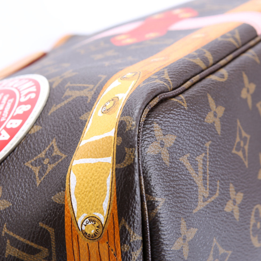 This pre-owned Louis Vuitton Neverfull With Wallet MM Summer Trunks is guaranteed 100% authentic. The exterior is in the classic Louis Vuitton Monogram coated canvas.
