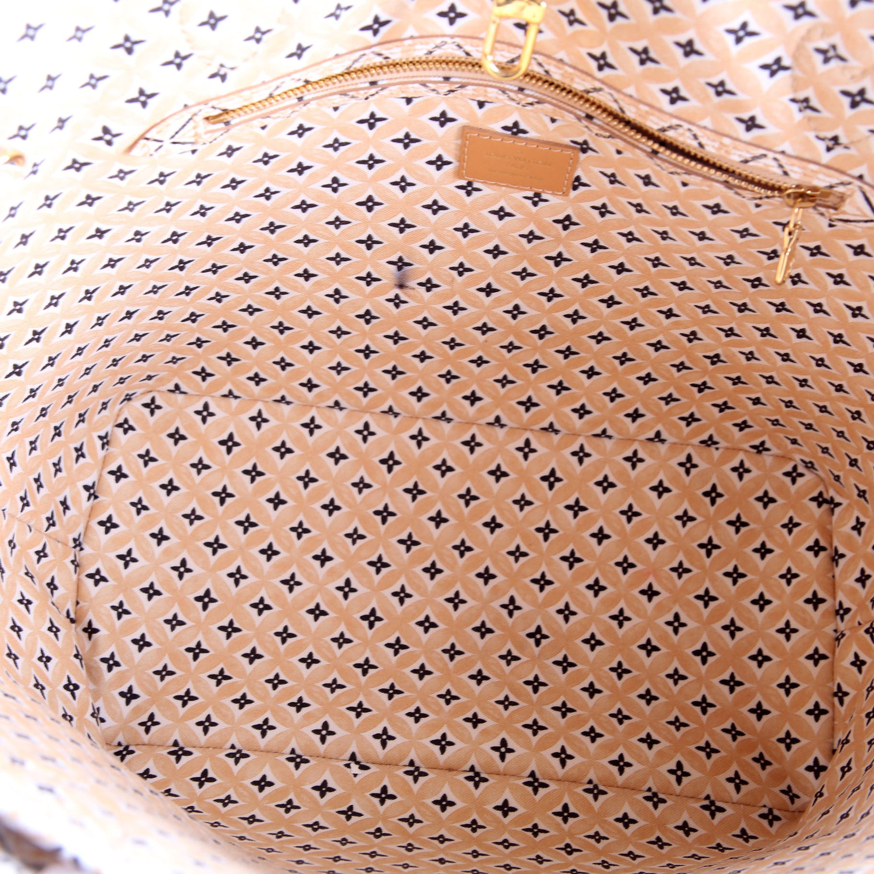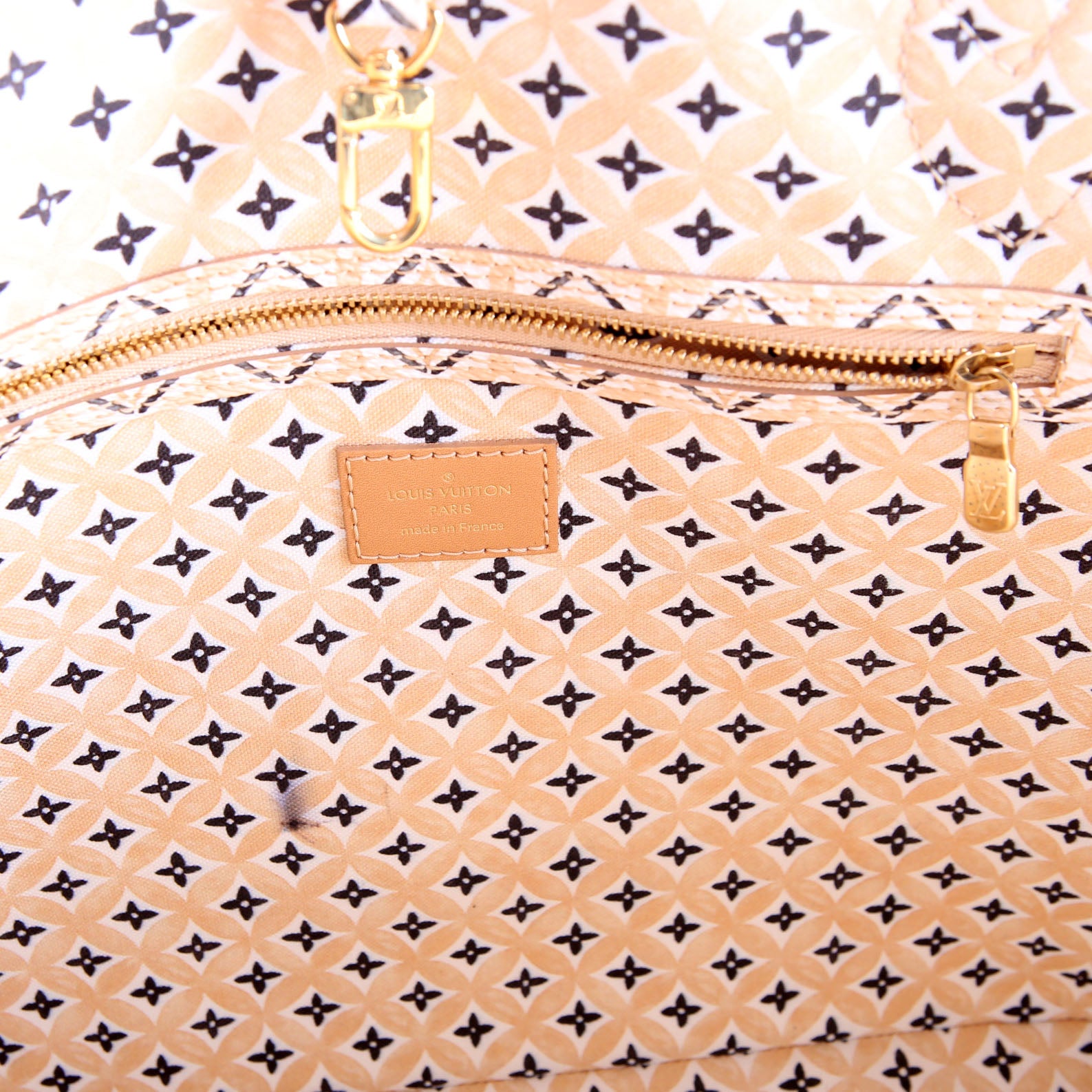 Interior: The interior is free from wear. It features one zip closure pocket, and one removable zip closure pouch.