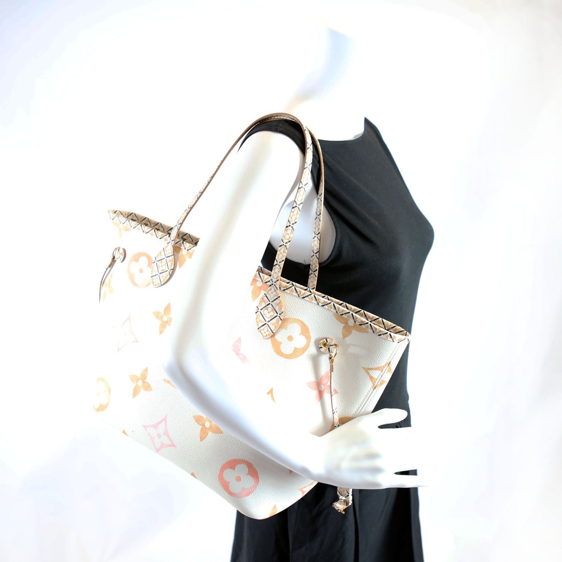 Neverfull With Wallet MM Watercolor BYTHEPOOL White/Tan