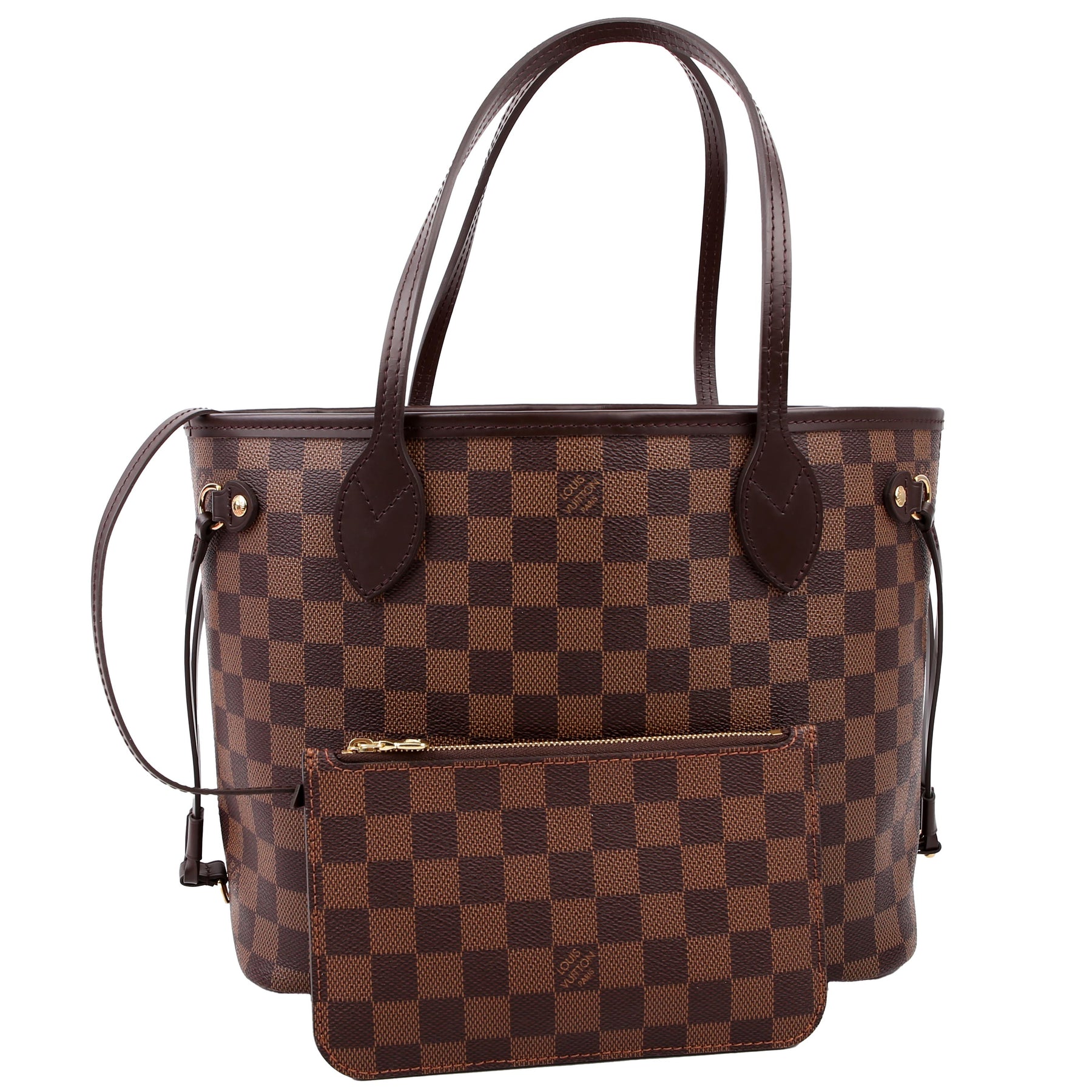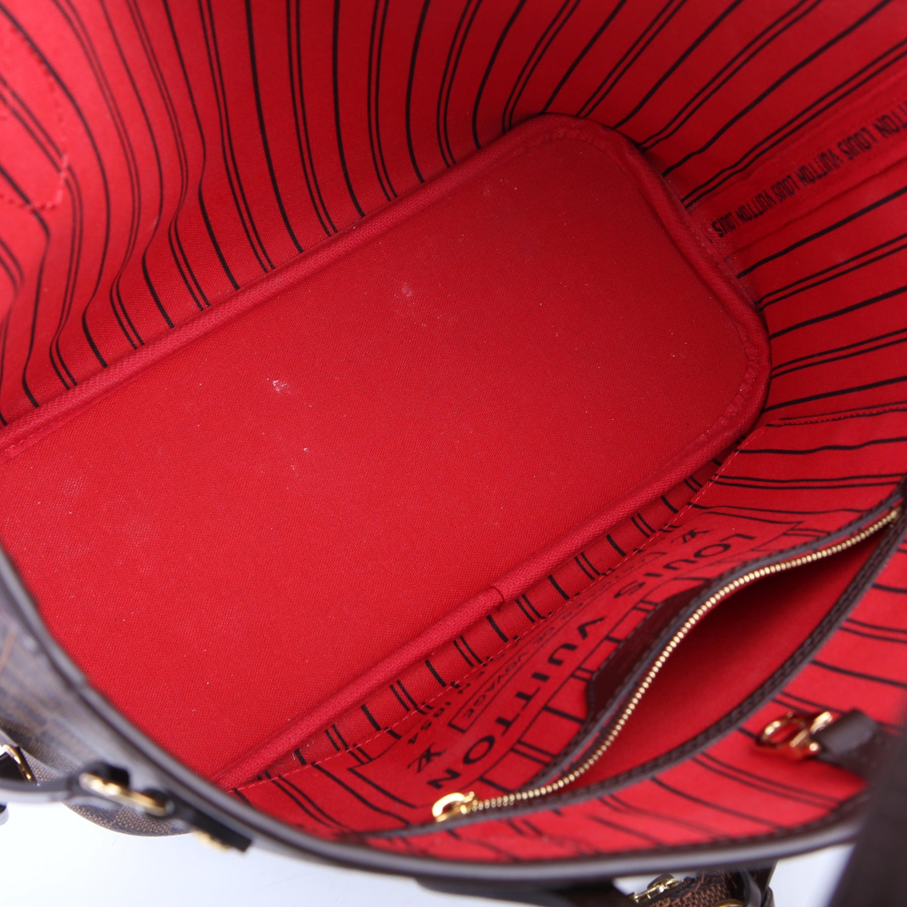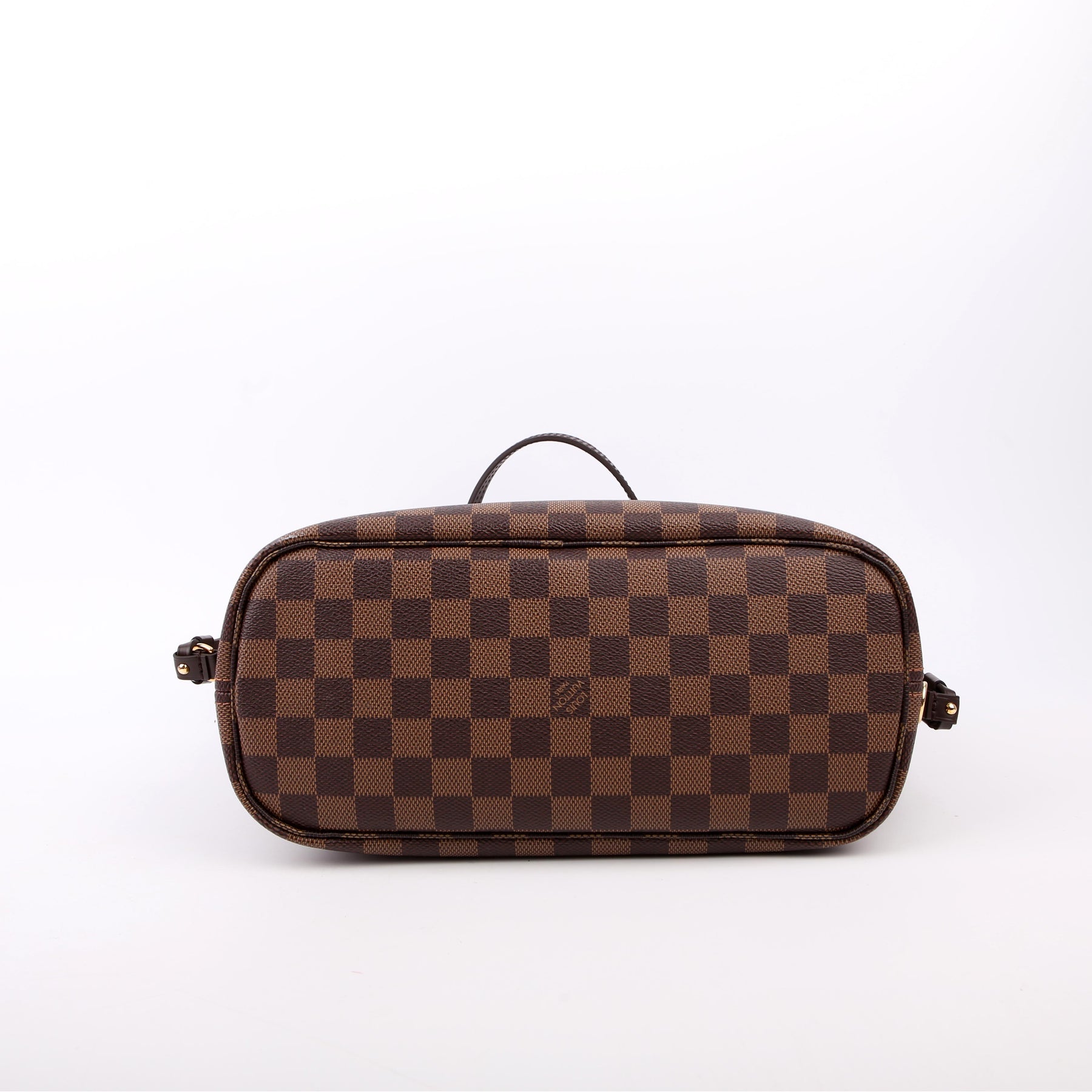 This pre-owned Louis Vuitton Neverfull with Wallet PM is guaranteed 100% authentic. The exterior is in the classic Louis Vuitton Damier Ebene coated canvas.