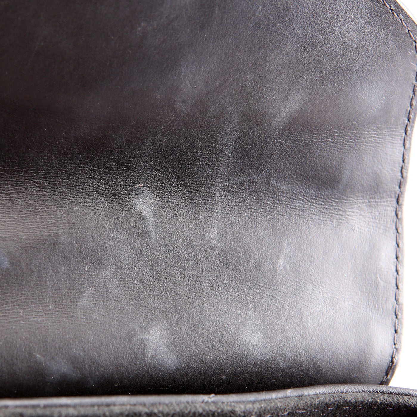 Exterior: The exterior leather shows light marks and very light glitter throughout. The base shows light scuffs and creasing.