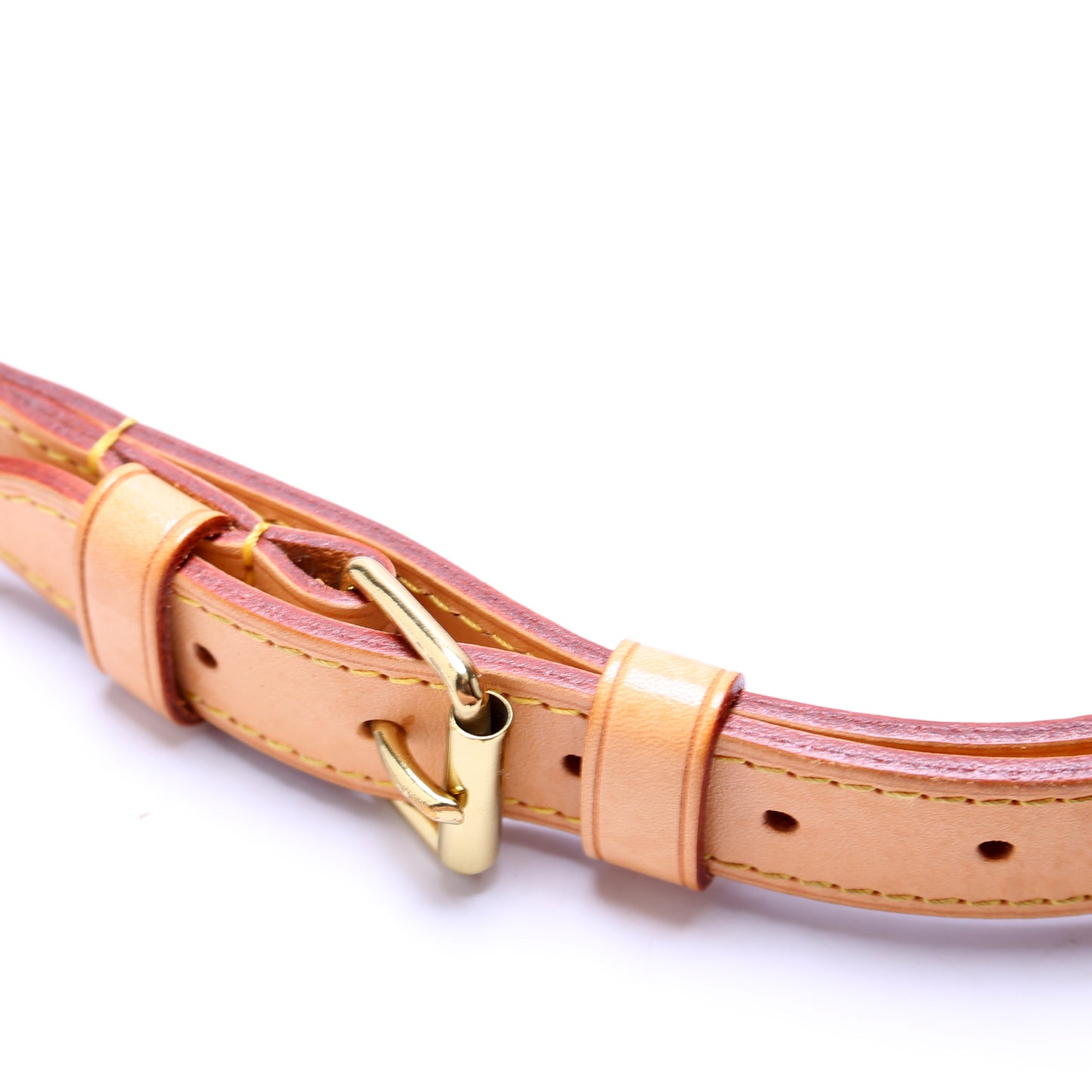 Hardware: The drawstring is fully intact and operates properly. The leather shows minor wear throughout.