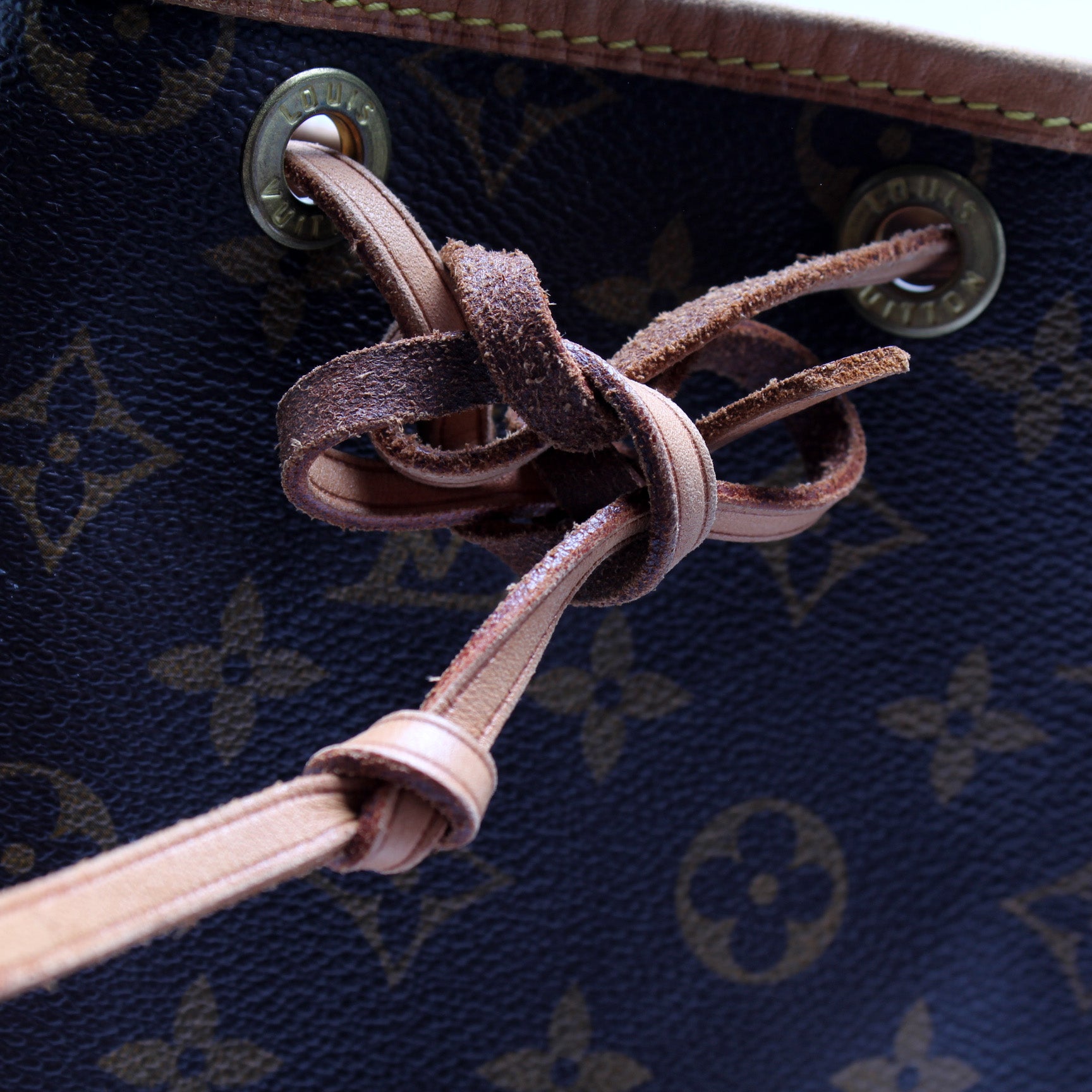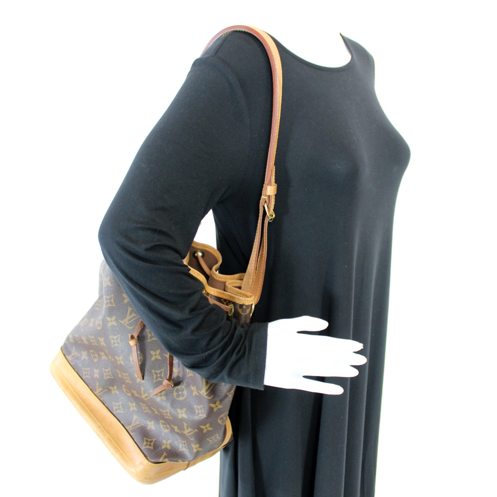 This pre-owned Louis Vuitton Noe is guaranteed 100% authentic. The exterior is in the classic Louis Vuitton Monogram coated canvas.