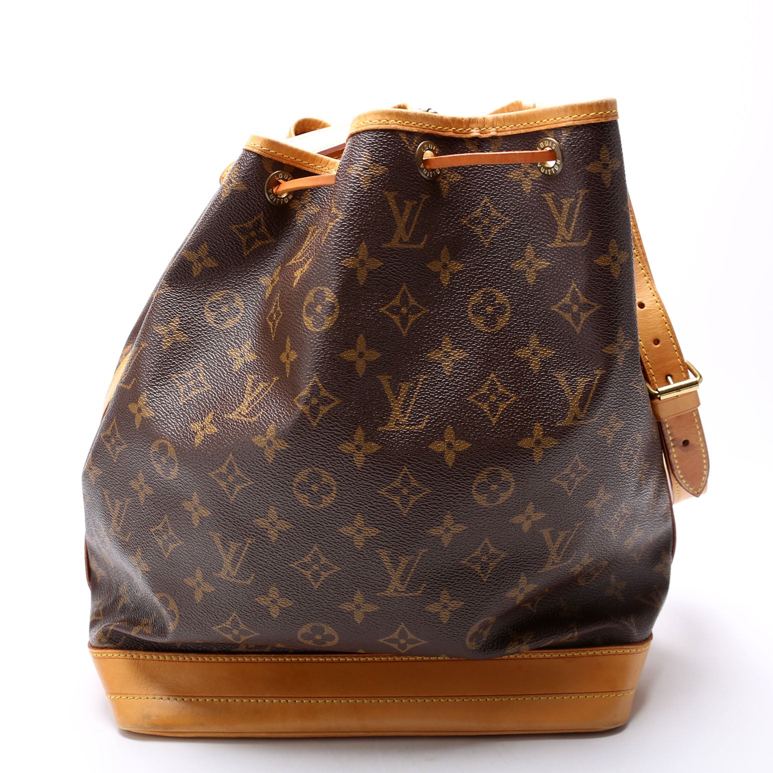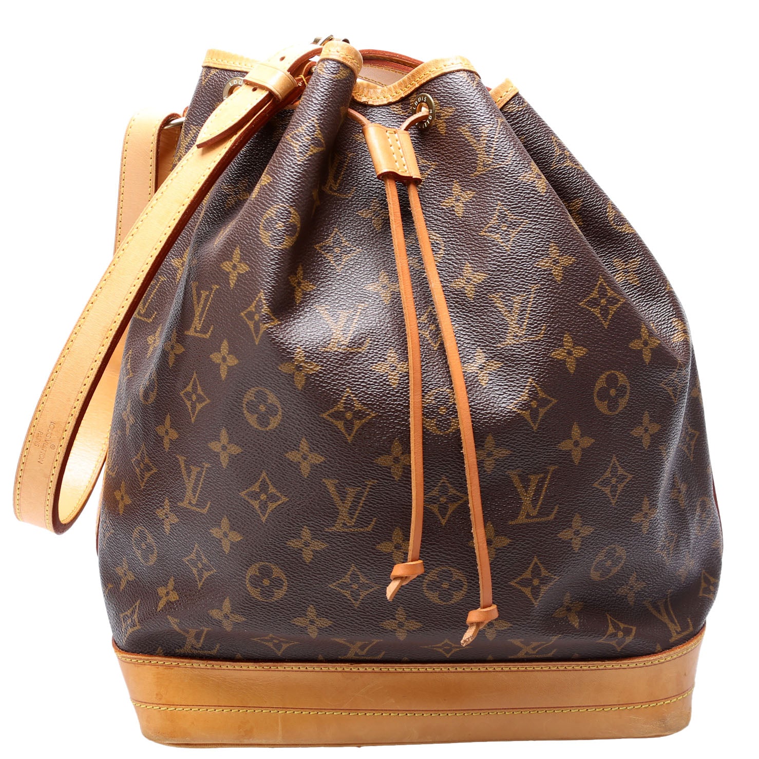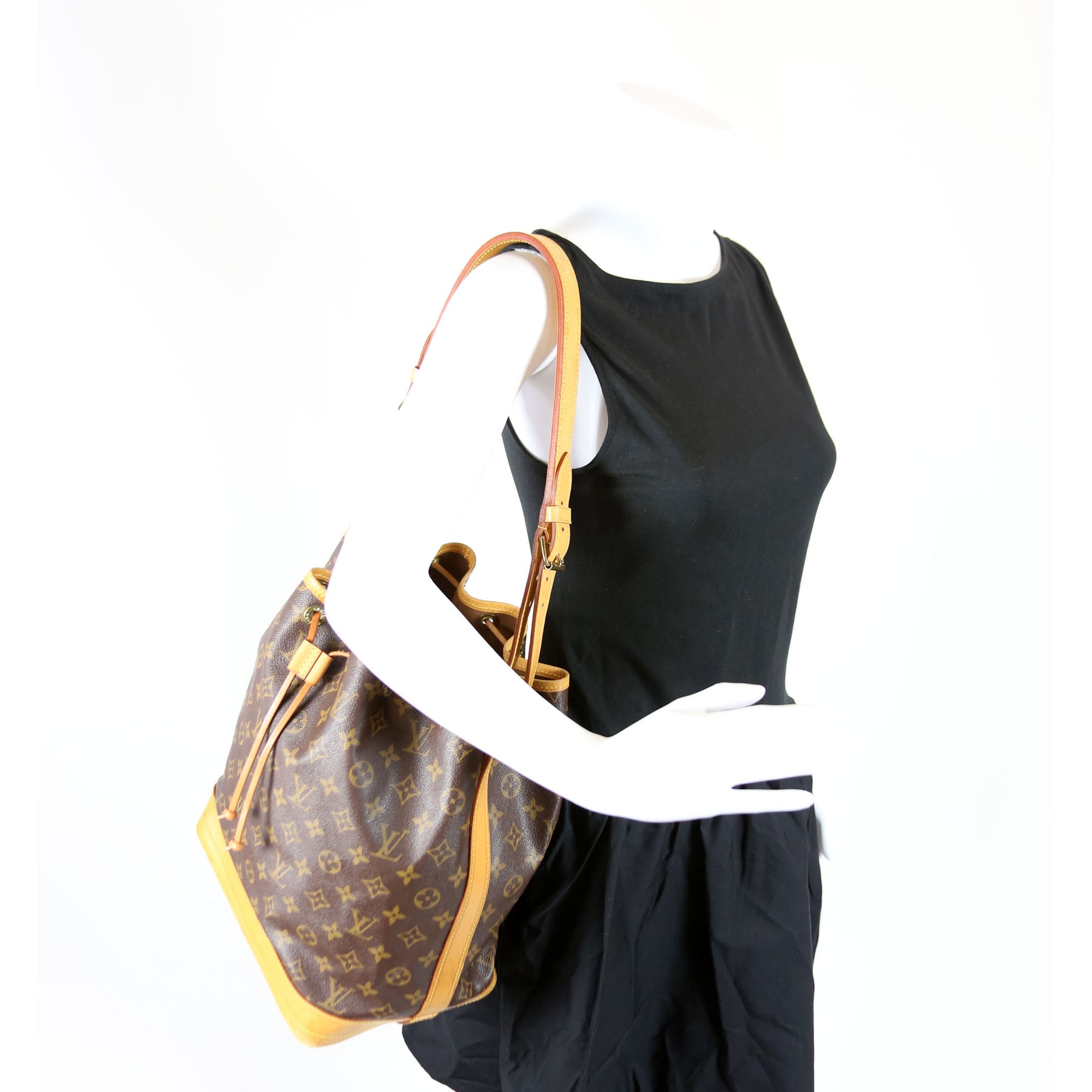 This pre-owned Louis Vuitton Noe Vintage is guaranteed 100% authentic. The exterior is in the classic Louis Vuitton Monogram coated canvas.