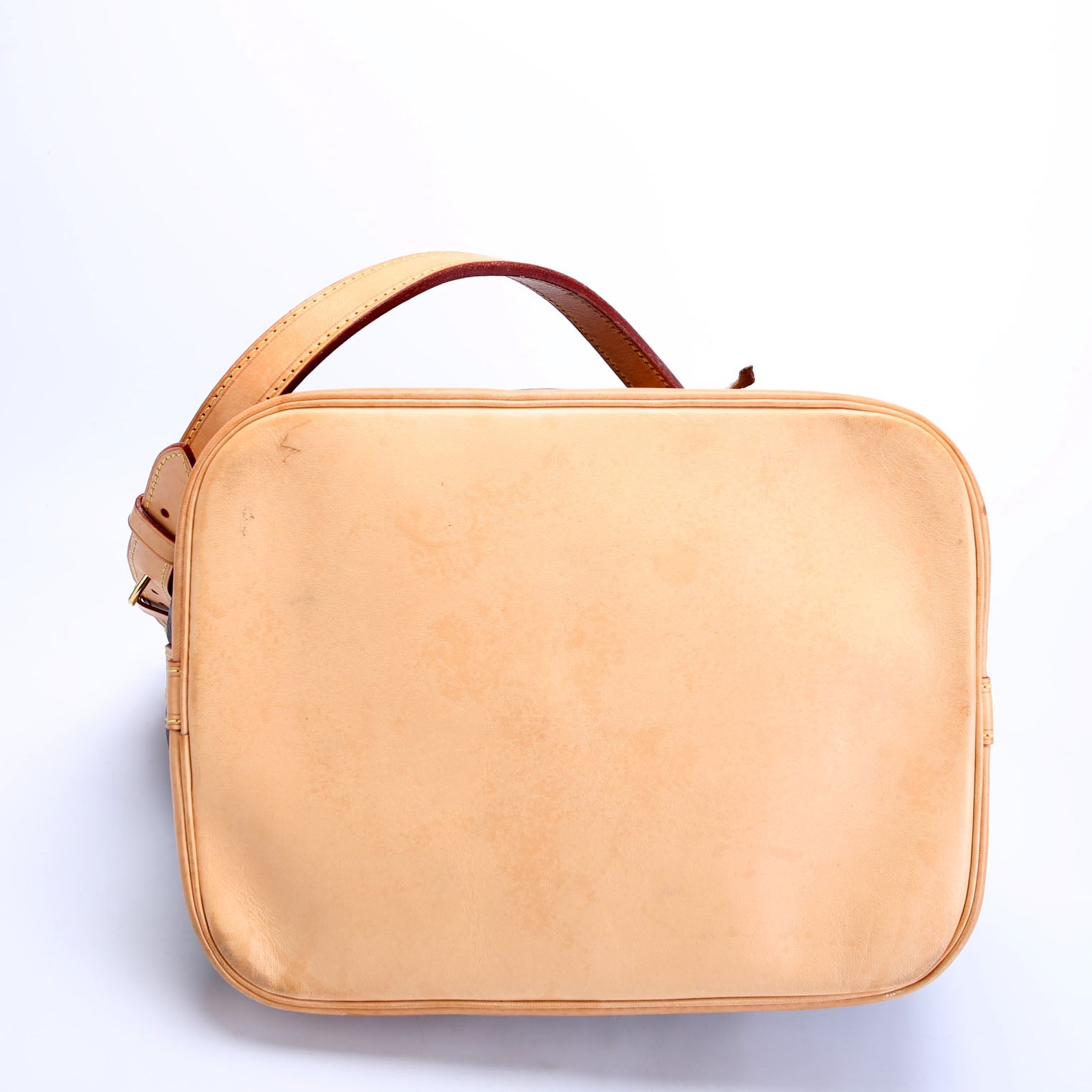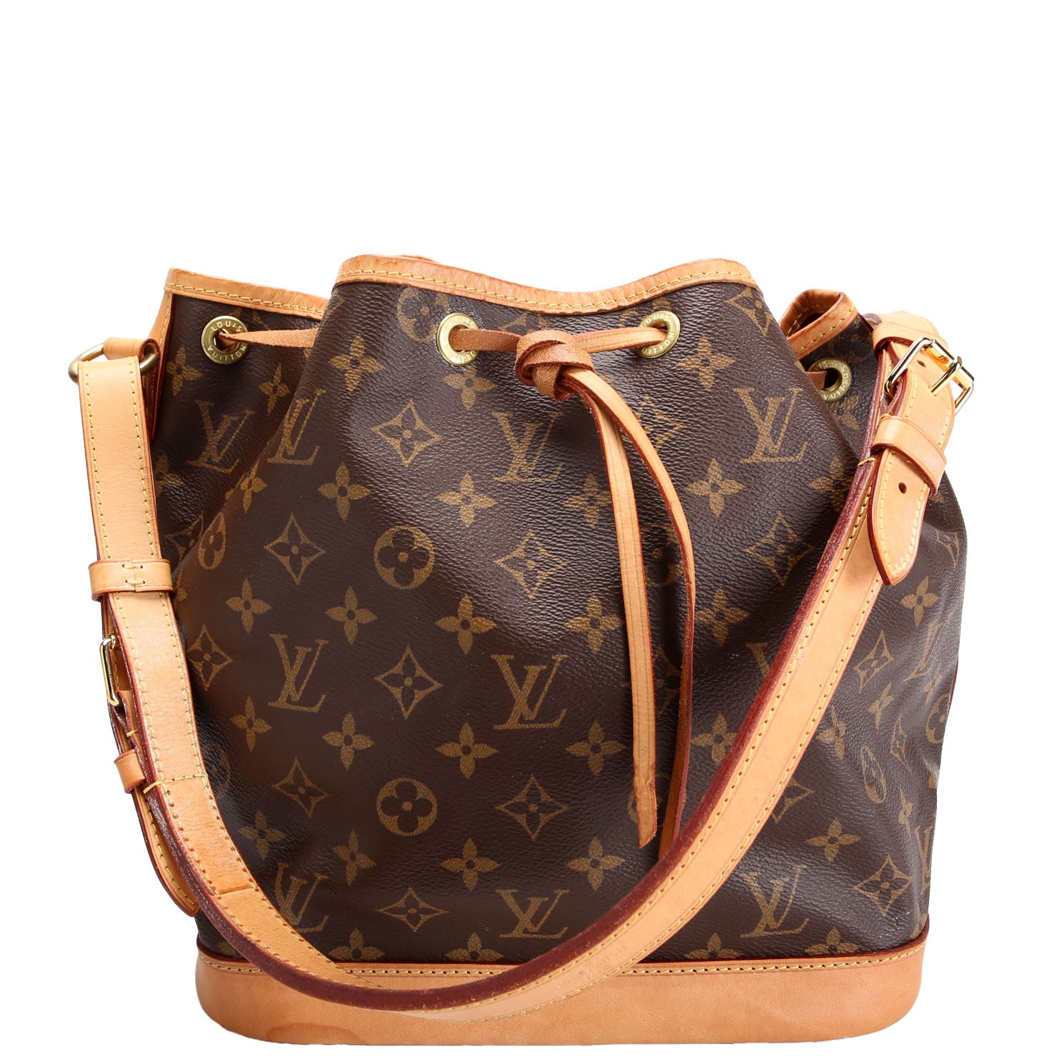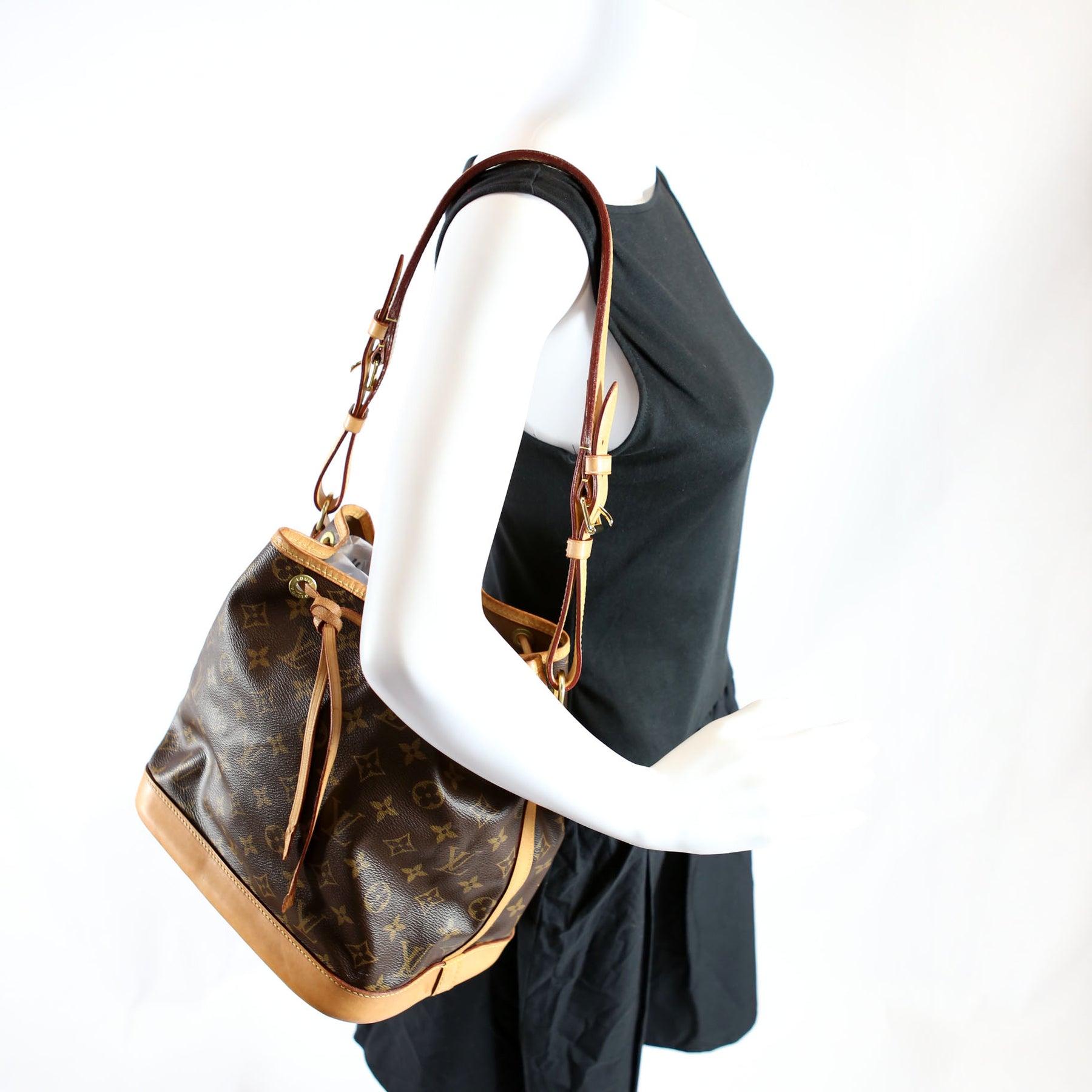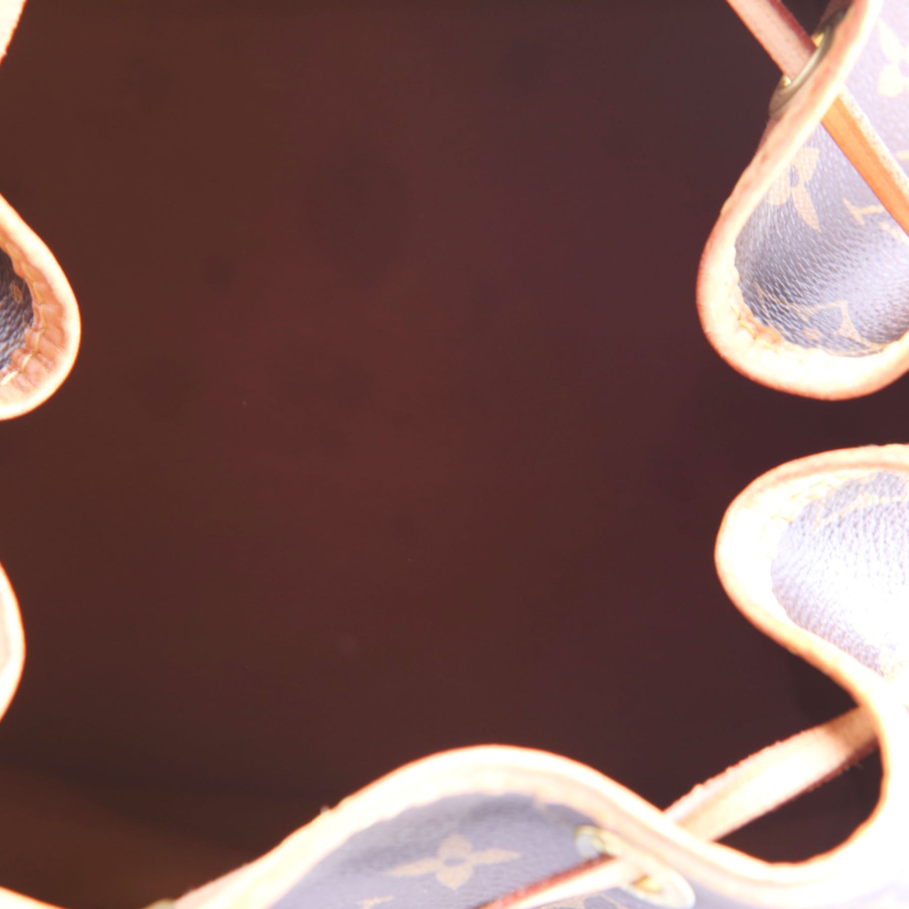 This pre-owned Louis Vuitton Noe Petit NM Monogram is guaranteed 100% authentic. The exterior is in the classic Louis Vuitton Monogram Coated Canvas.