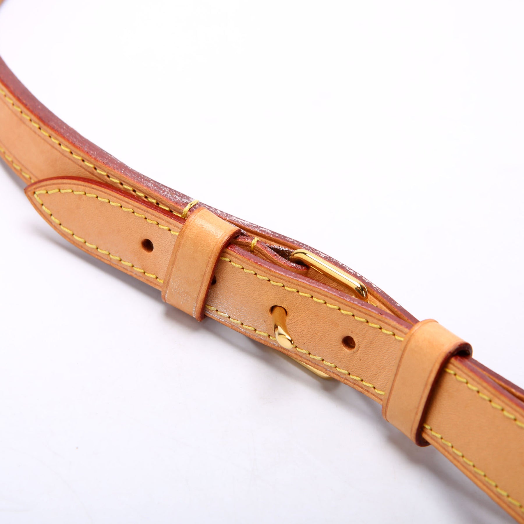 Strap: The strap shows discoloration and wear. The trim has white residue throughout.