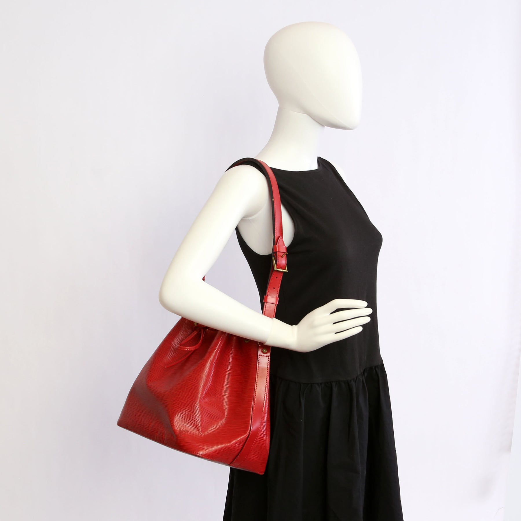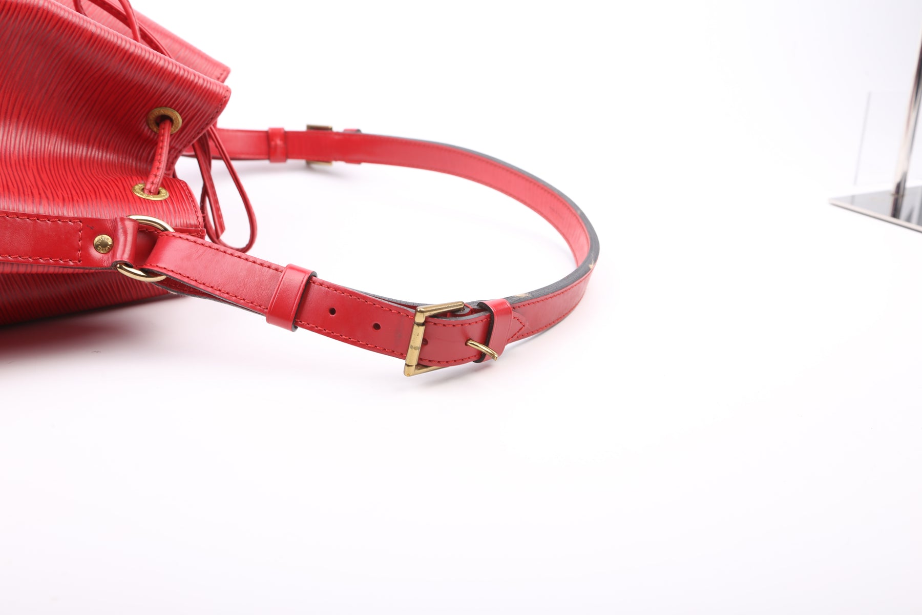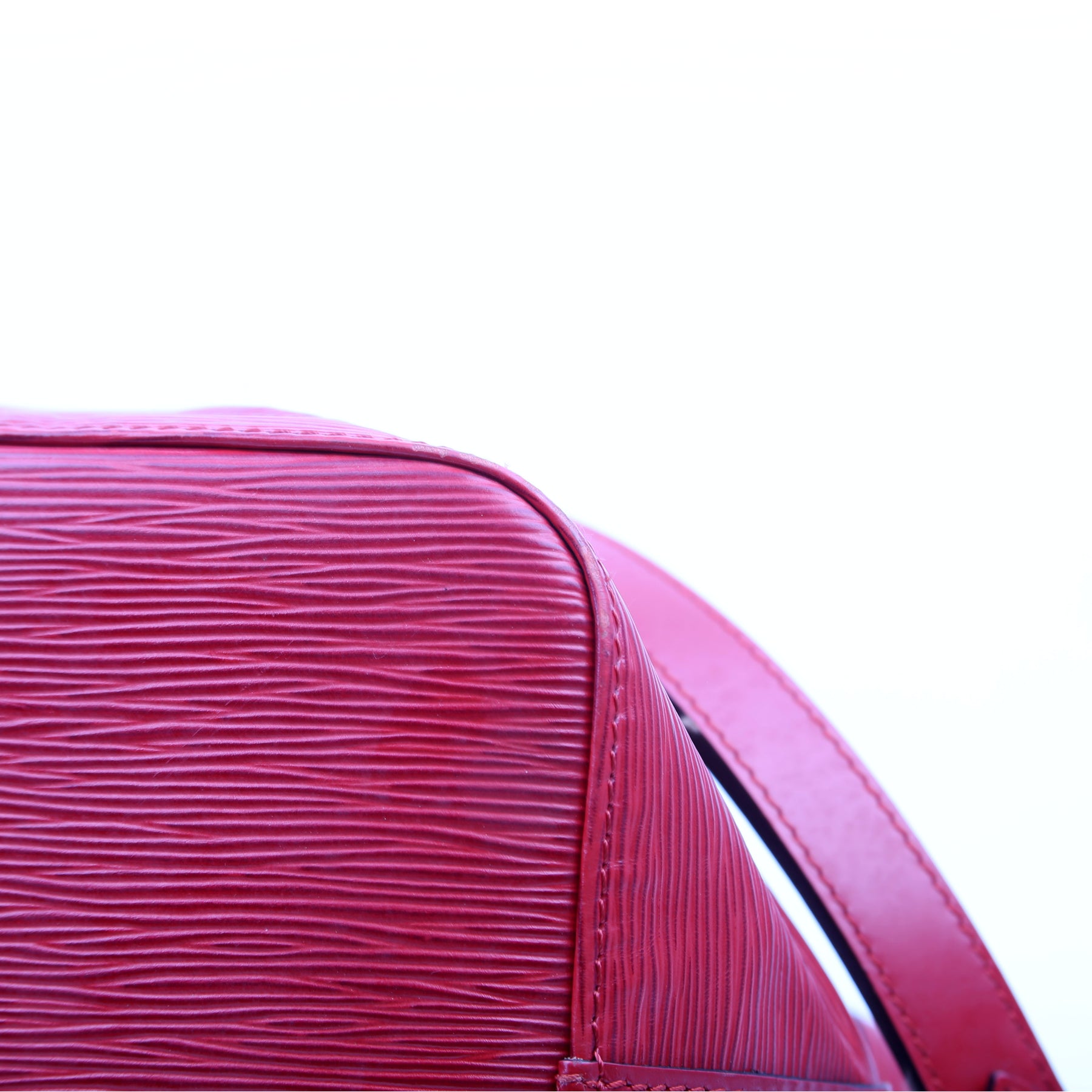 This pre-owned Louis Vuitton Noe Petit Vintage is guaranteed 100% authentic. The exterior is in the classic Louis Vuitton Epi leather.