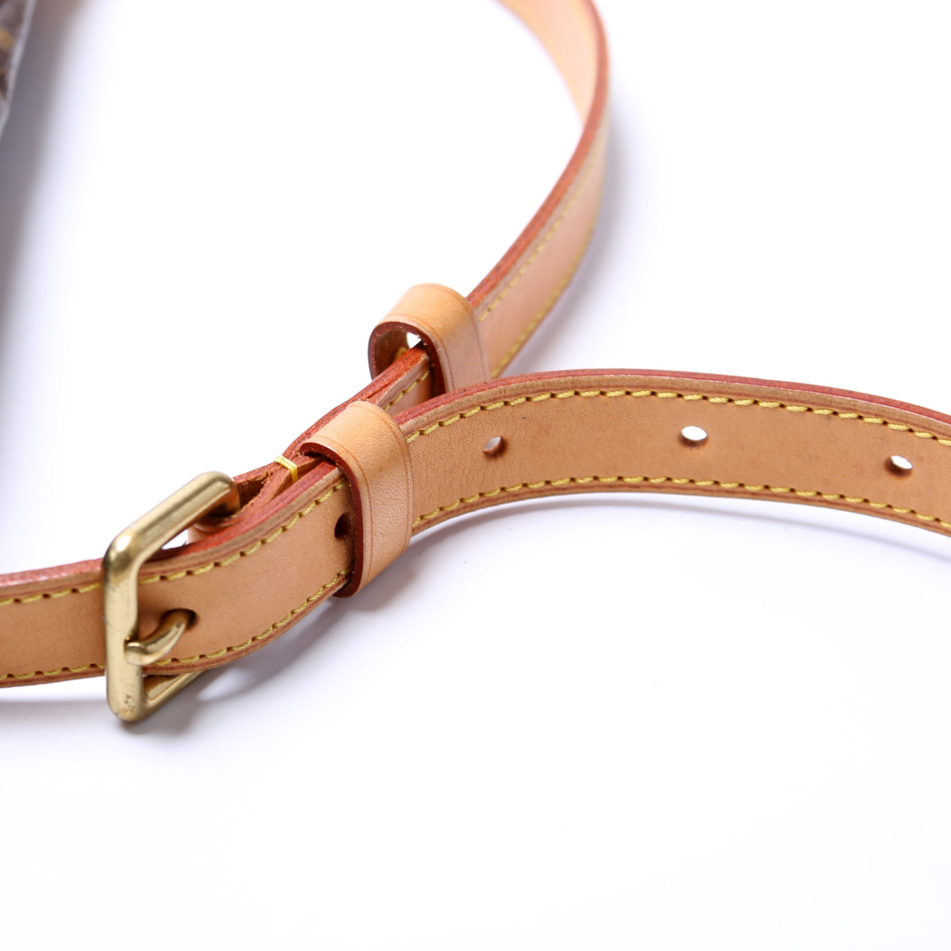 Exterior: The exterior Monogram coated canvas is free of any rips or cracks. The corners show wear and rubbing. The leather trim shows minor wear and discoloration throughout. The leather detail shows minor wear and discoloration throughout.