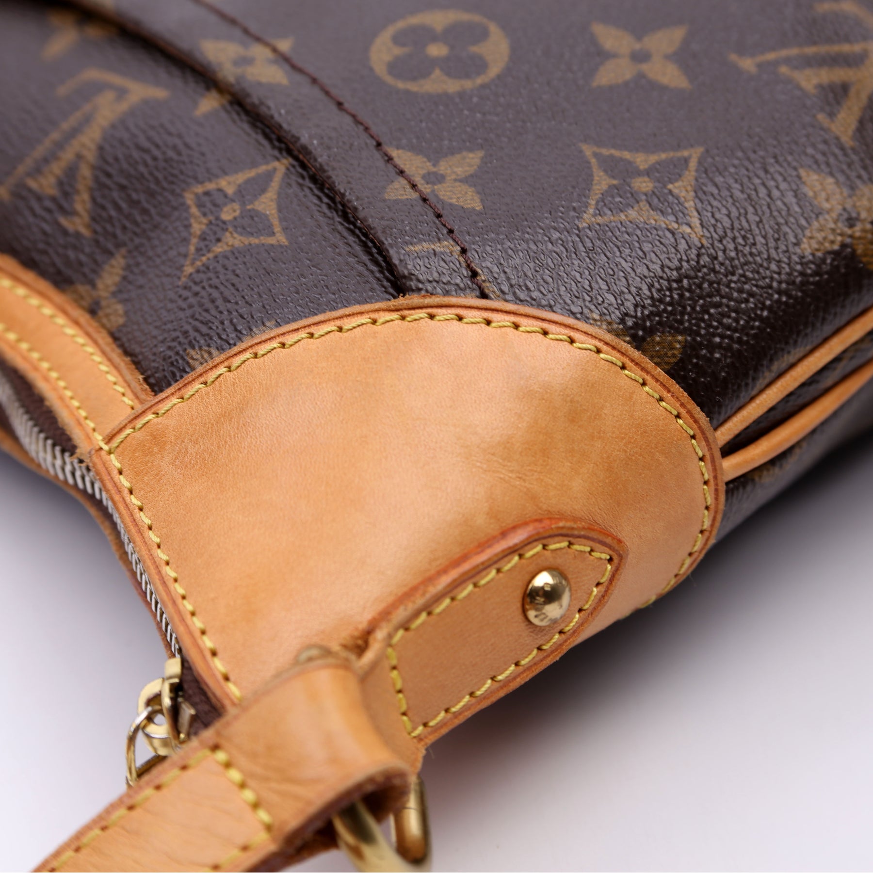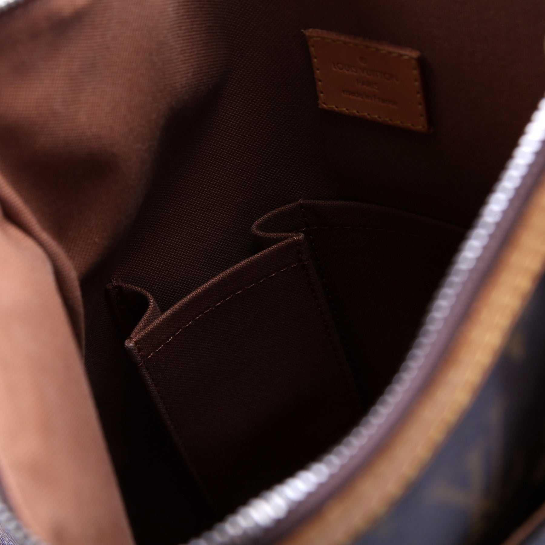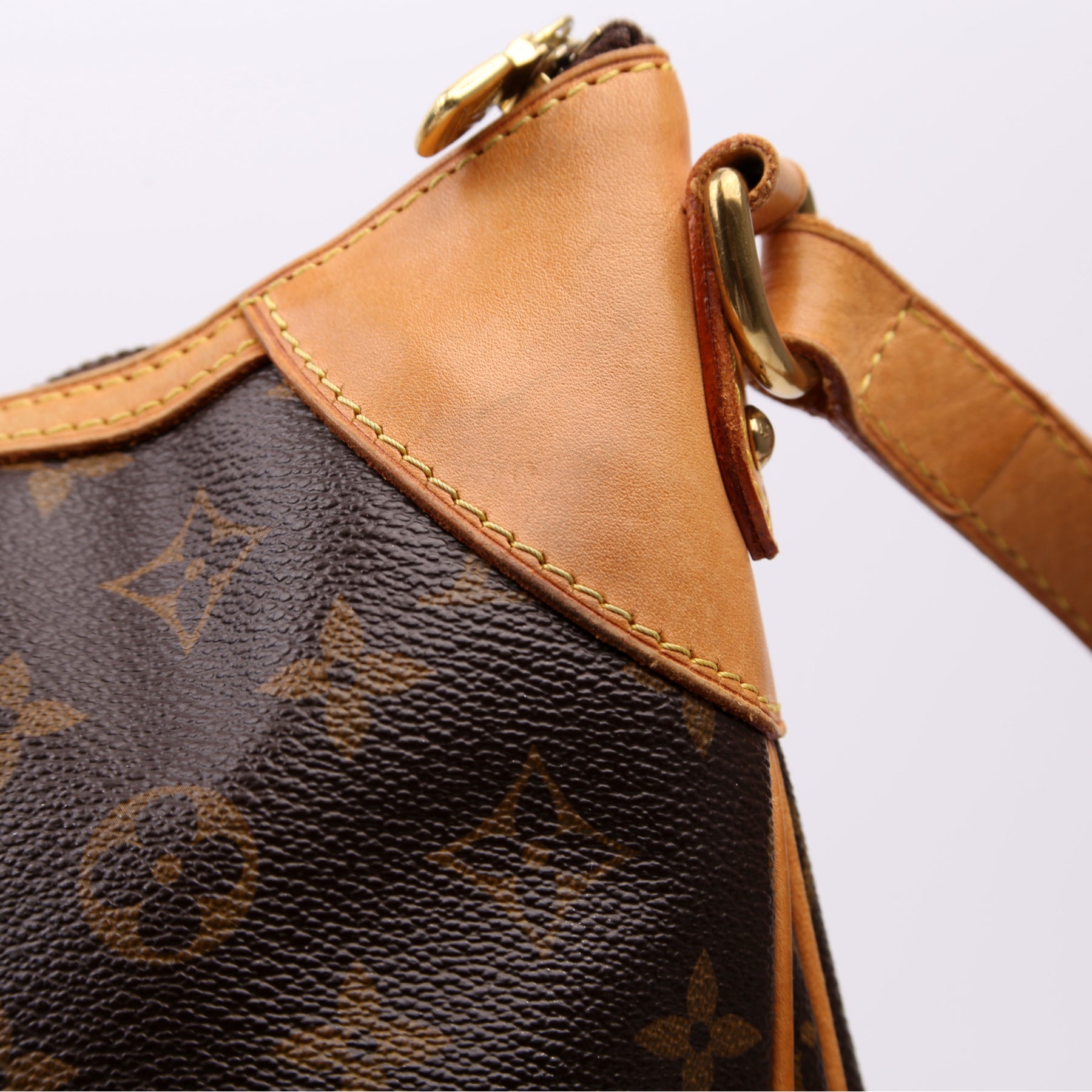 This pre-owned Louis Vuitton Odeon MM is guaranteed 100% authentic. The exterior is in the classic Louis Vuitton Monogram coated canvas.