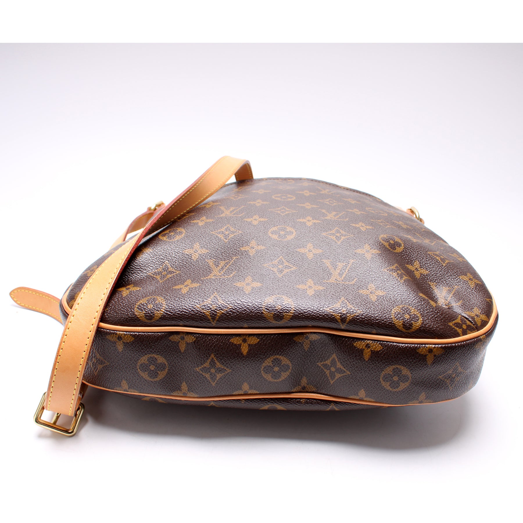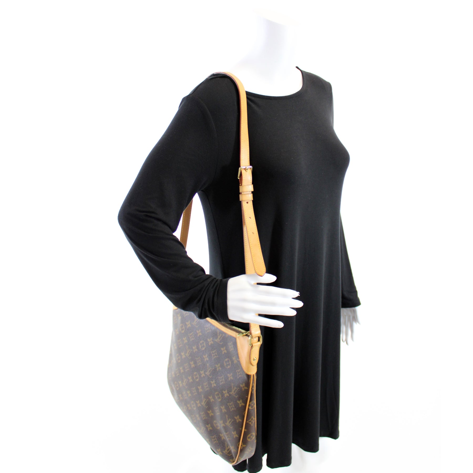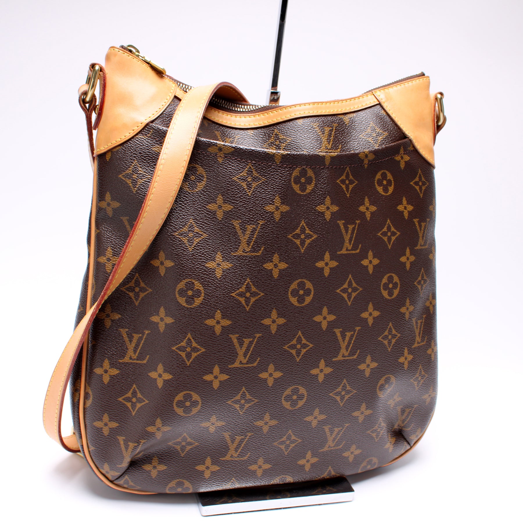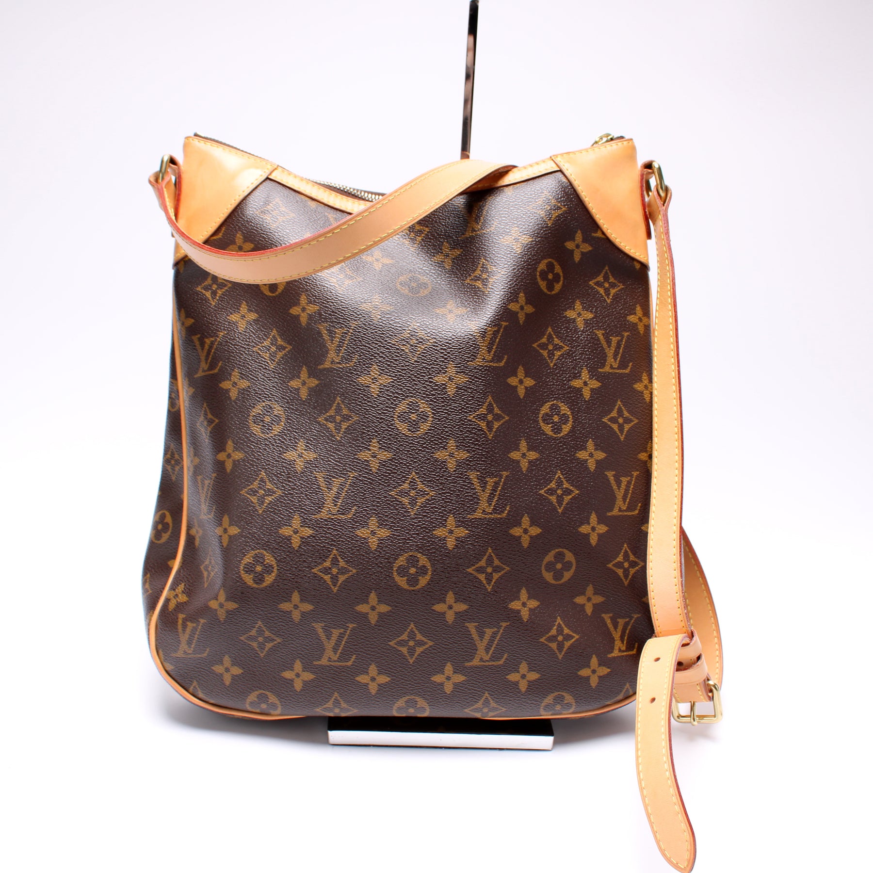 This pre-owned Louis Vuitton Odeon MM is guaranteed 100% authentic. The exterior is in the classic Louis Vuitton Monogram coated canvas.