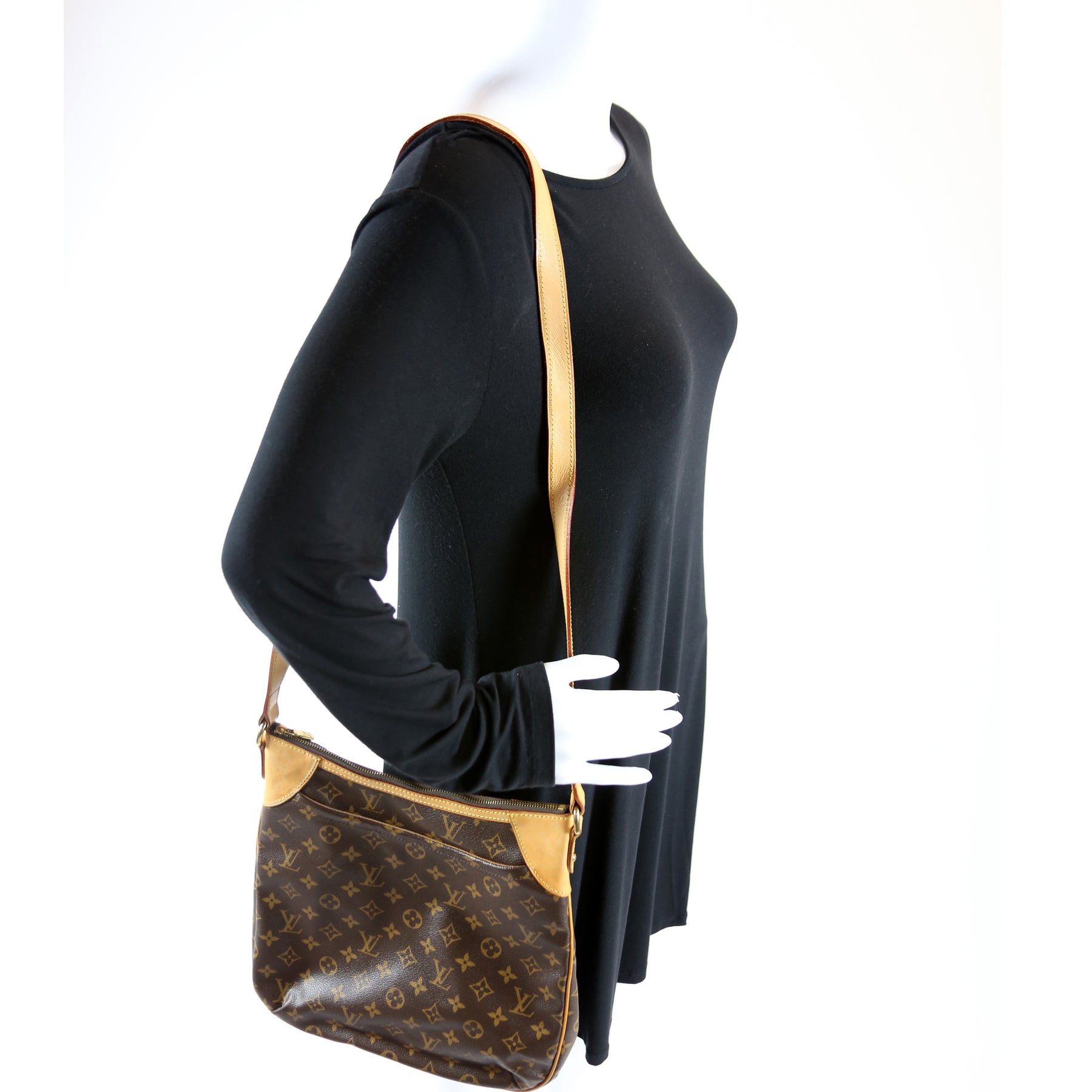This pre-owned Louis Vuitton Odeon MM is guaranteed 100% authentic. The exterior is in the classic Louis Vuitton Monogram coated canvas.