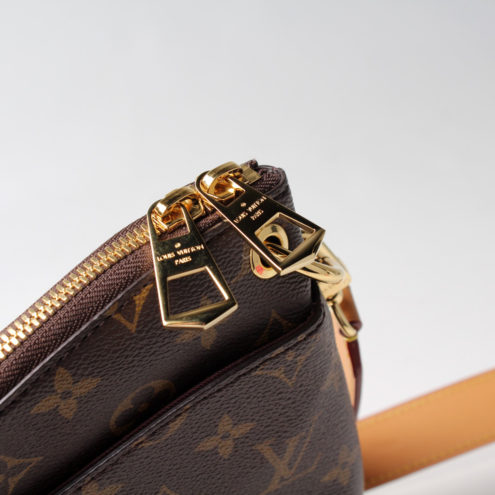 This pre-owned Louis Vuitton Odeon MM NM is guaranteed 100% authentic. The exterior is in the classic Louis Vuitton Monogram coated canvas.