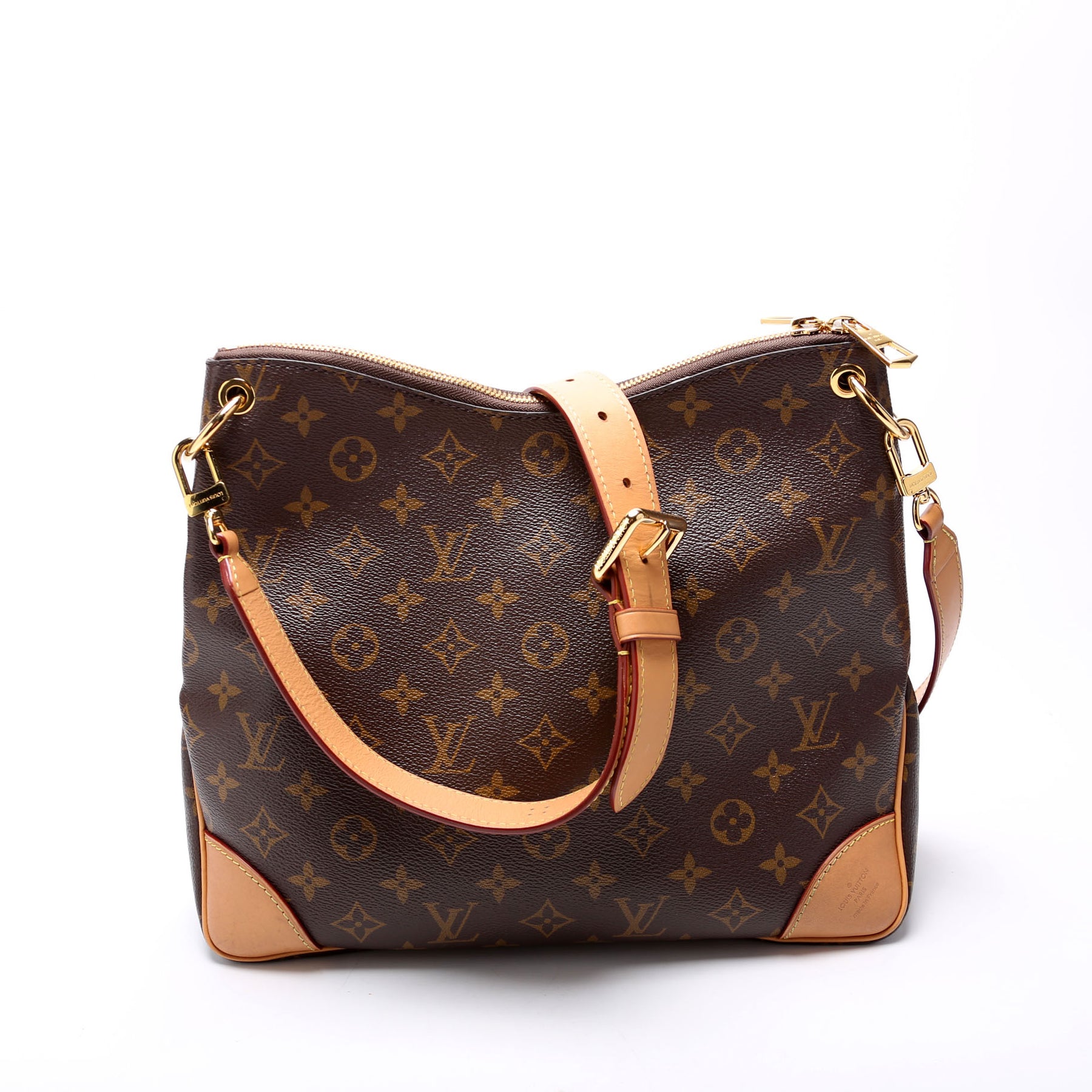 This pre-owned Louis Vuitton Odeon MM NM is guaranteed 100% authentic. The exterior is in the classic Louis Vuitton Monogram coated canvas.