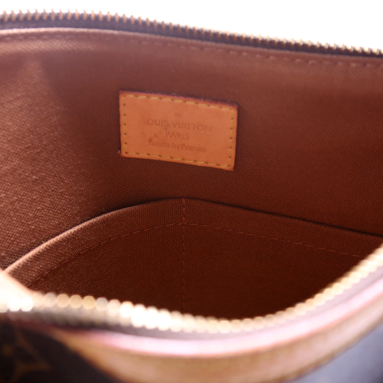 This pre-owned Louis Vuitton Odeon PM is guaranteed 100% authentic. The exterior is in the classic Louis Vuitton Monogram coated canvas.
