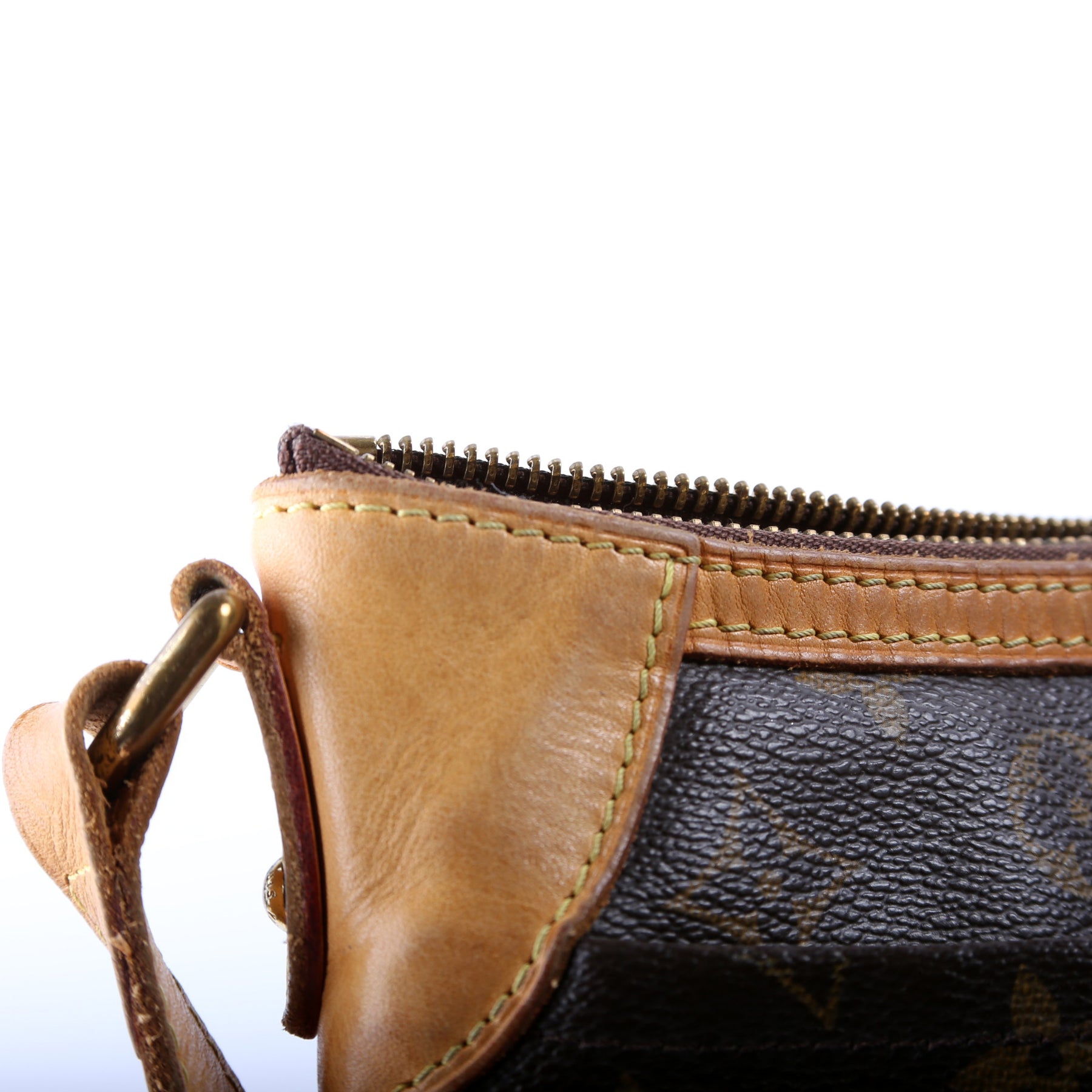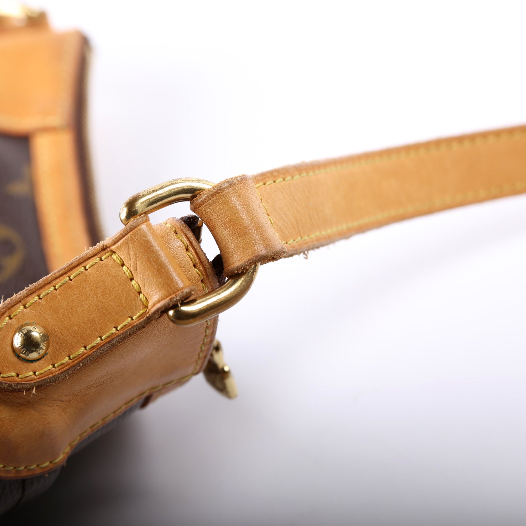 Strap: The shoulder strap has discoloration and wear throughout.