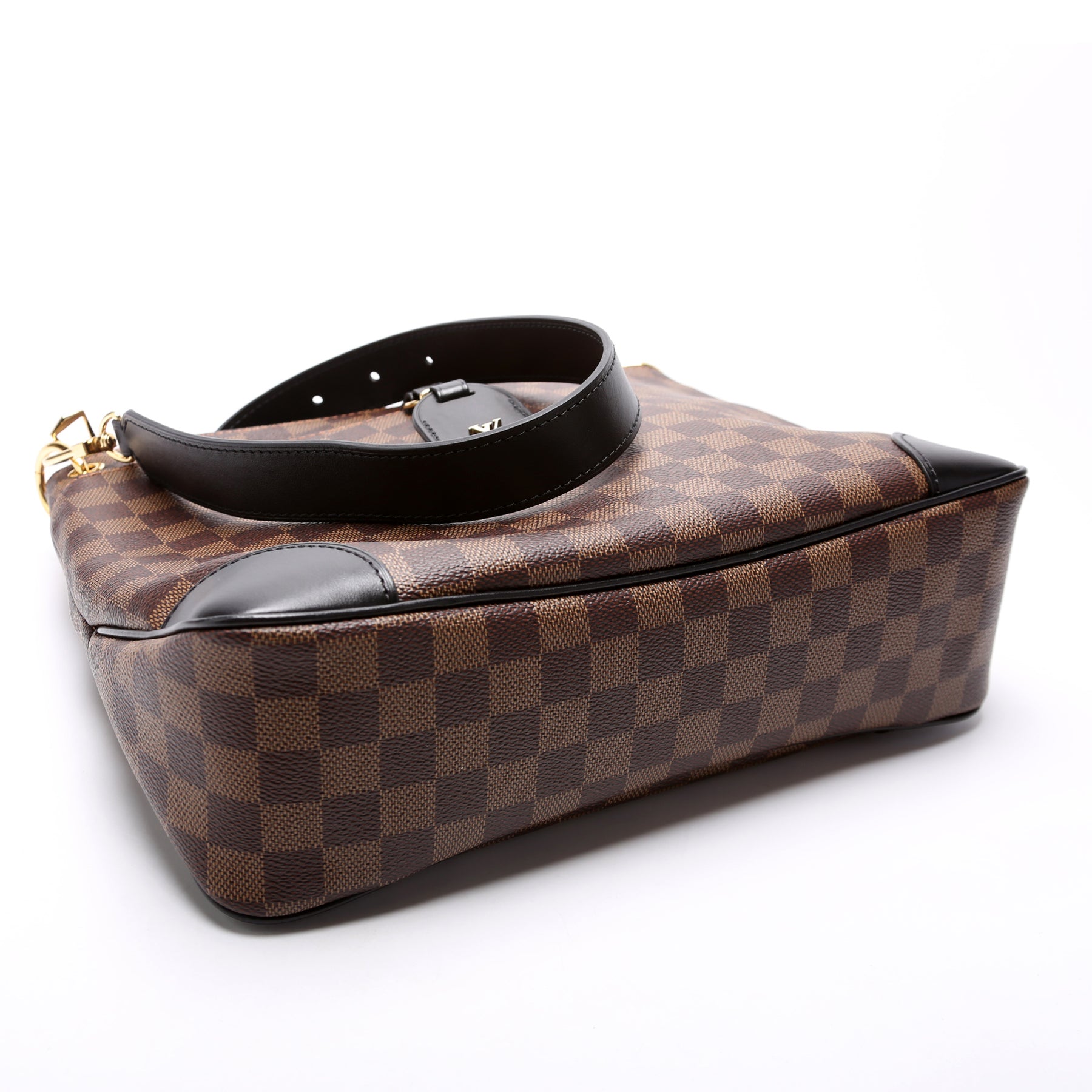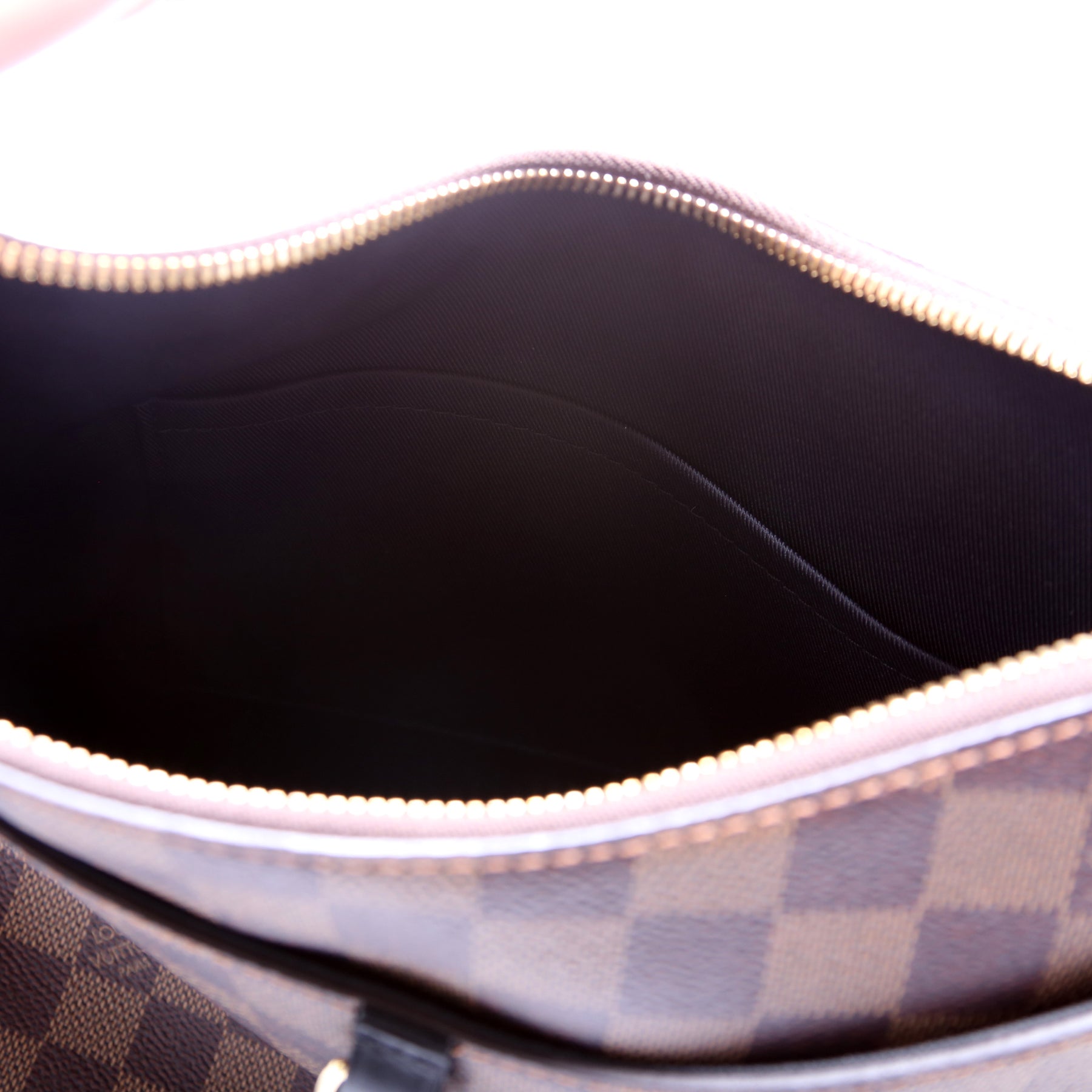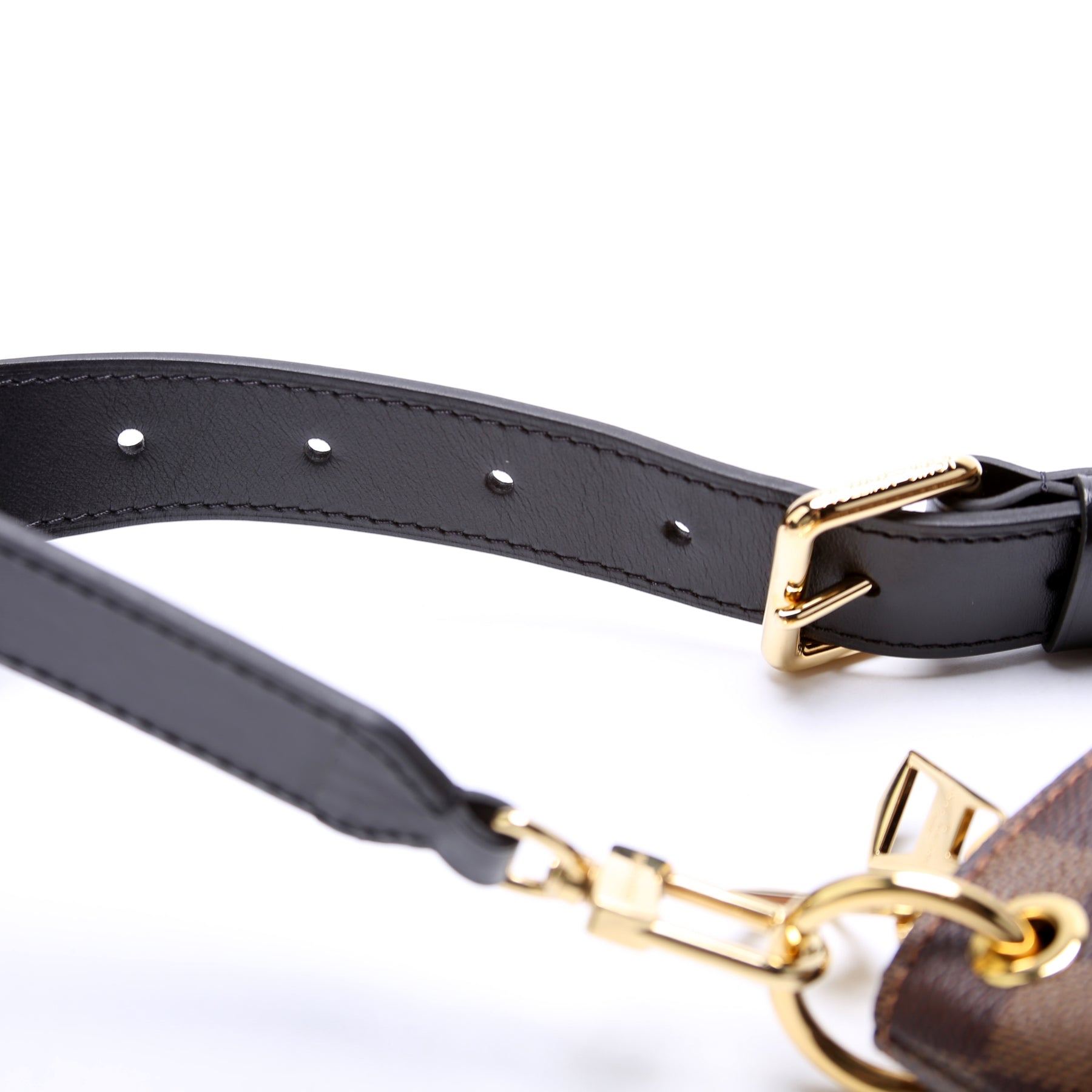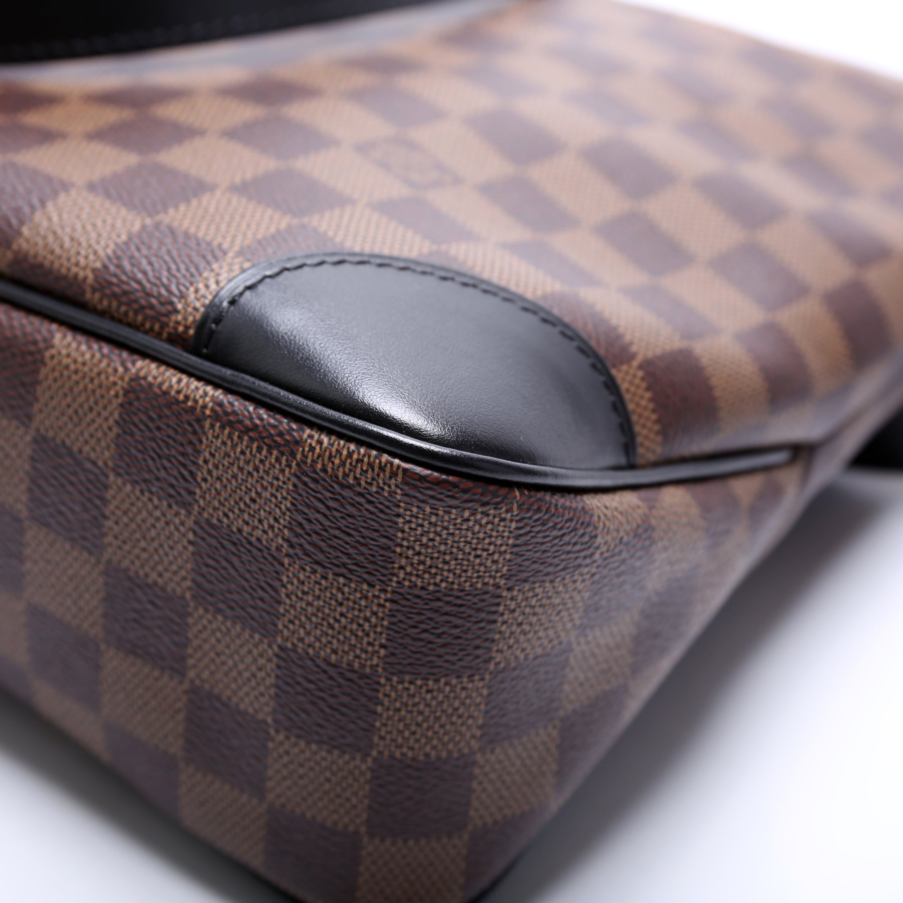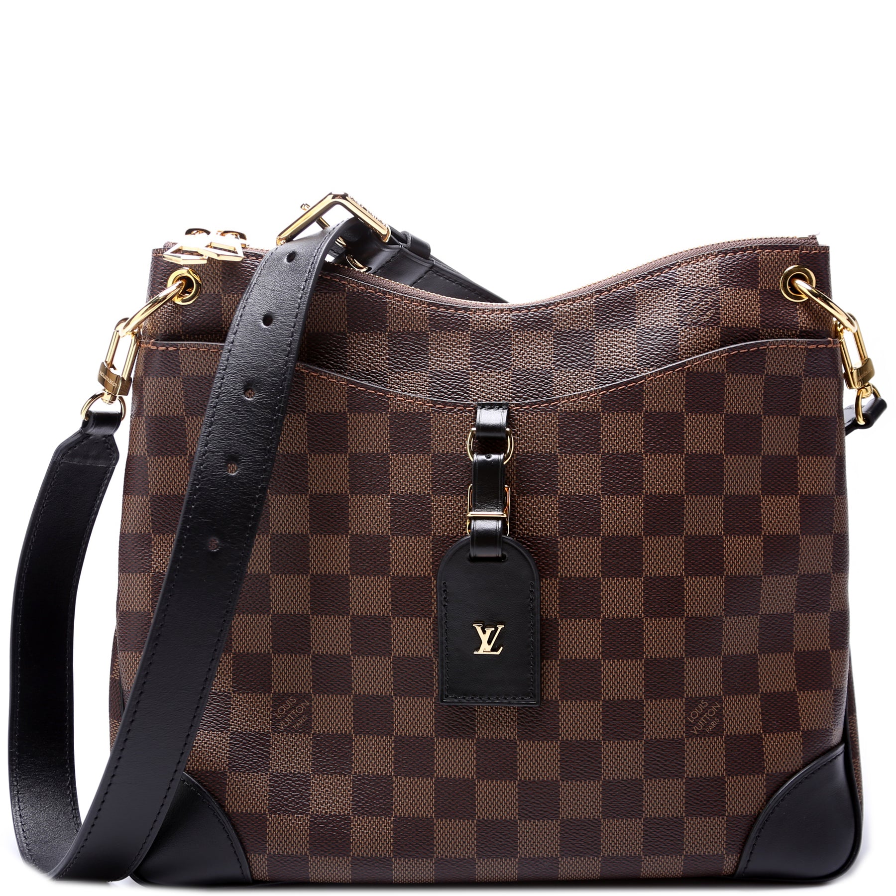 This pre-owned Louis Vuitton Odeon PM NM is guaranteed 100% authentic. The exterior is in the classic Louis Vuitton Damier Ebene coated canvas.