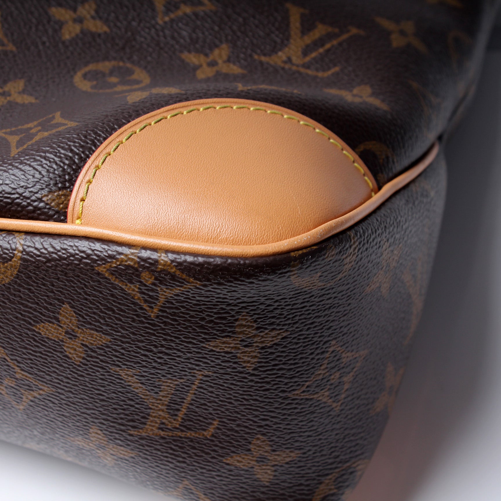 Exterior: The exterior Monogram coated canvas is free of any rips or cracks. The exterior features one open pocket.