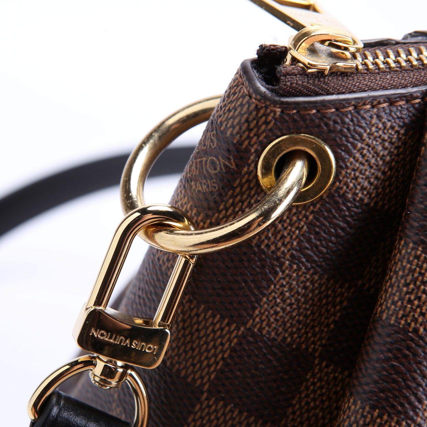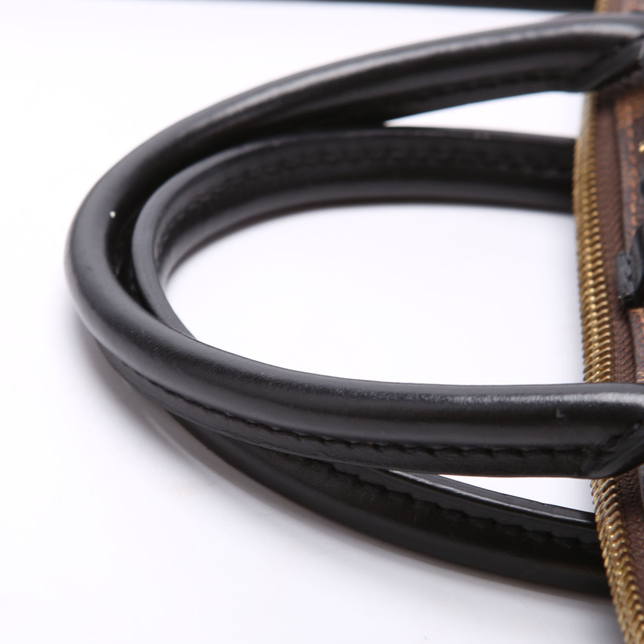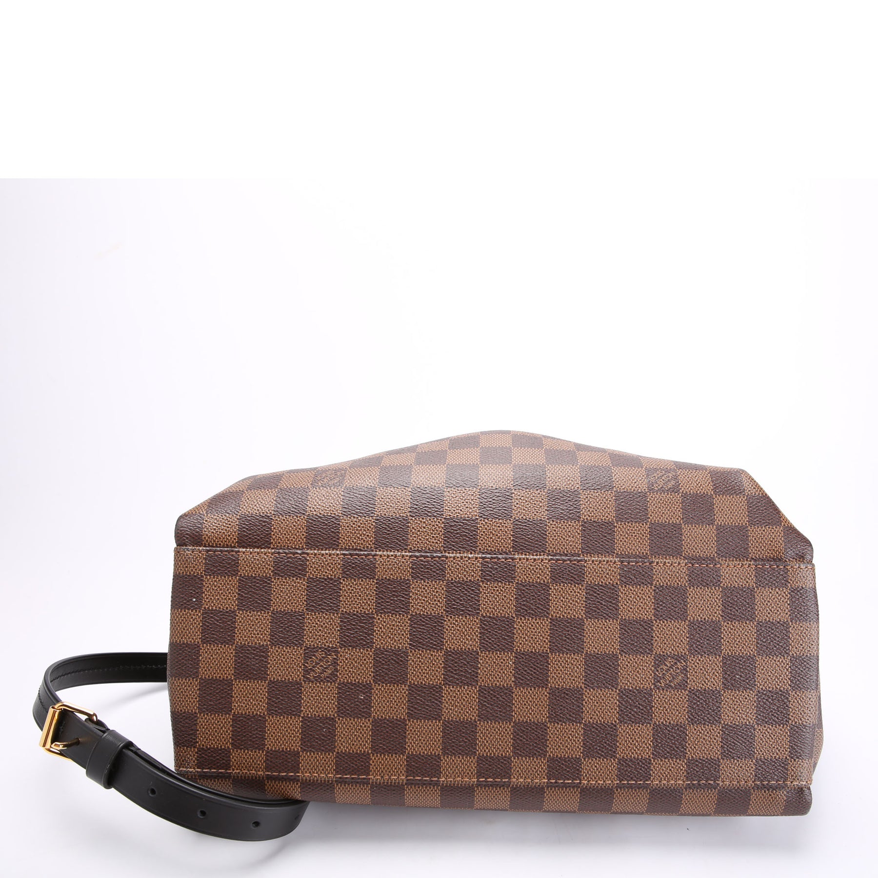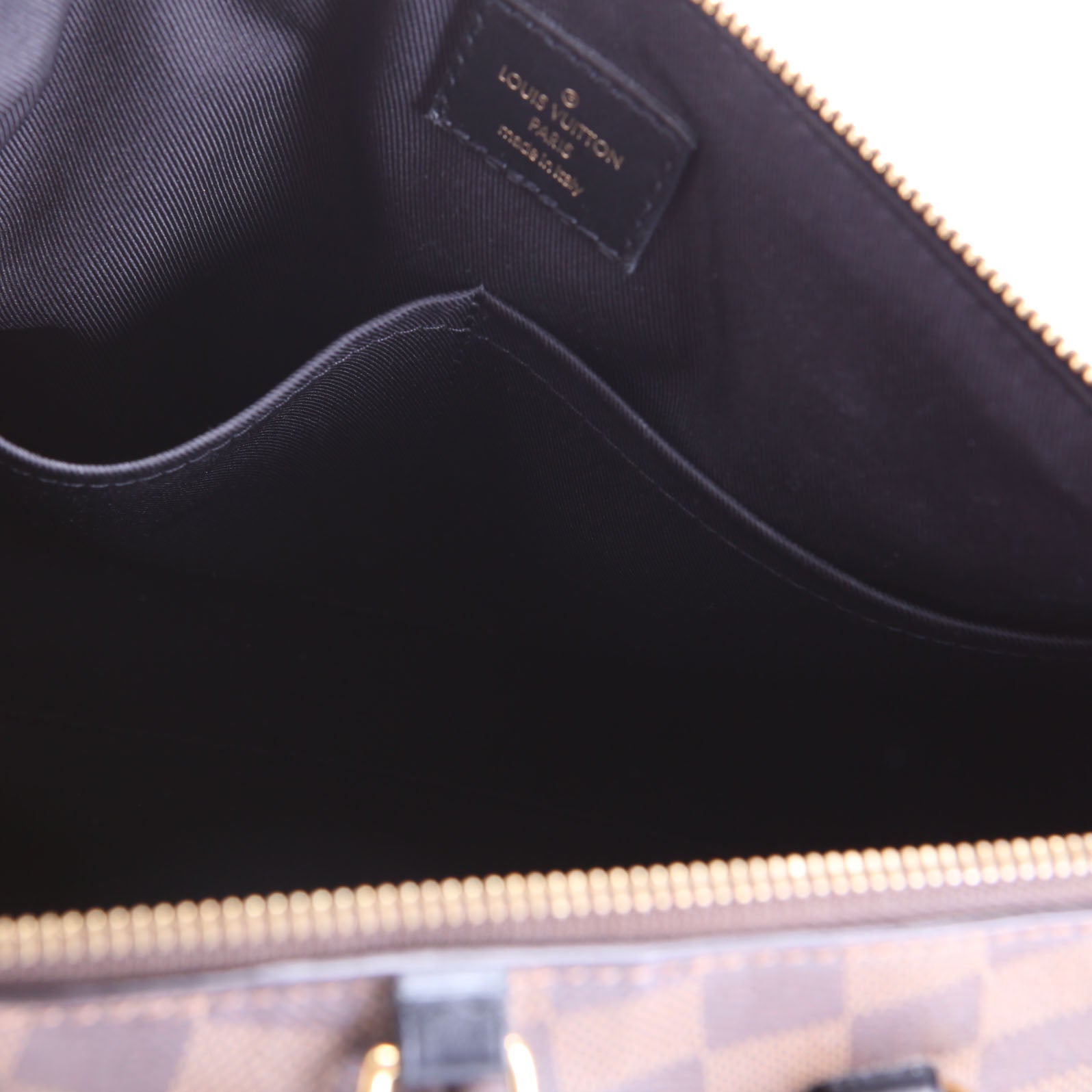 This pre-owned Louis Vuitton Odeon Tote MM is guaranteed 100% authentic. The exterior is in the classic Louis Vuitton Damier Ebene coated canvas.