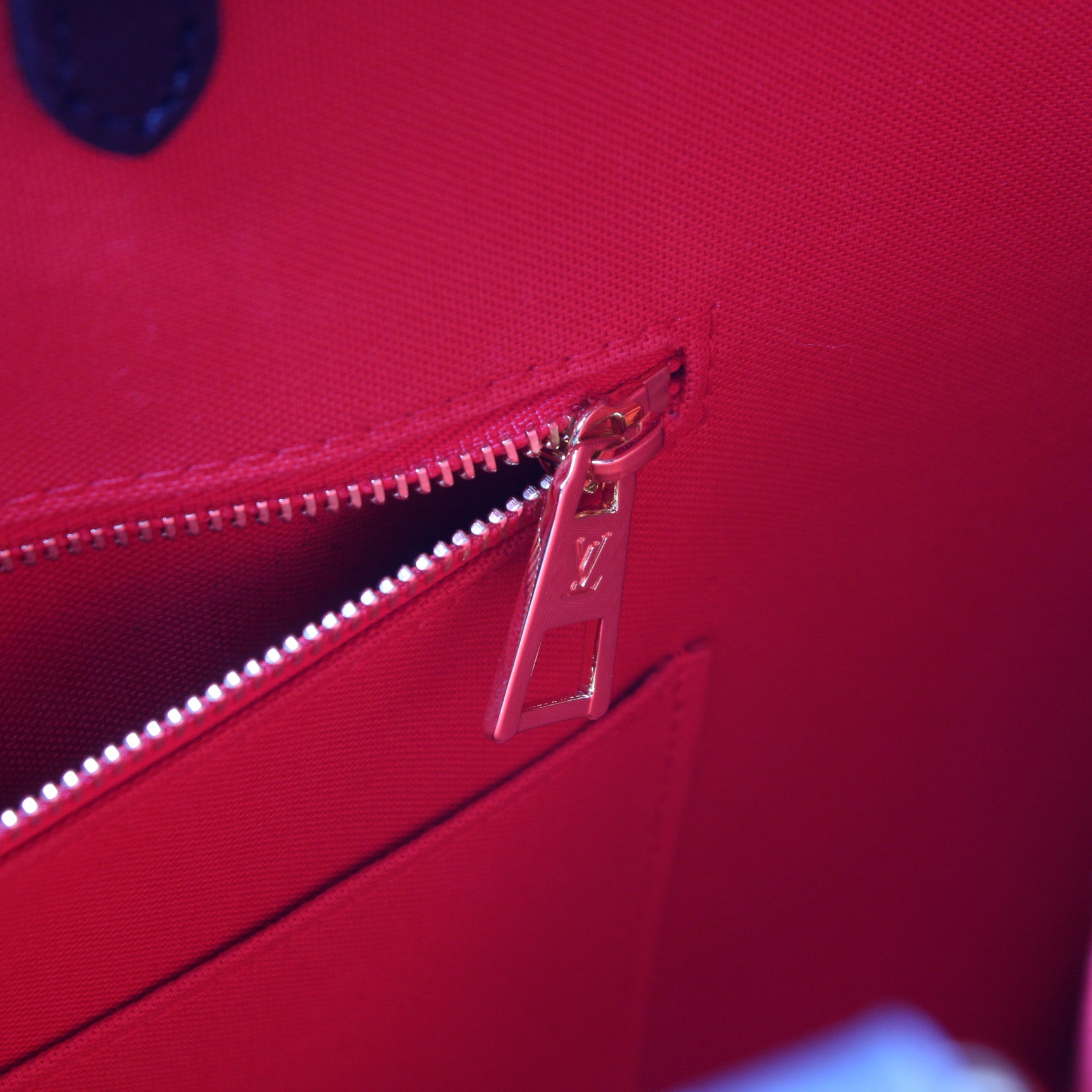 This pre-owned Louis Vuitton ONTHEGO is guaranteed 100% authentic. The exterior is in the classic Louis Vuitton Giant Monogram coated canvas.