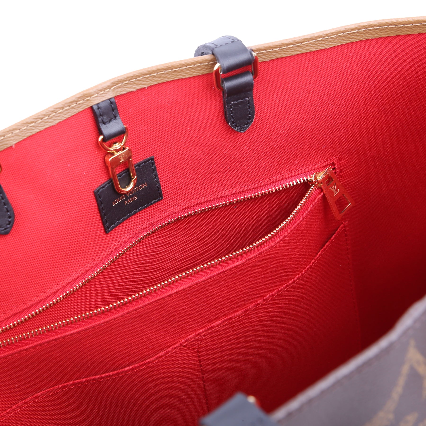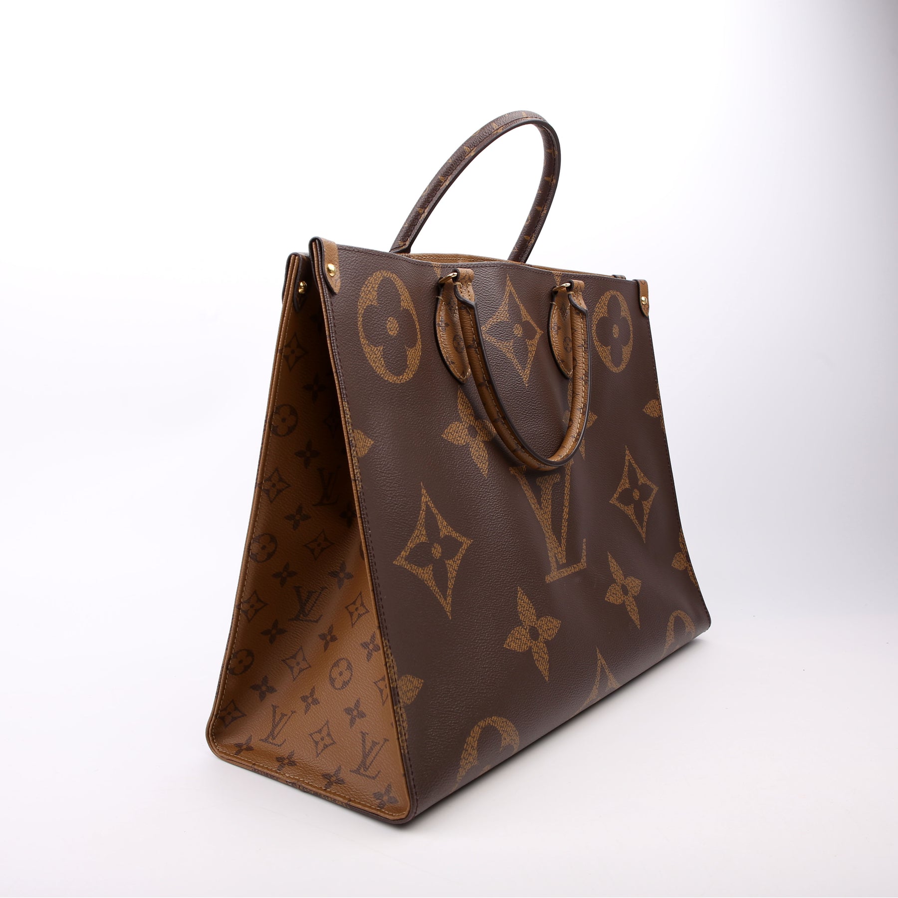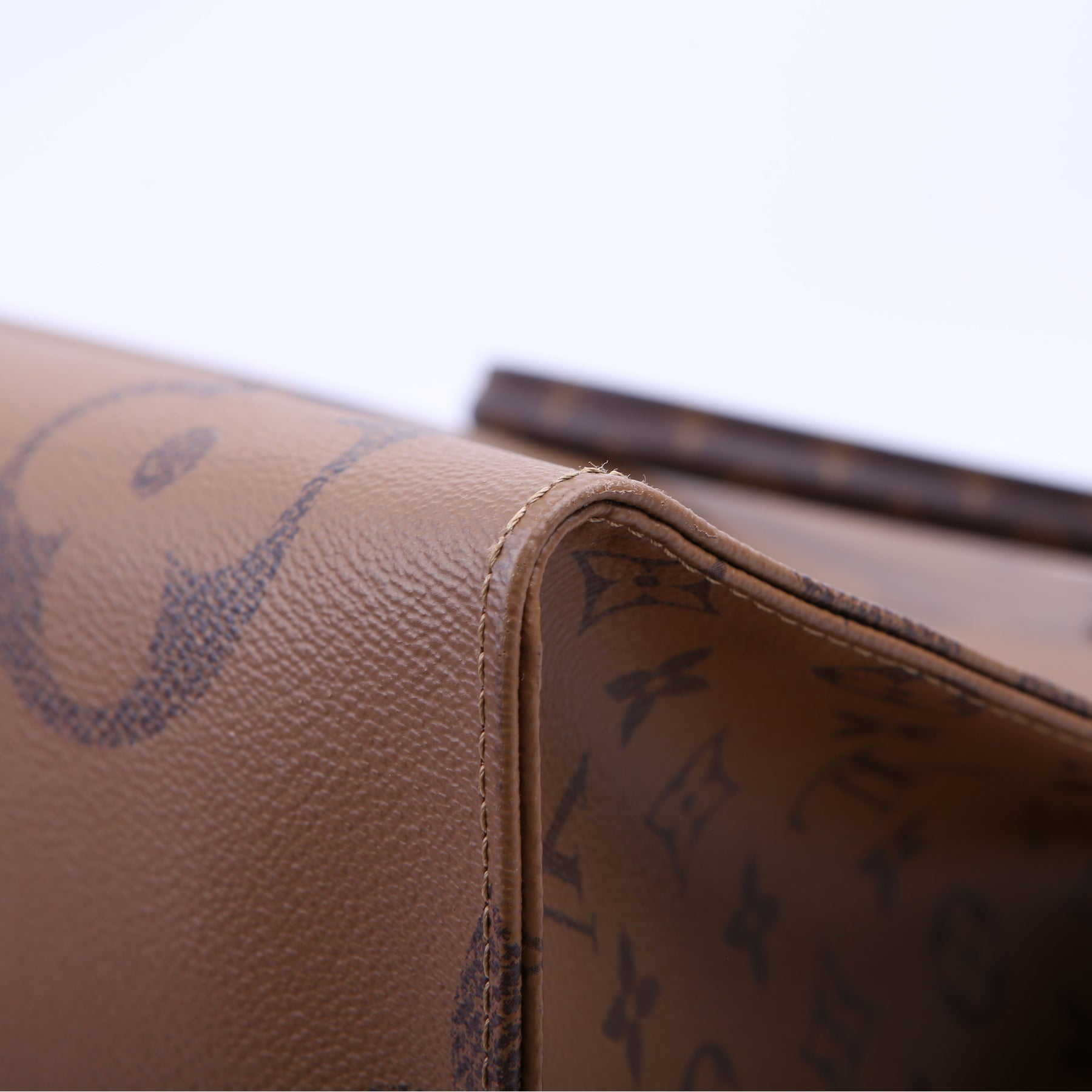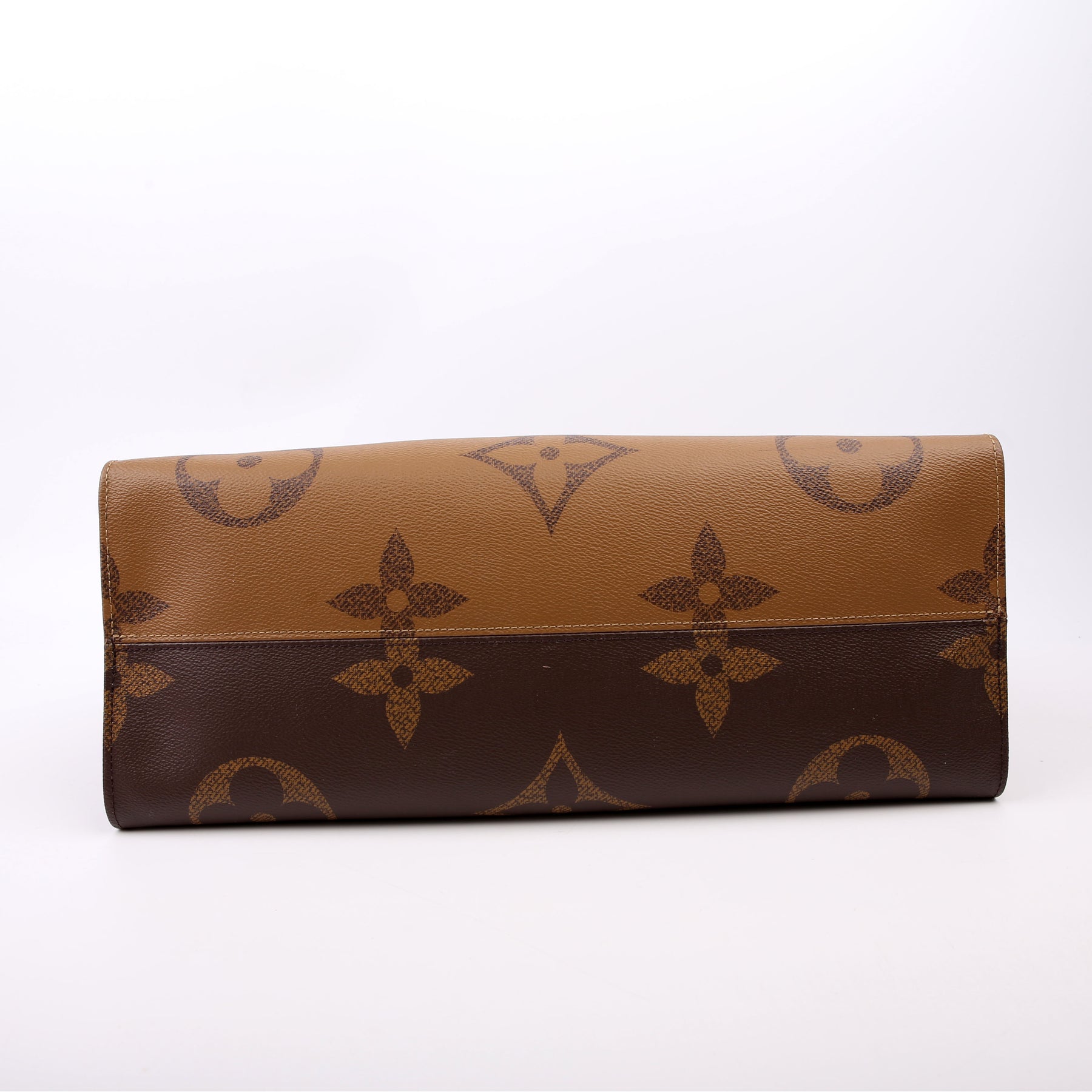 This pre-owned Louis Vuitton ONTHEGO MM is guaranteed 100% authentic. The exterior is in the classic Louis Vuitton Reverse Monogram coated canvas.