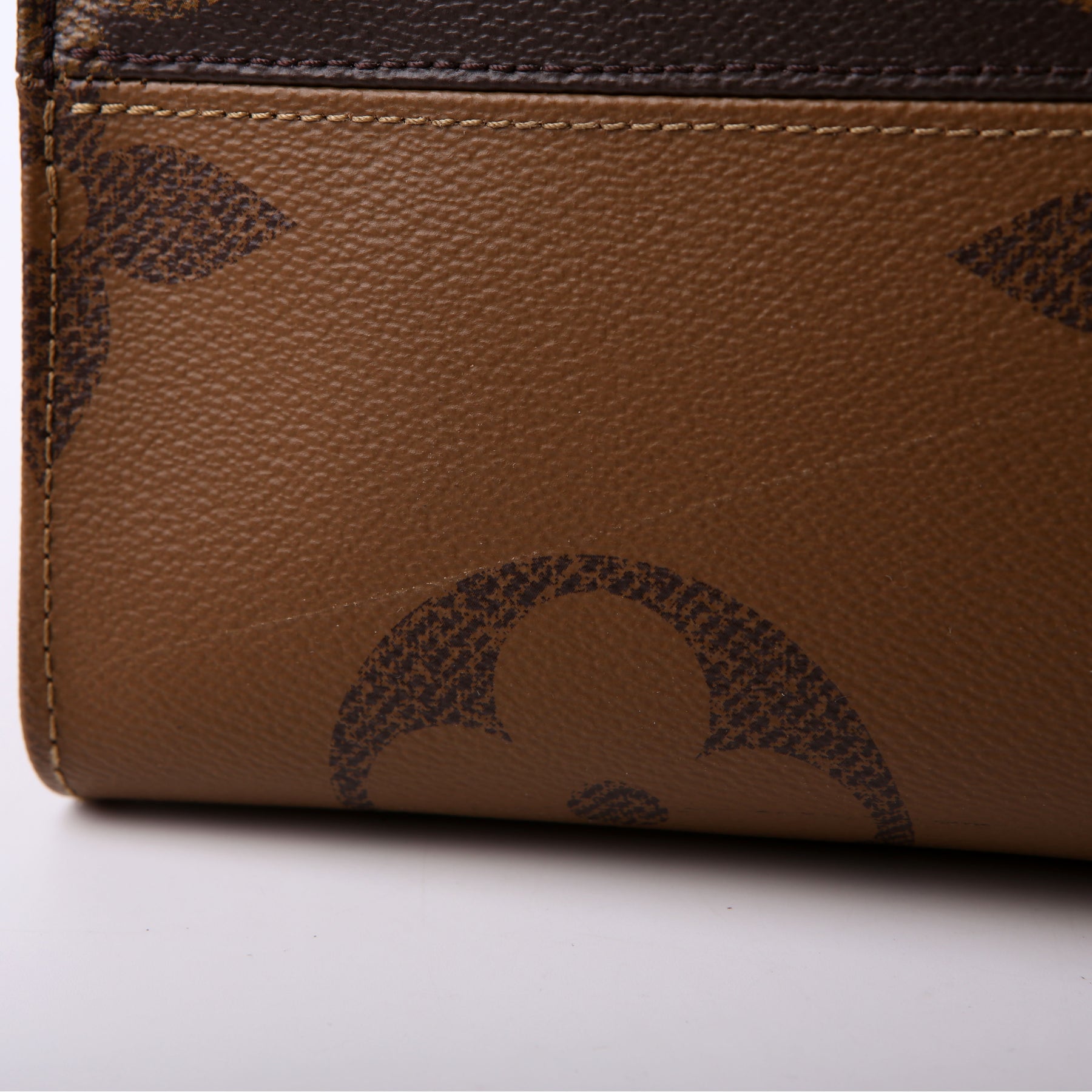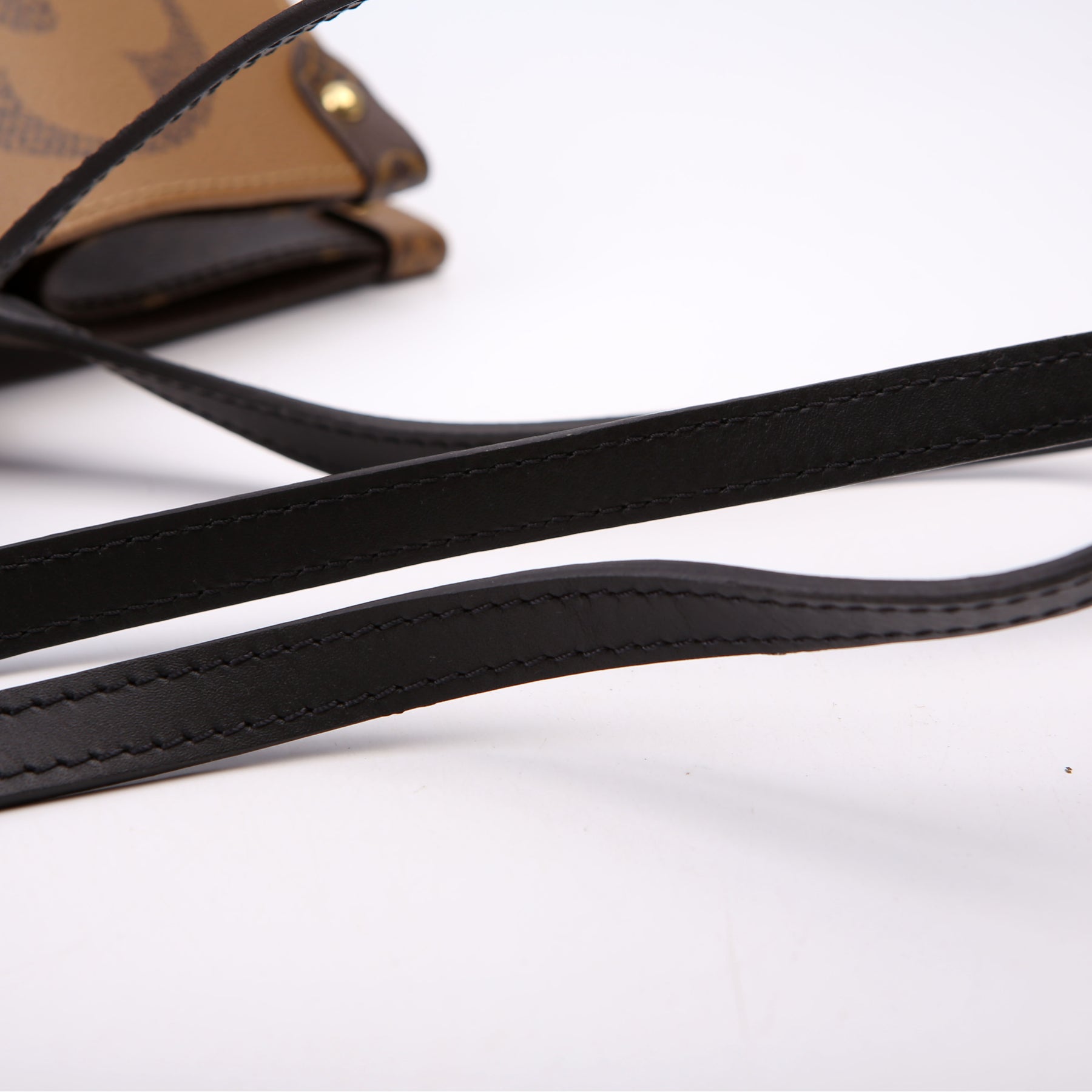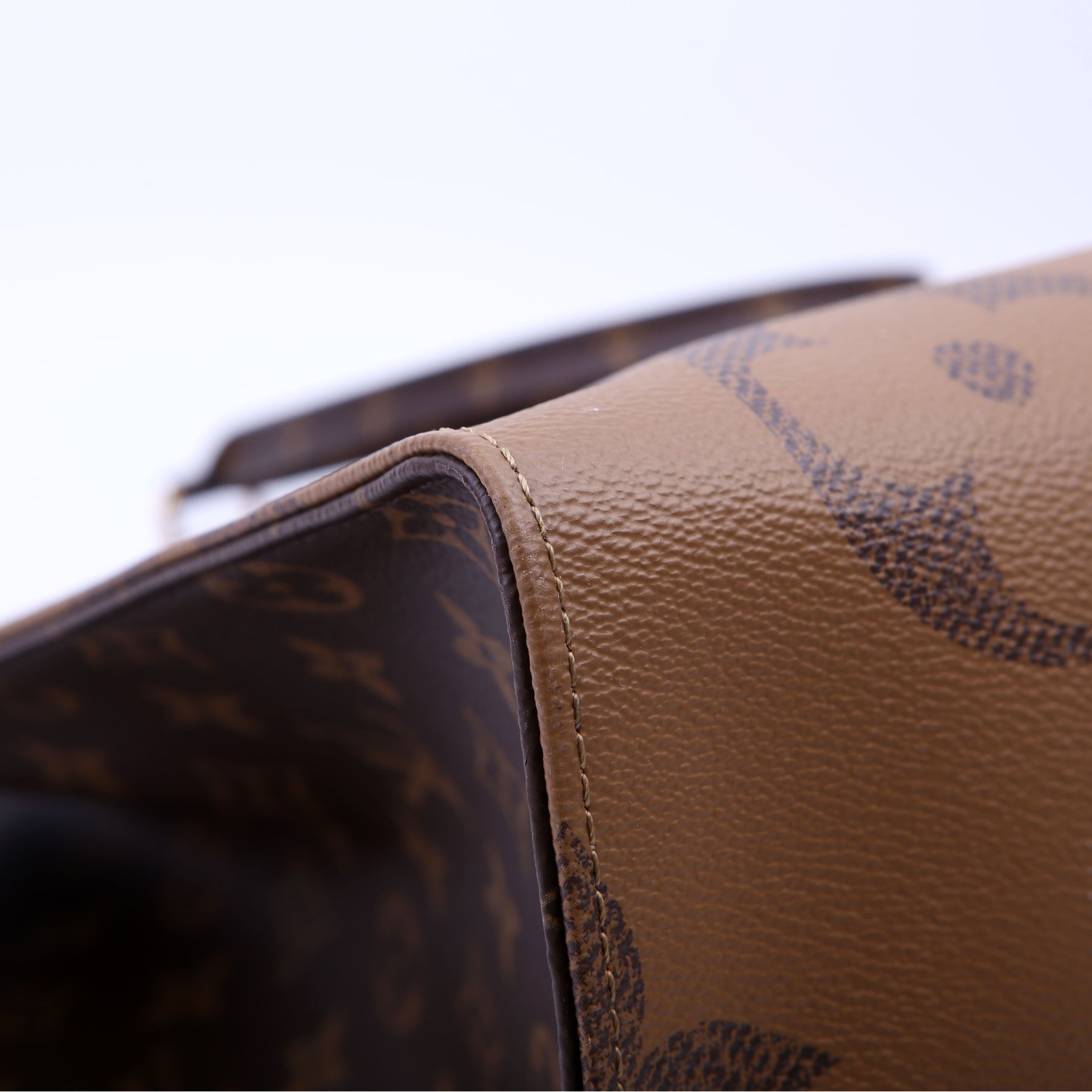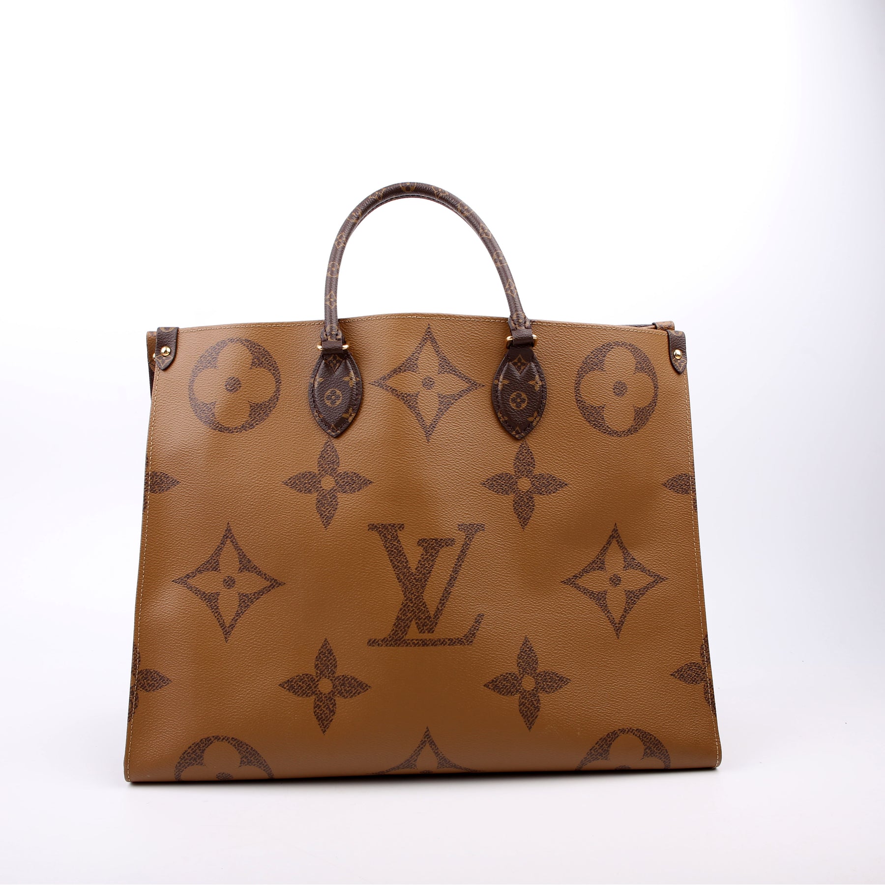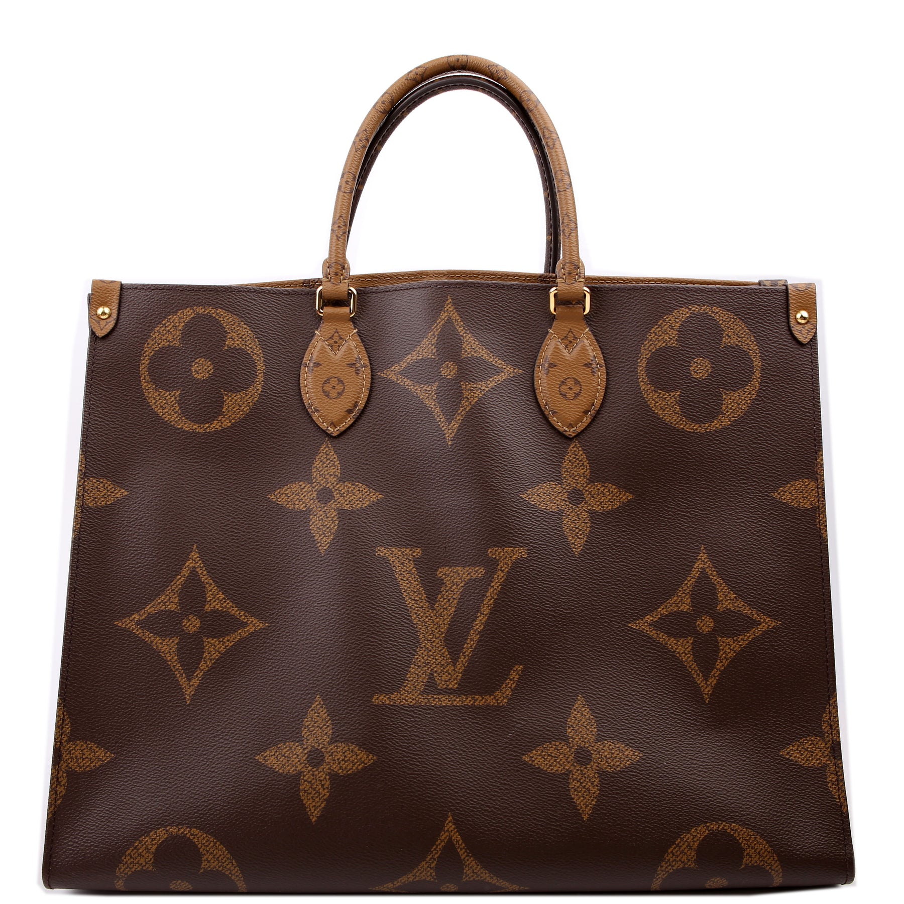 This pre-owned Louis Vuitton ONTHEGO MM is guaranteed 100% authentic. The exterior is in the classic Louis Vuitton Reverse Monogram coated canvas.