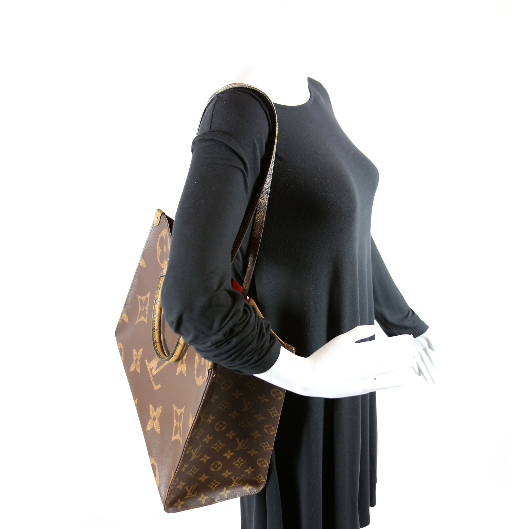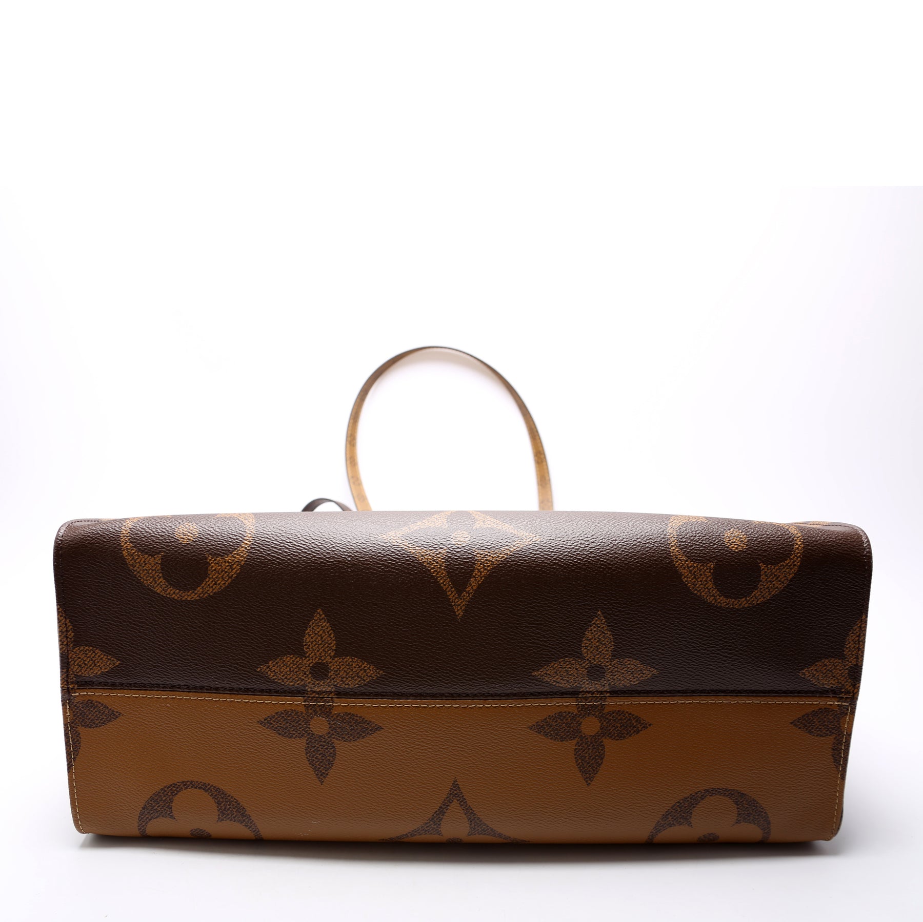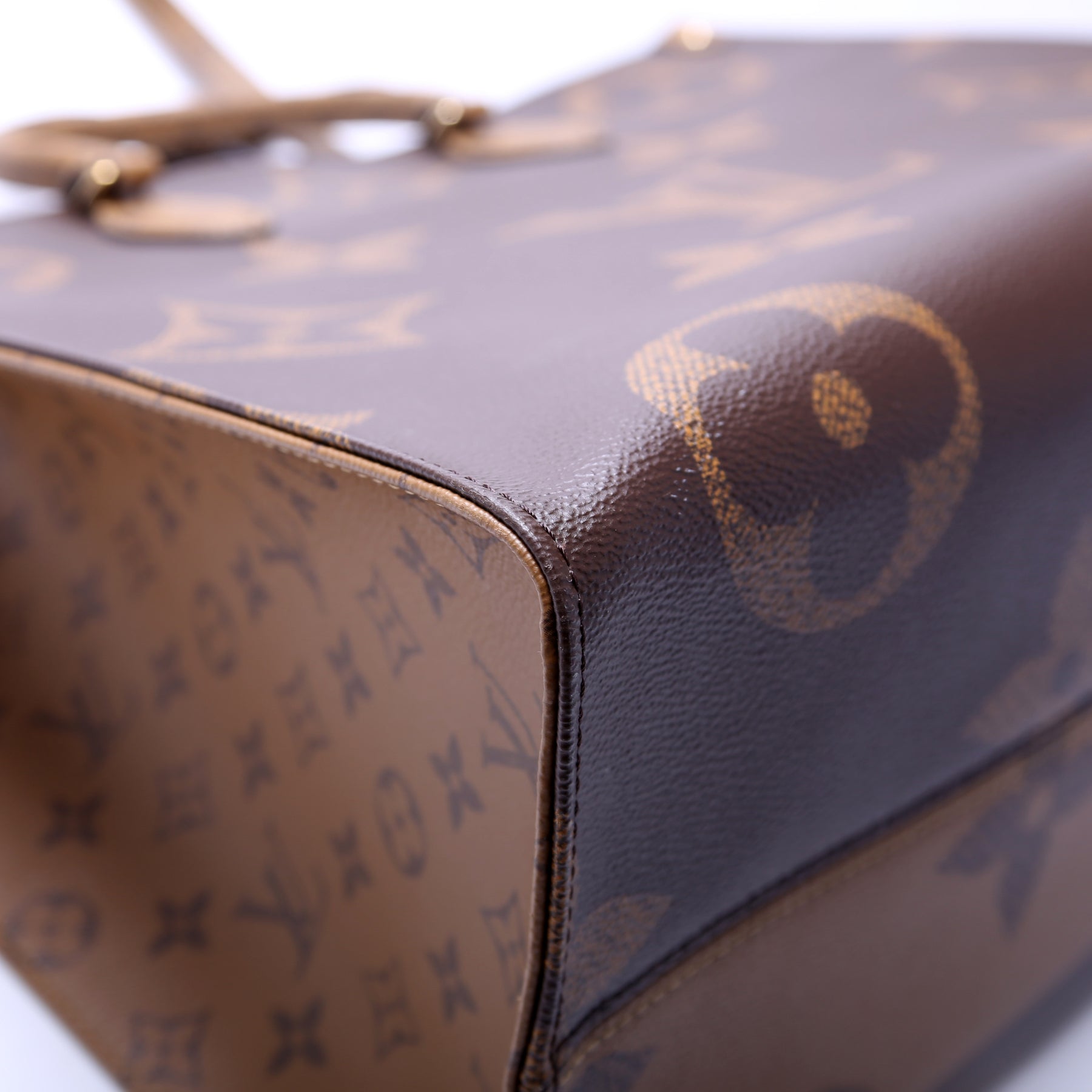 This pre-owned Louis Vuitton ONTHEGO GM is guaranteed 100% authentic. The exterior is in the classic Louis Vuitton Reverse Monogram coated canvas.