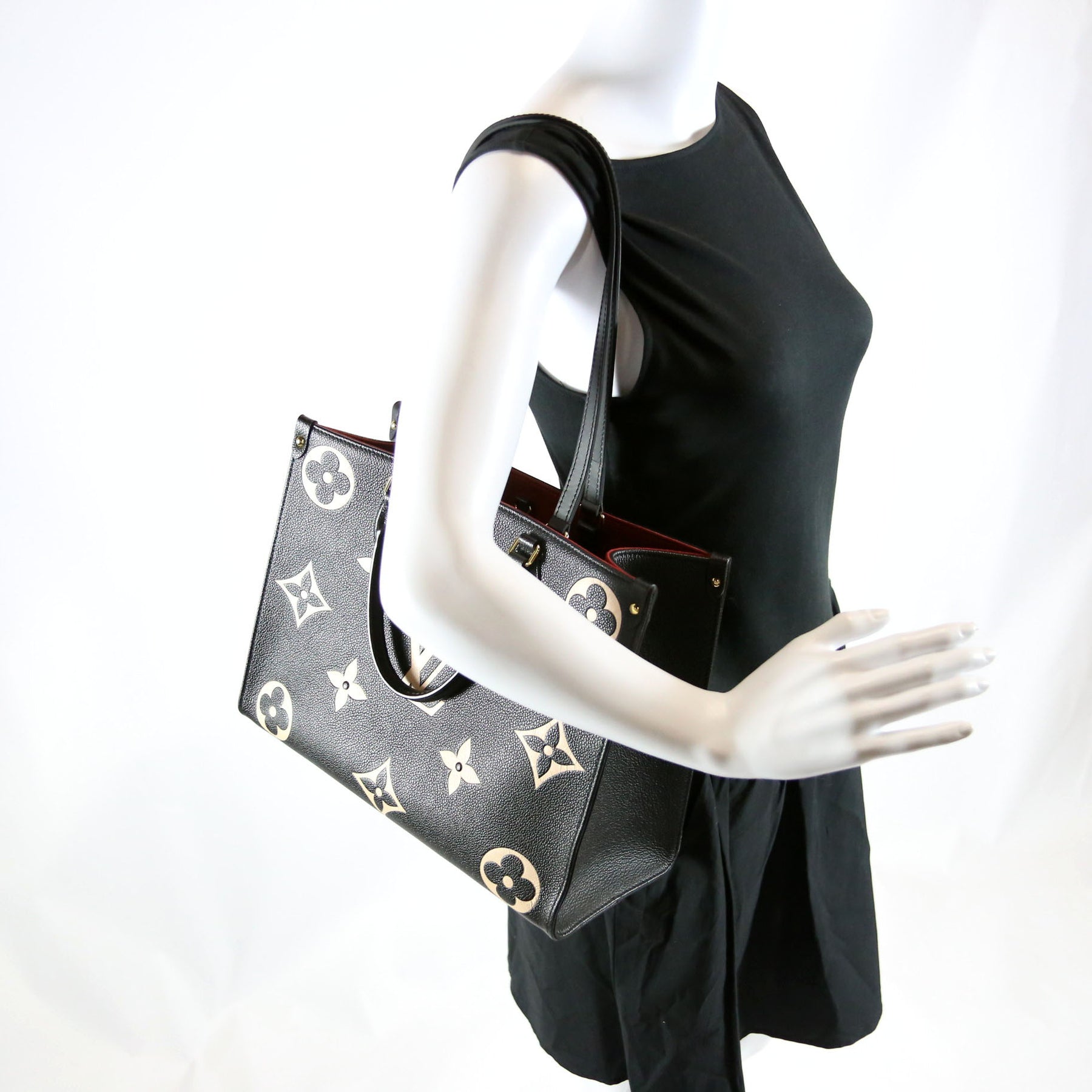 This pre-owned Louis Vuitton ONTHEGO MM Bicolor is guaranteed 100% authentic. The exterior is in the classic Louis Vuitton Emprainte Leather
