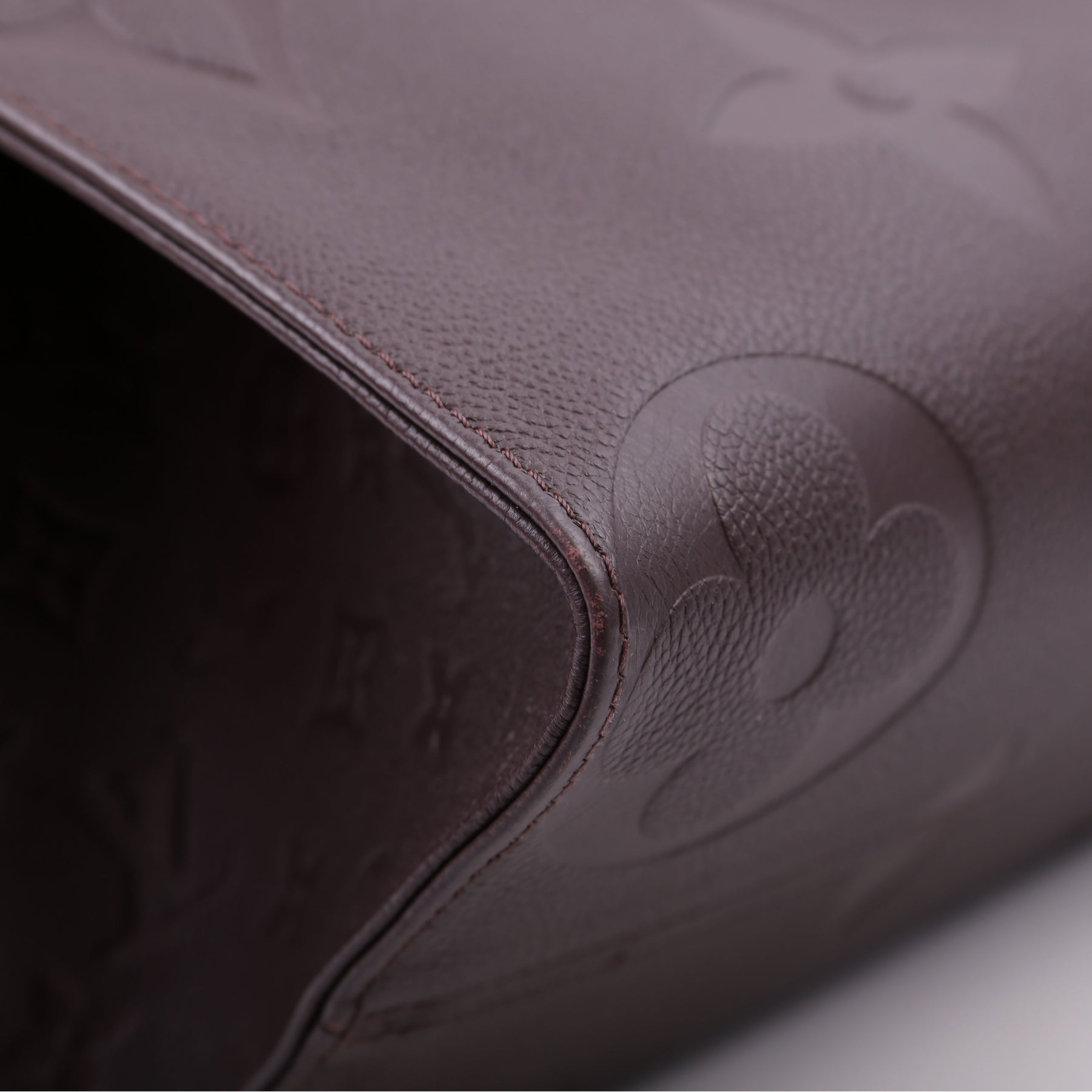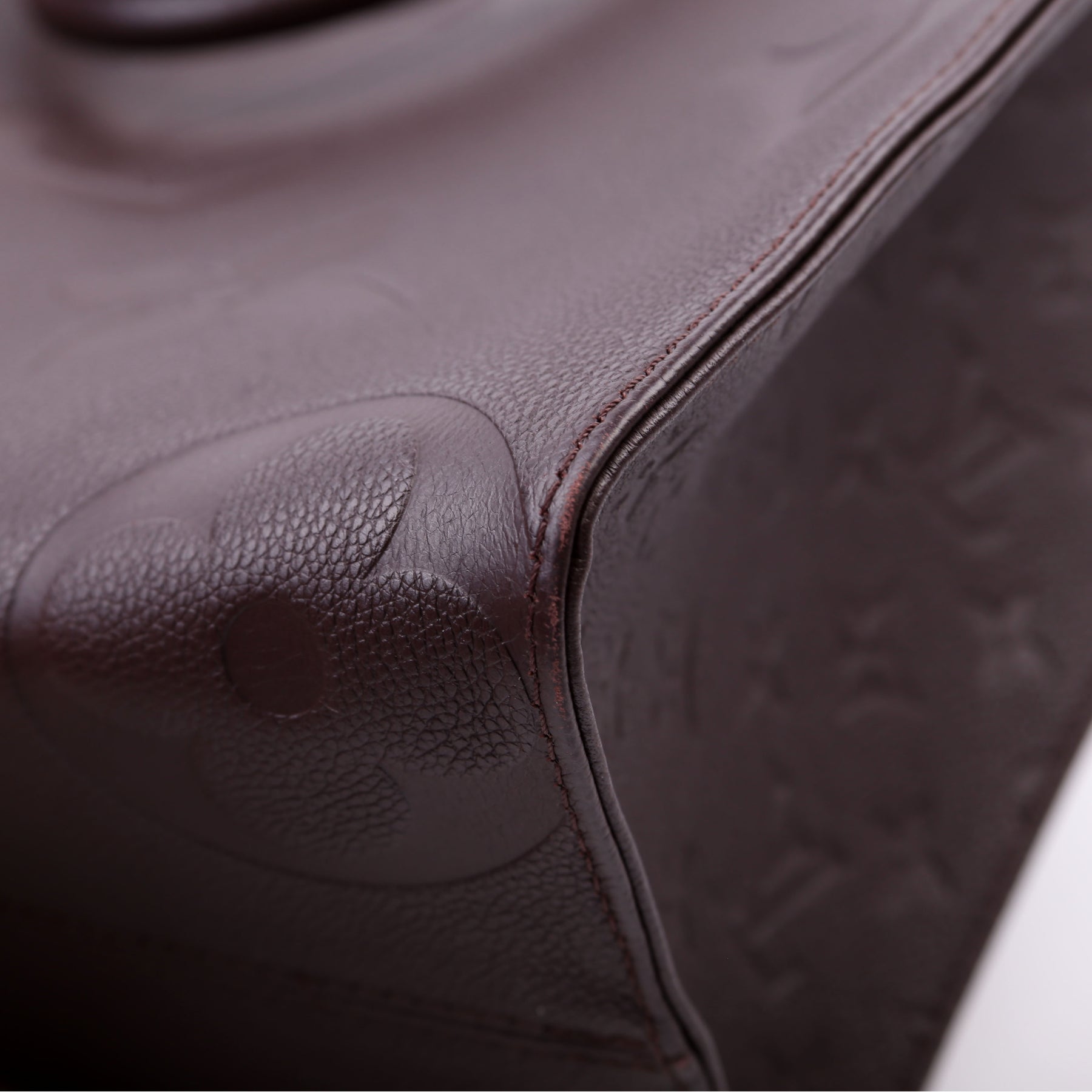 This pre-owned Louis Vuitton ONTHEGO MM is guaranteed 100% authentic. The exterior is in the classic Louis Vuitton Empreinte leather.